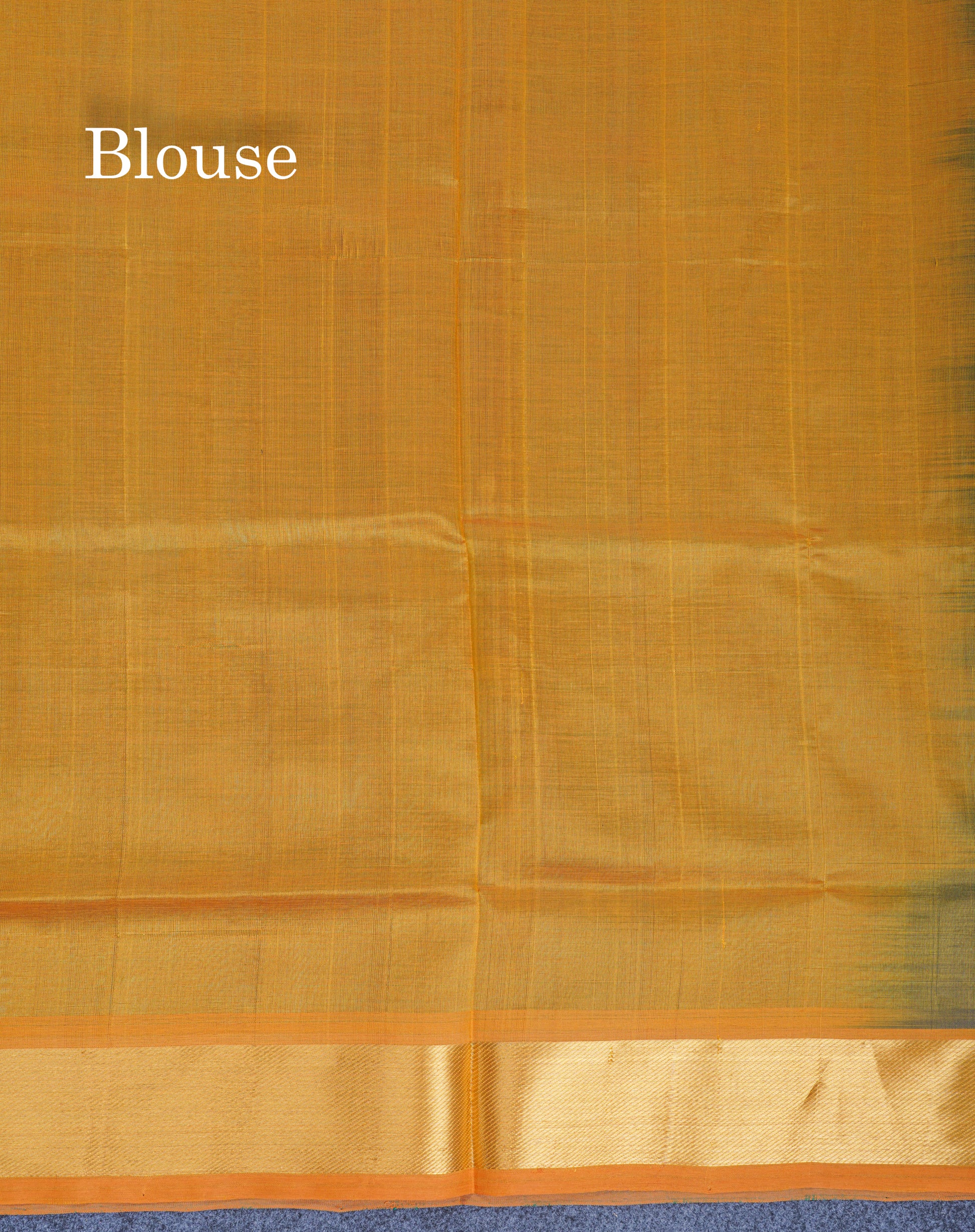 Bottle Green Plain Pure Silk Cotton Saree With Contrast Mustard Yellow Blouse