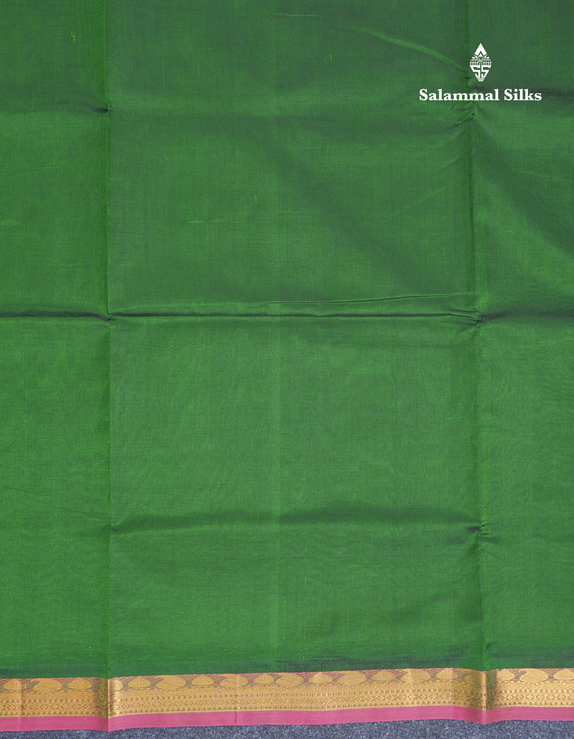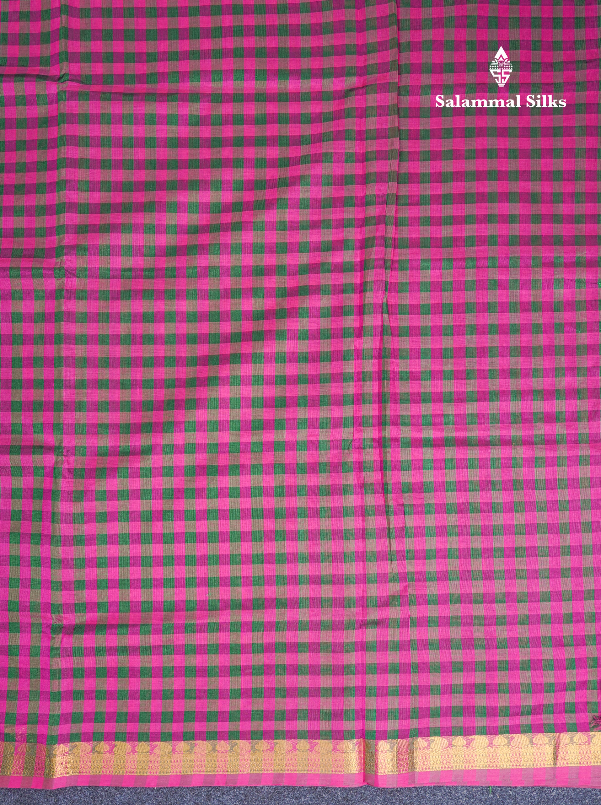 Bottle Green Plain Pure Silk Cotton Saree With Contrast Paalum Pazham Checks Blouse