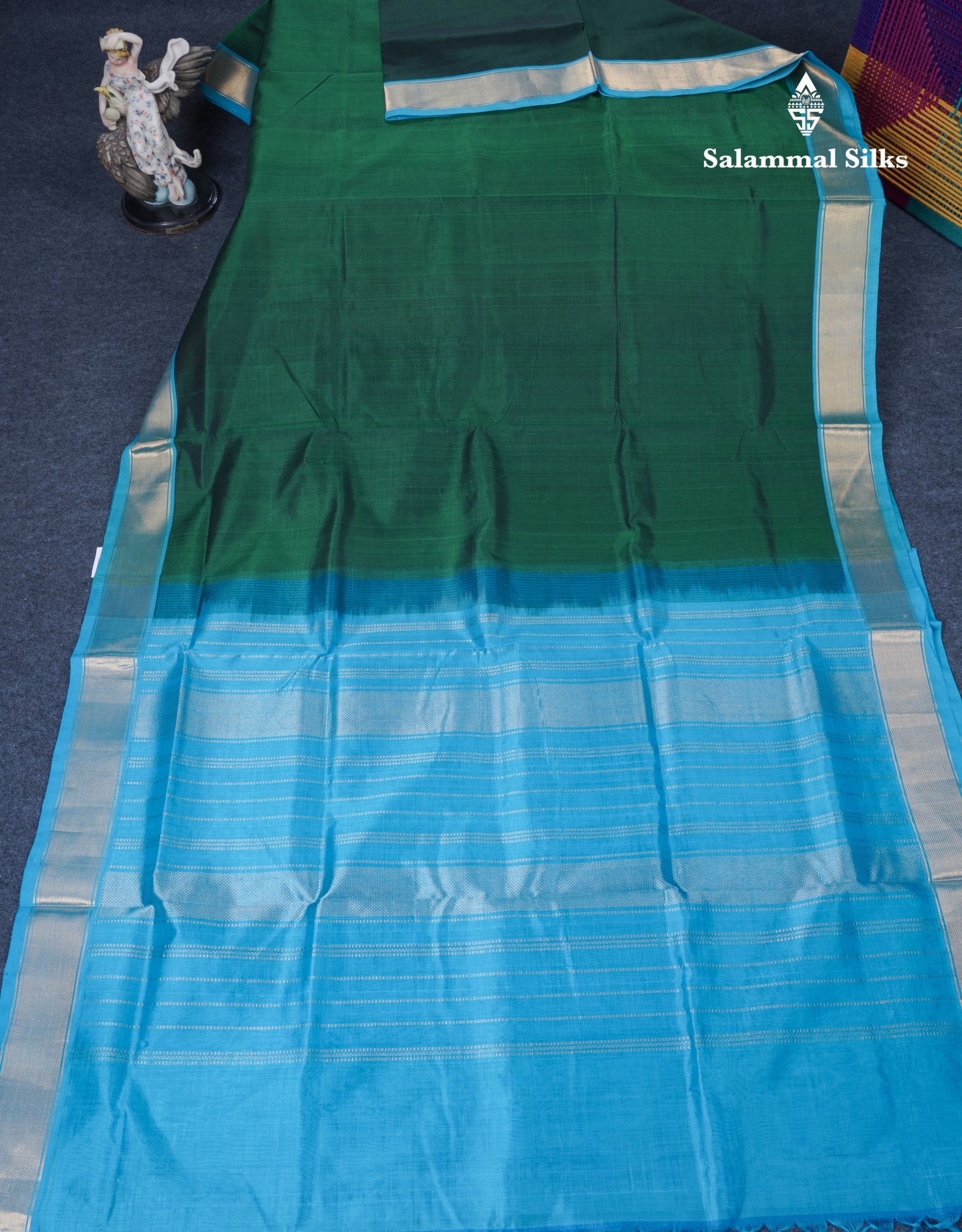 Bottle Green Plain Pure Silk Cotton Saree With Contrast Sky Blue Blouse