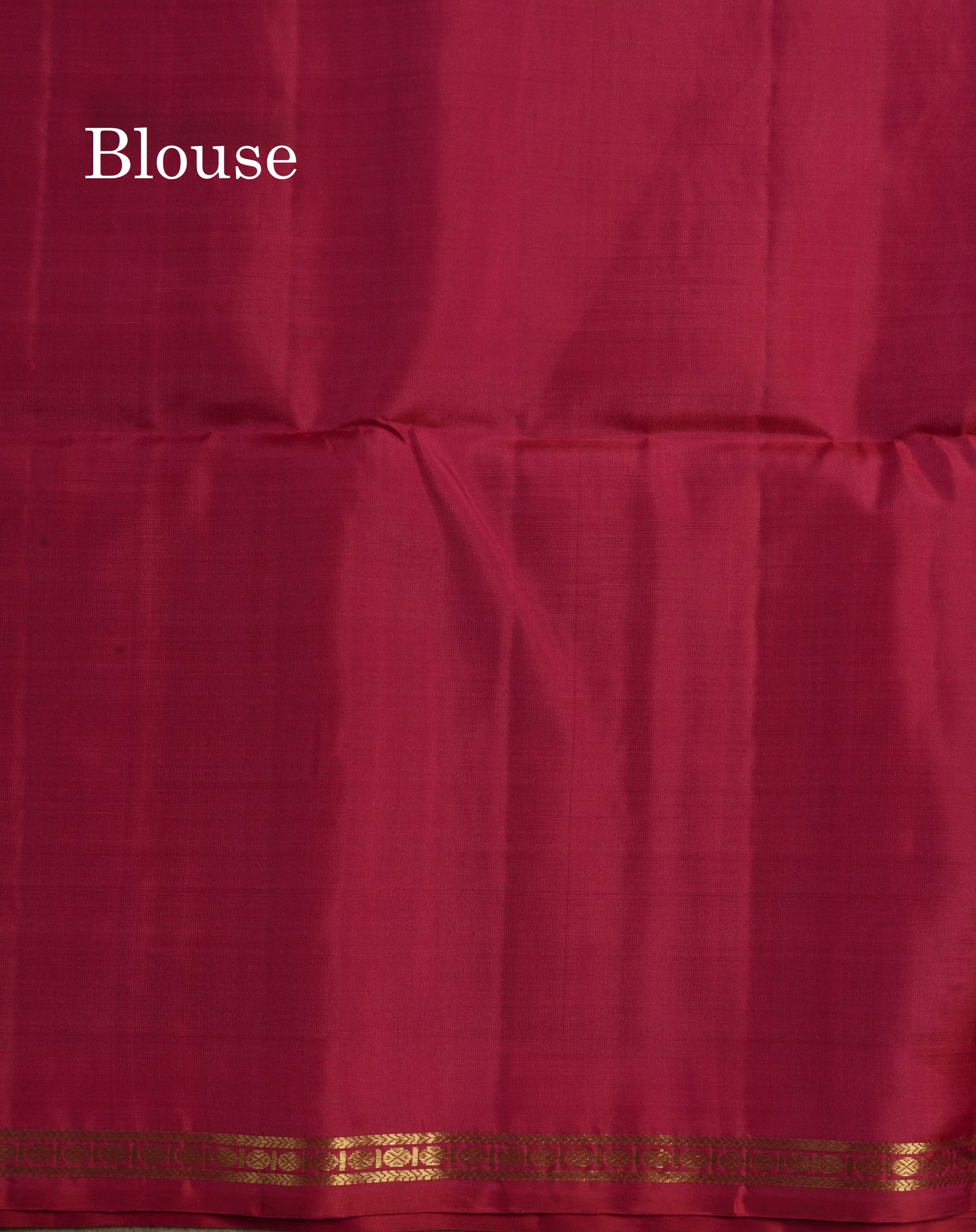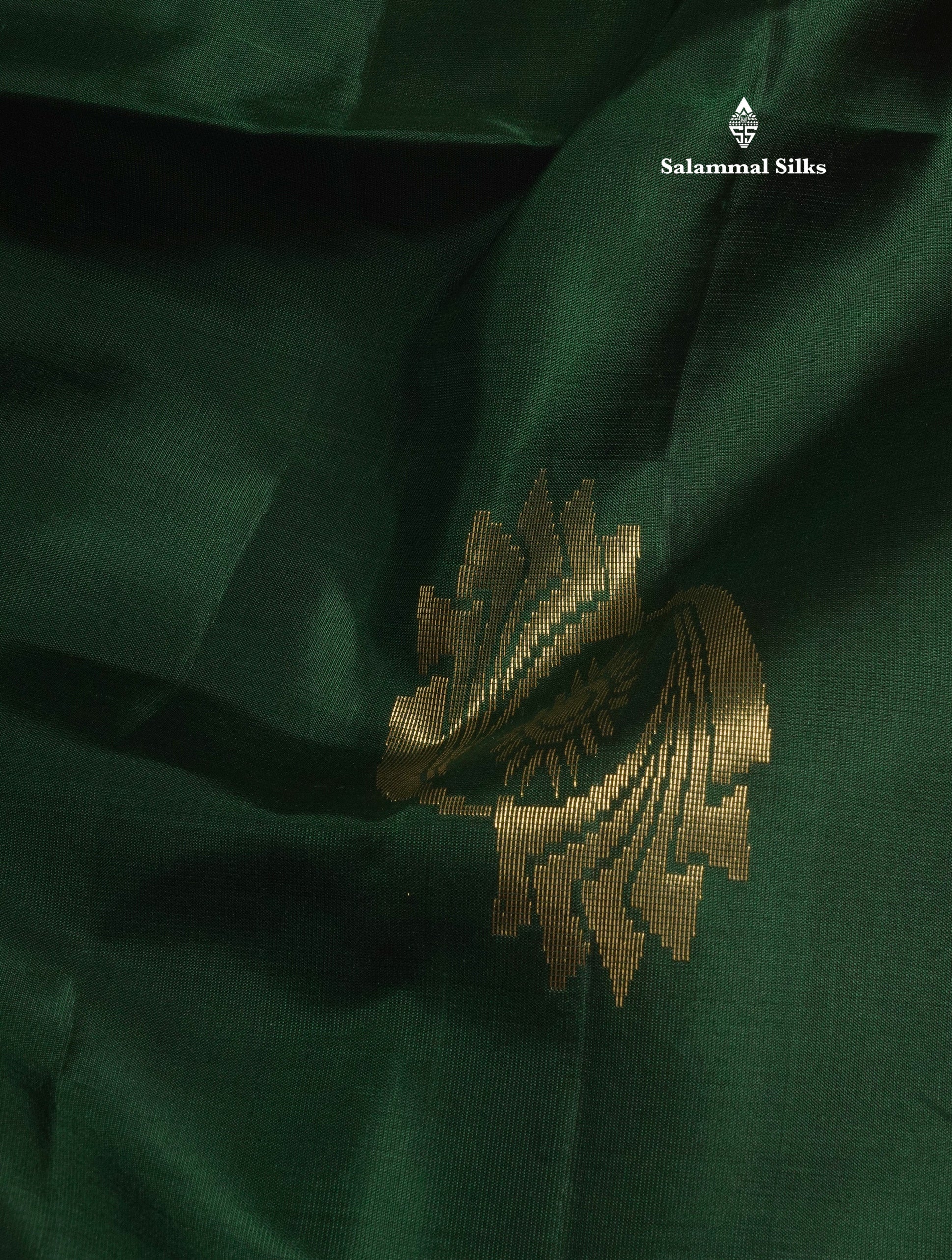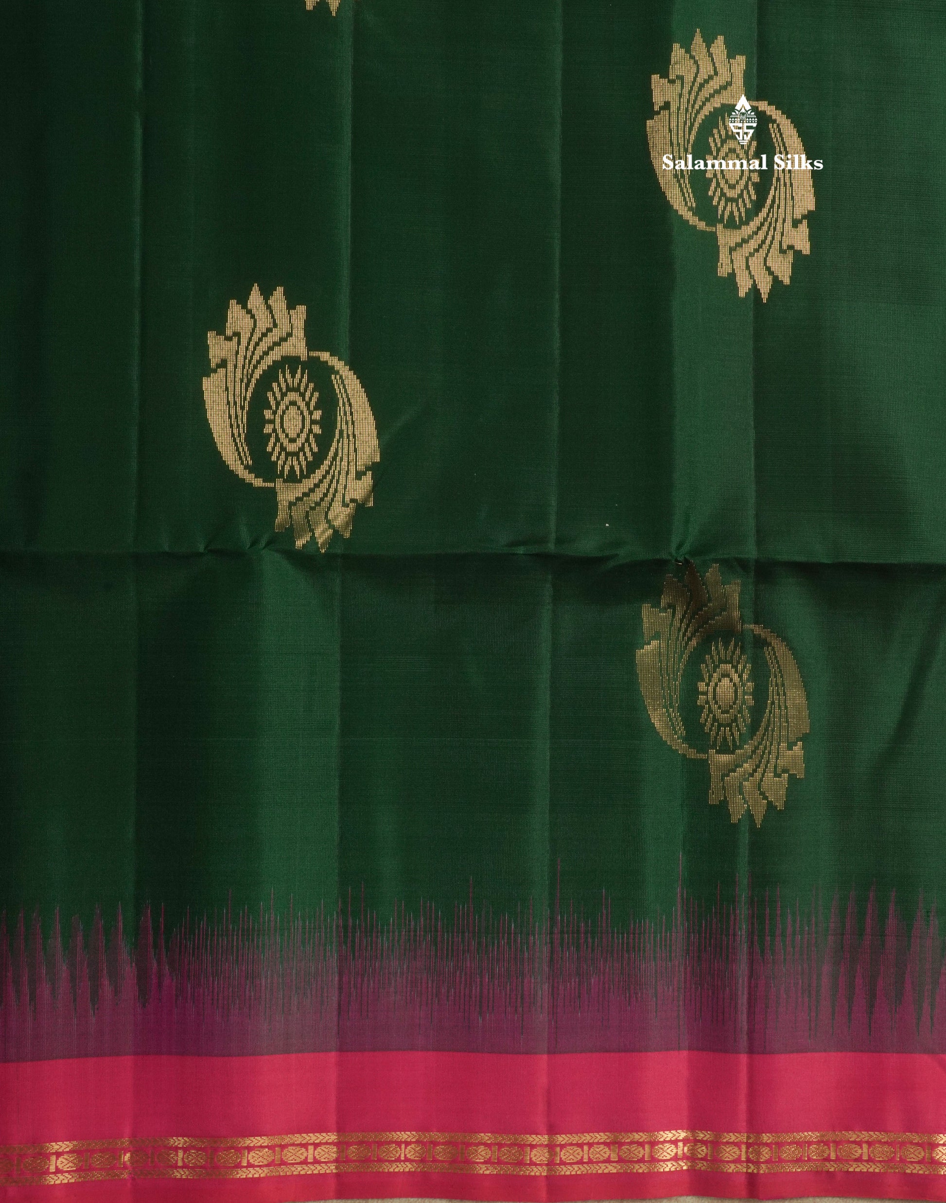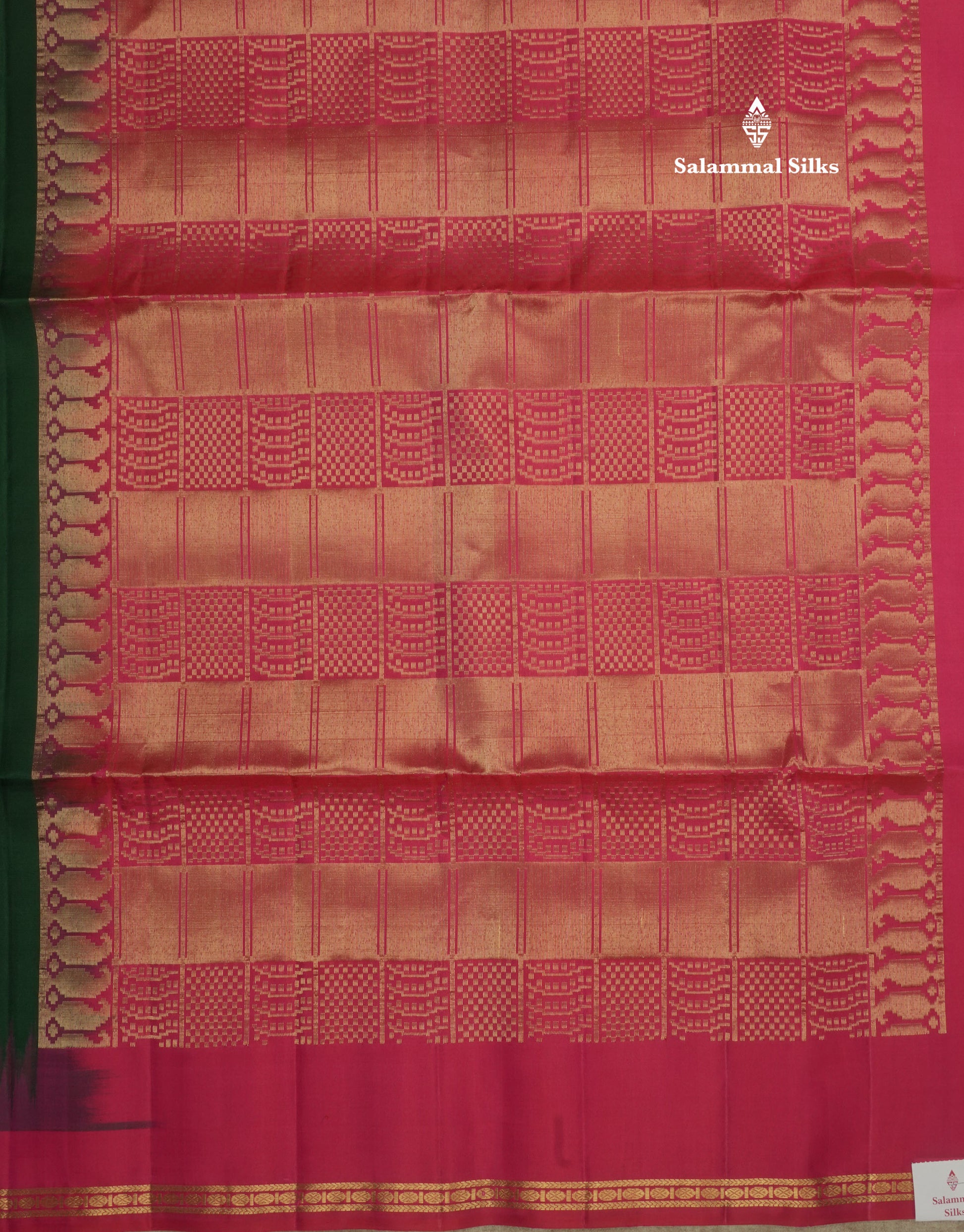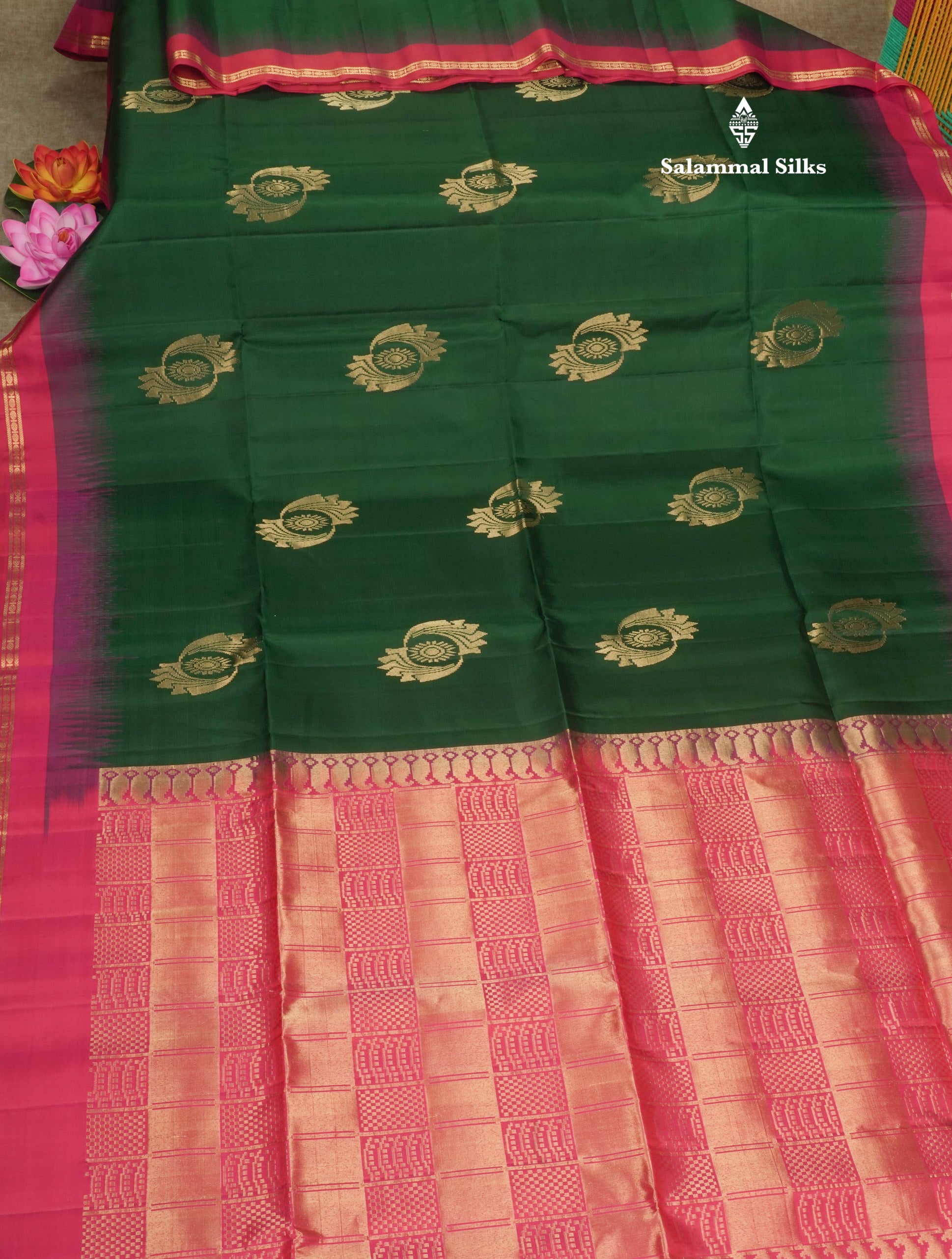 Bottle Green Pure Kanjivaram Soft Silk Saree With Contrast Pink Small Traditional Border