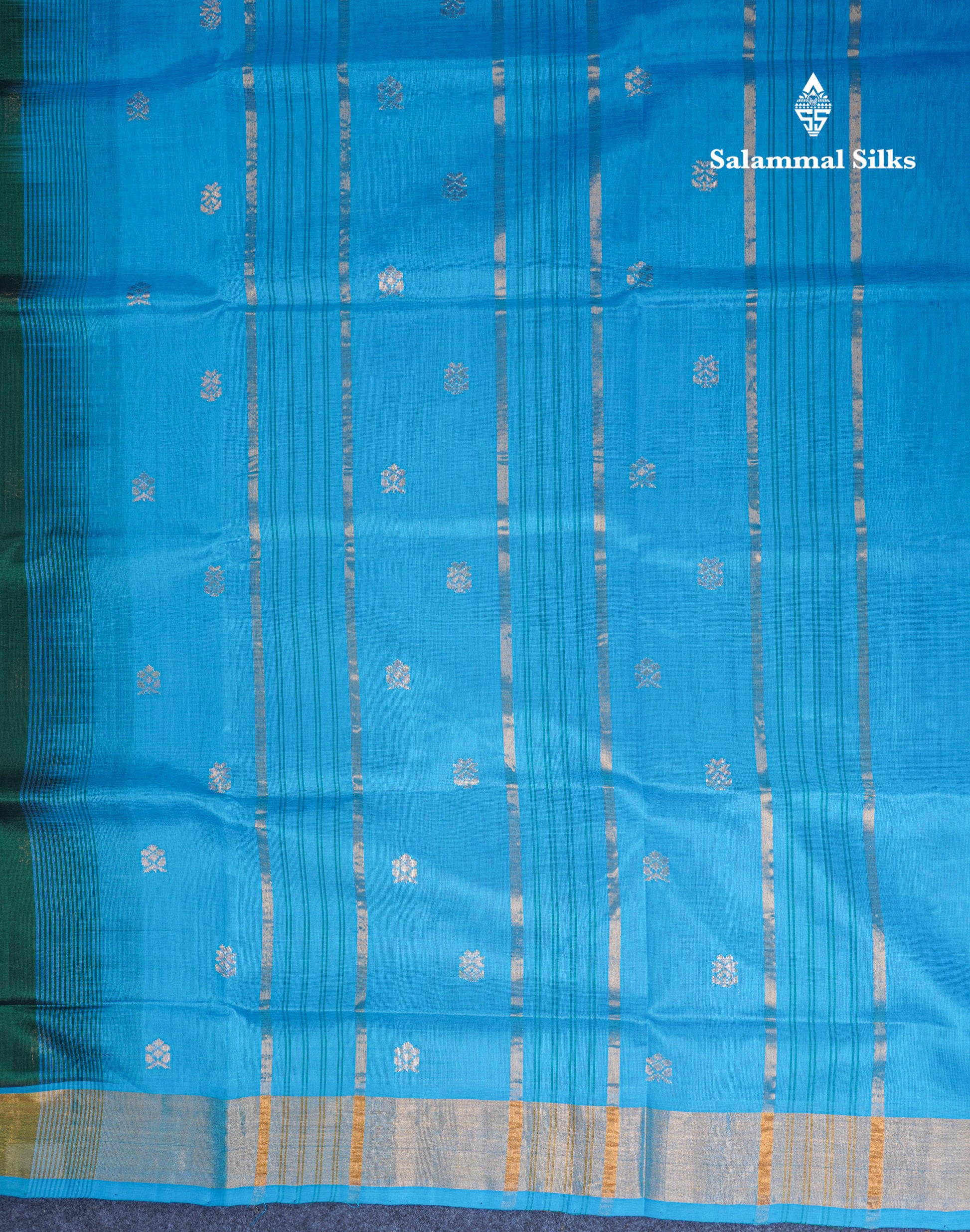 Bottle Green Pure Silk Cotton Saree With Contrast Sky Blue Blouse