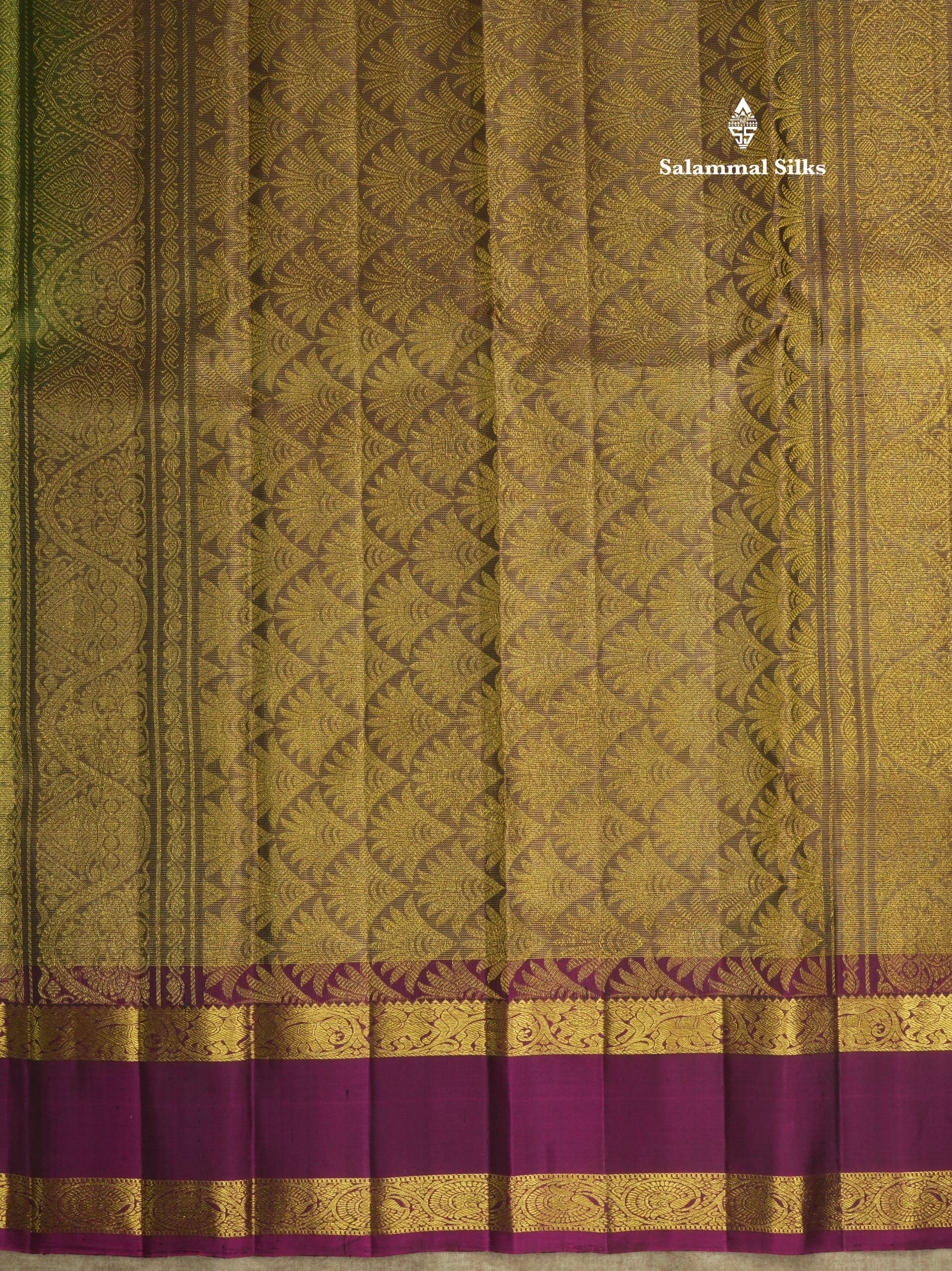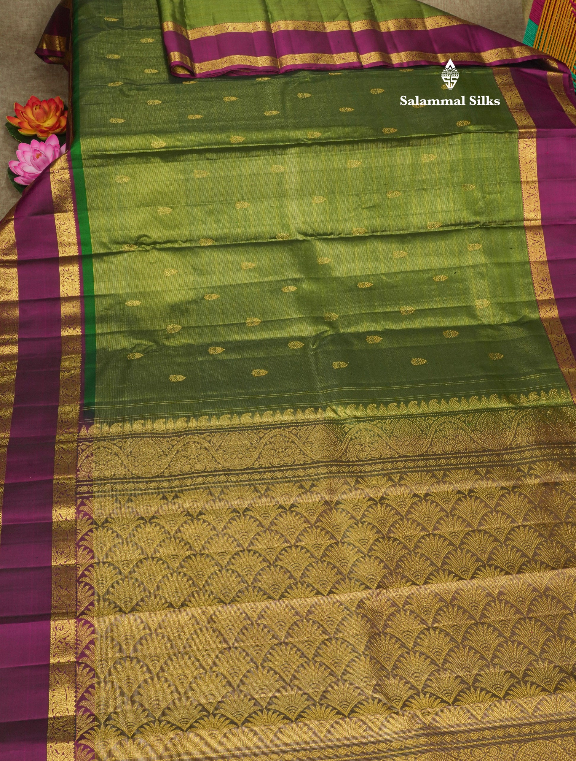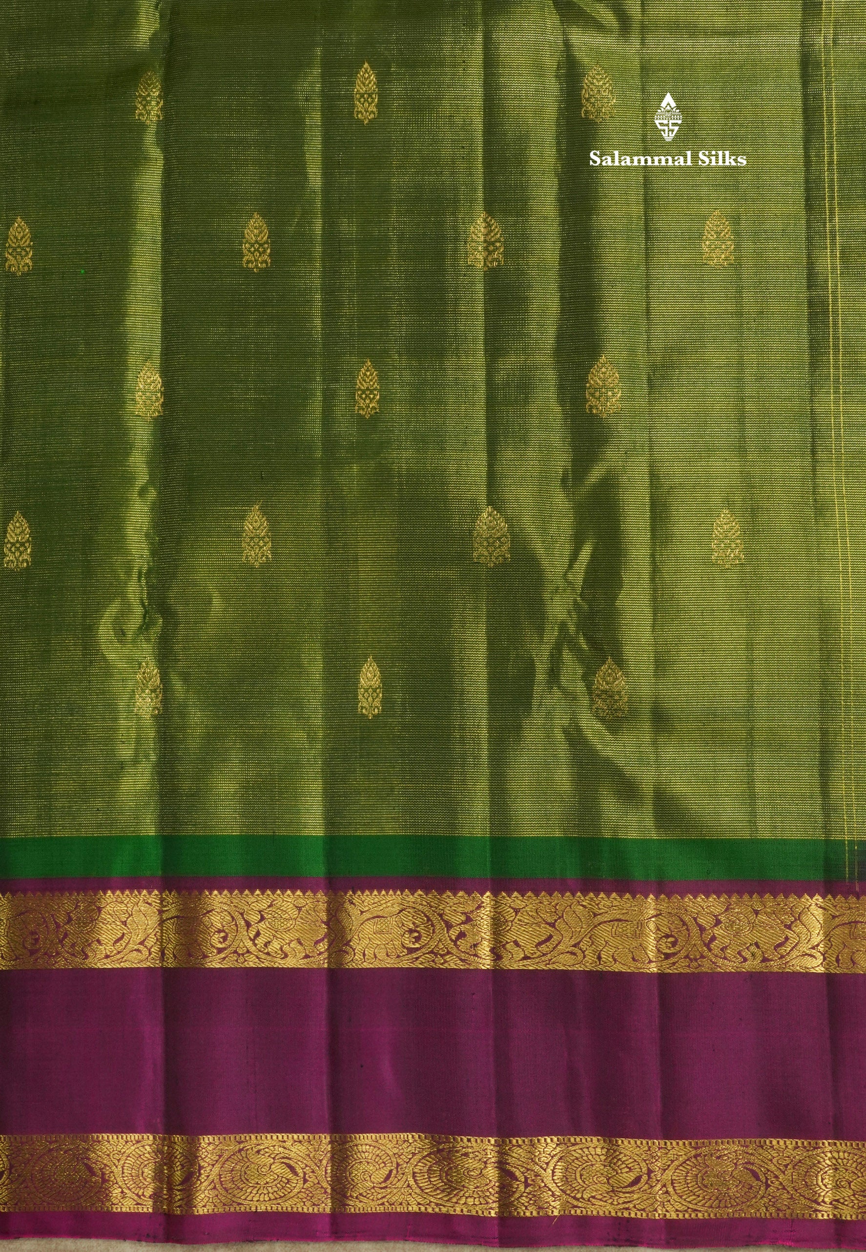 Bottle Green Vairaoosi Pure Kanjivaram Silk Saree With Contrast Magenta Rettapet (Gap) Border