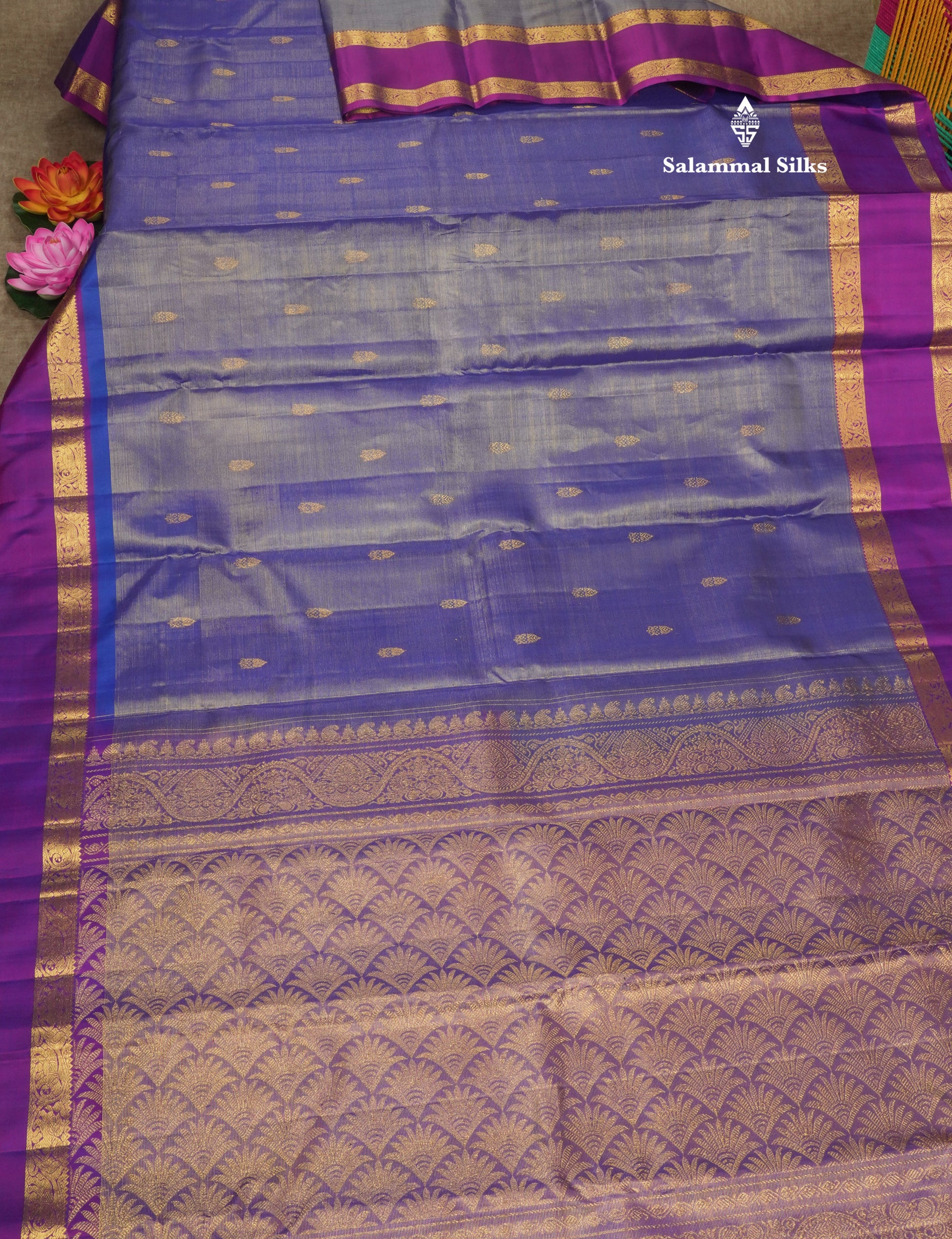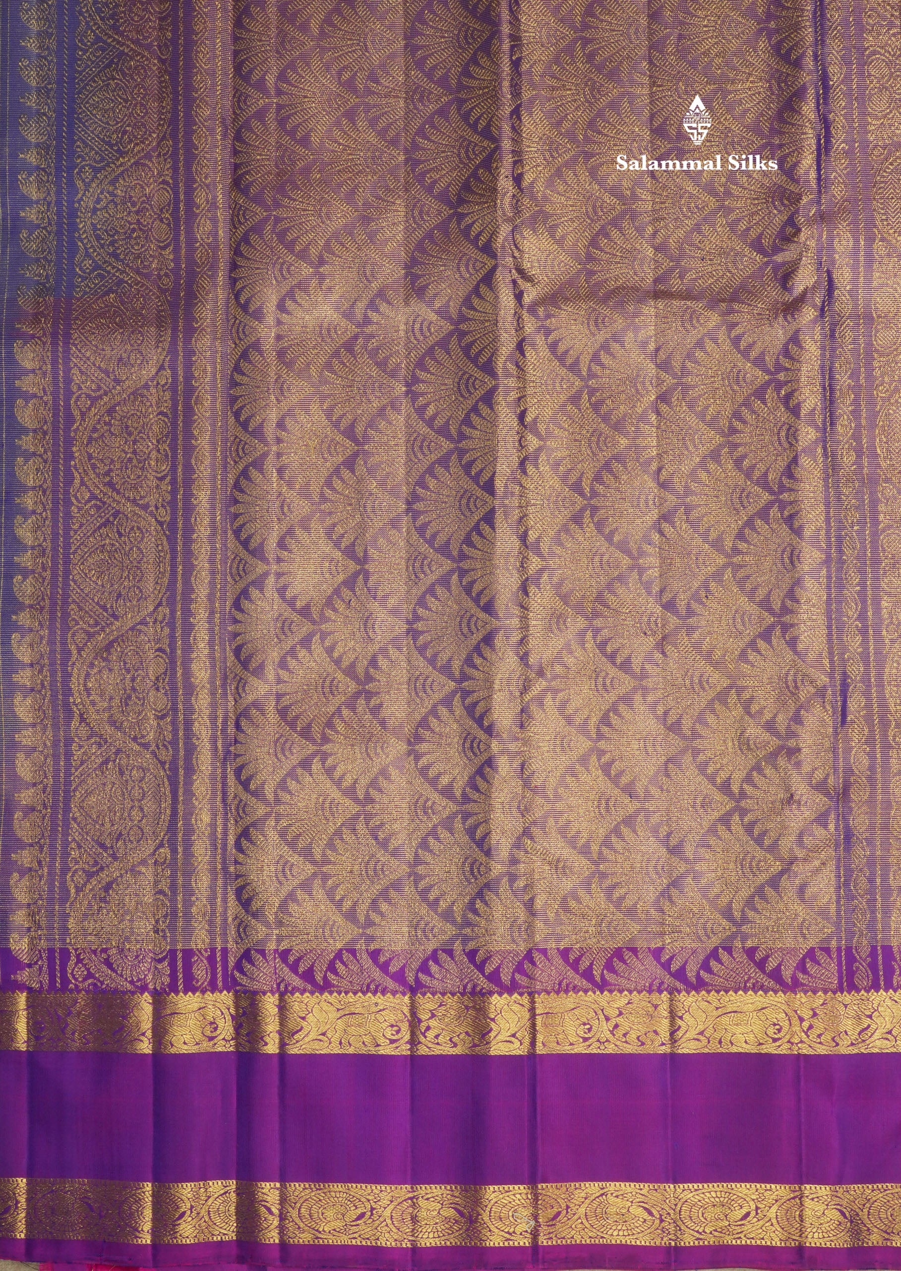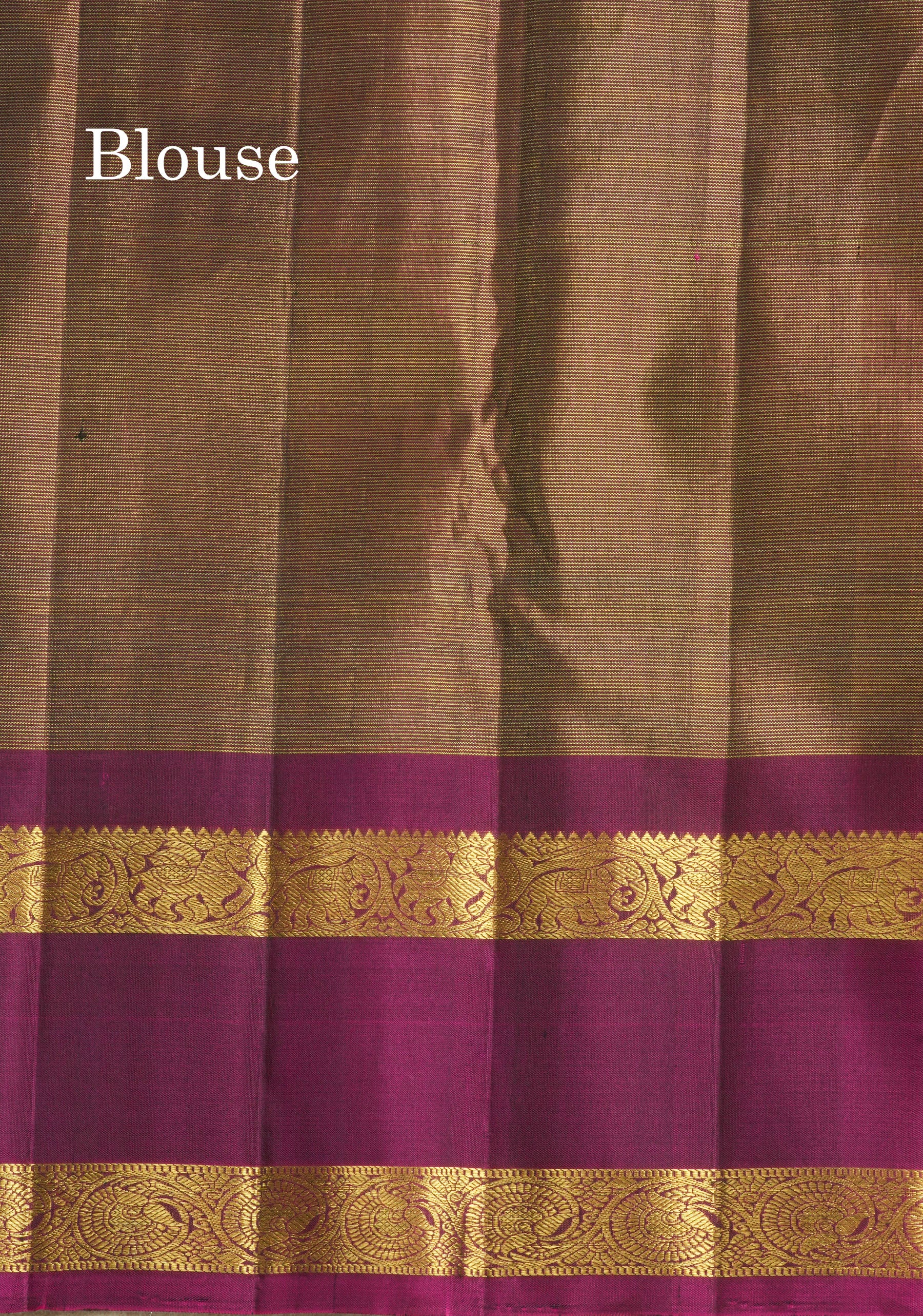 Bottle Green Vairaoosi Pure Kanjivaram Silk Saree With Contrast Magenta Rettapet (Gap) Border