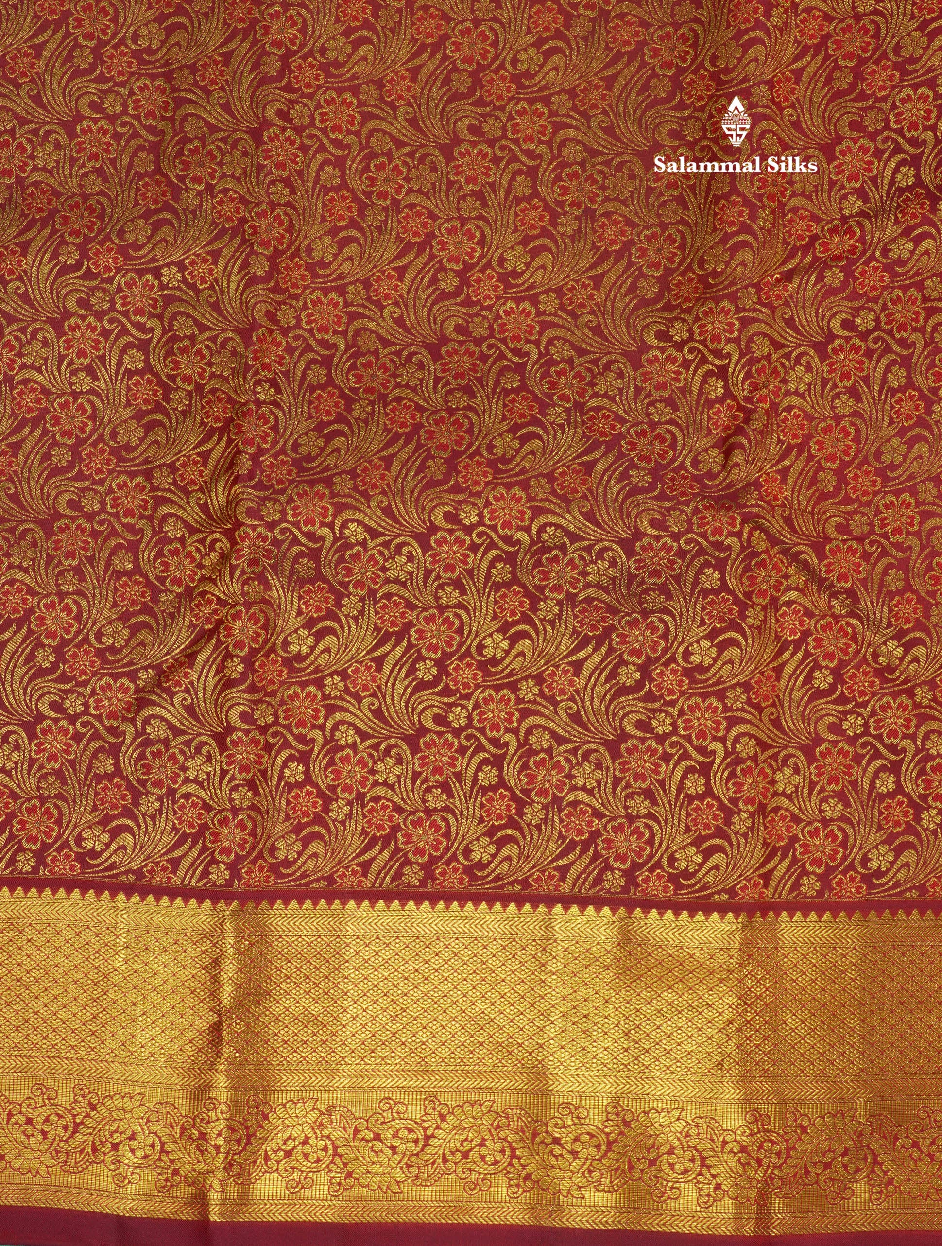 Brownish Maroon Beautiful Grand Bridal Pure Kanjivaram Silk Saree With Gold Zari Border
