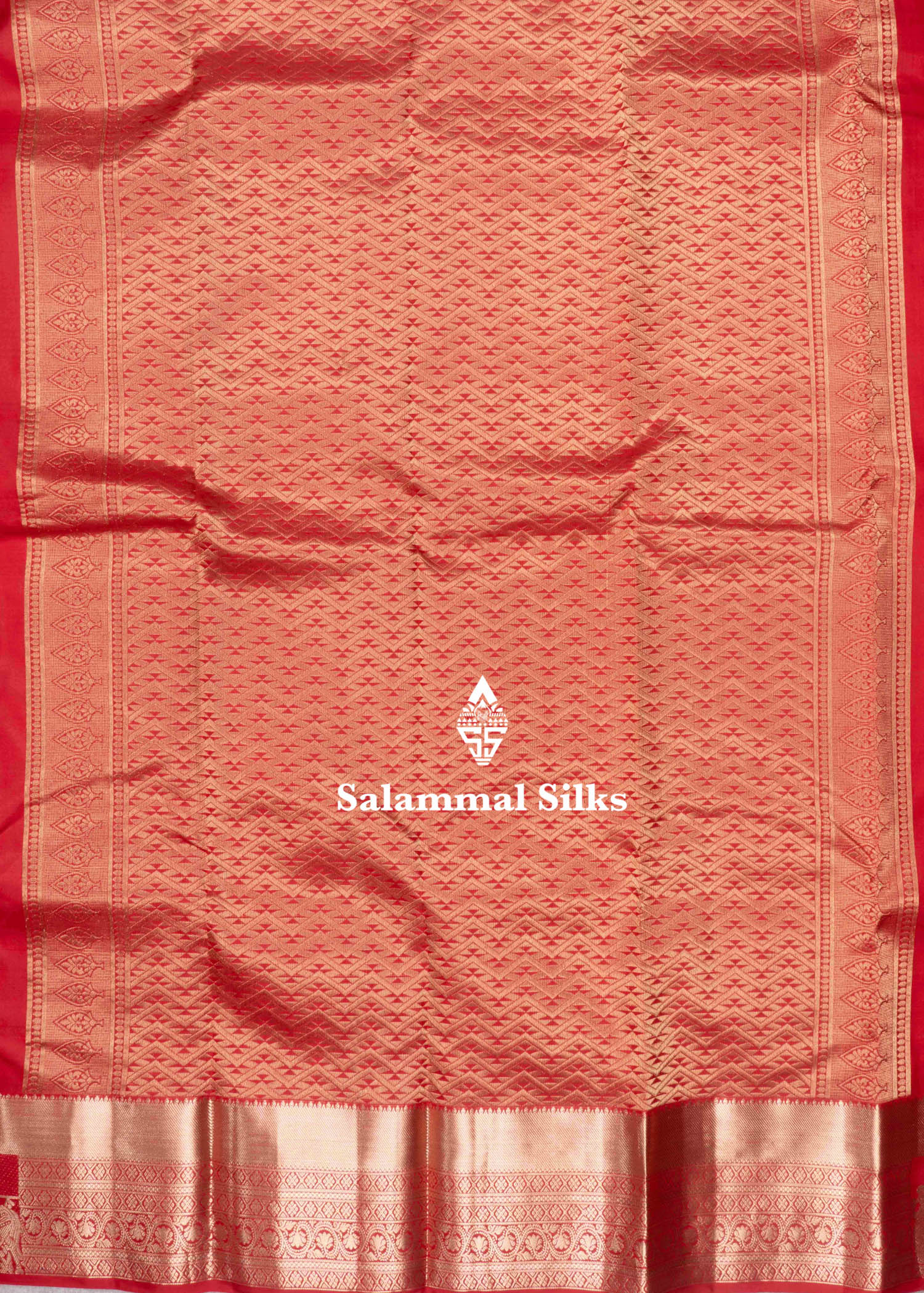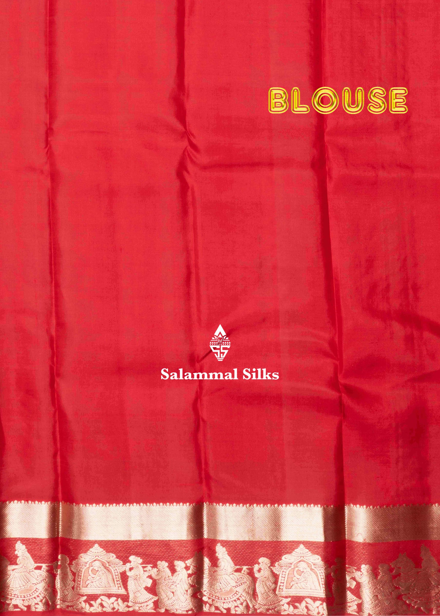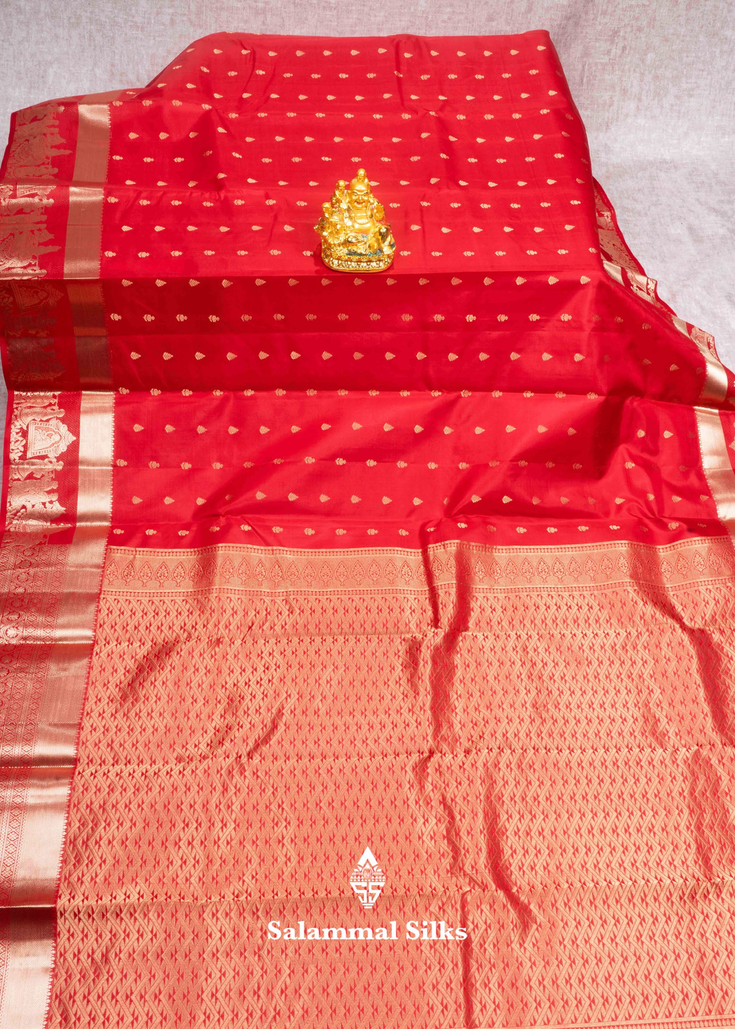 Chilli Red Color Kanjivaram Pure Silk Saree Pallakku Fancy Border & Blouse