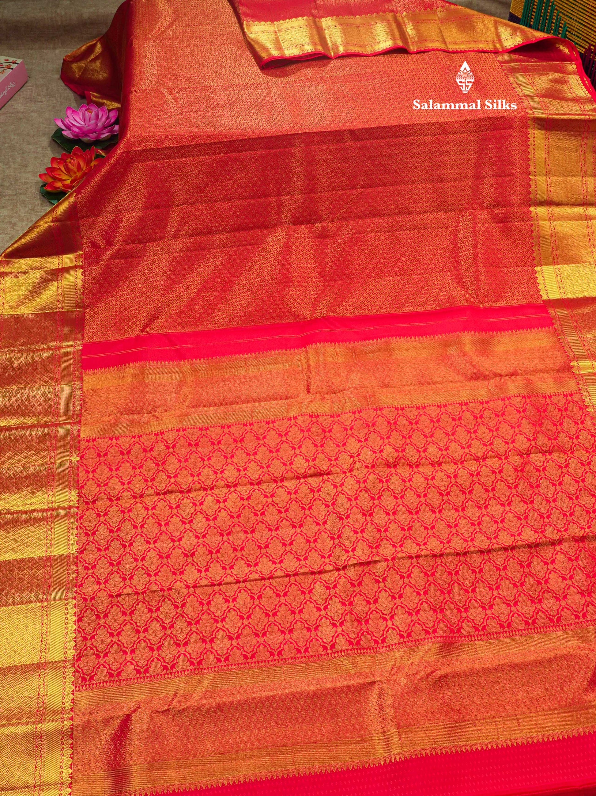 Chilly Red Bridal Pure Kanjivaram Silk Saree With Self Border
