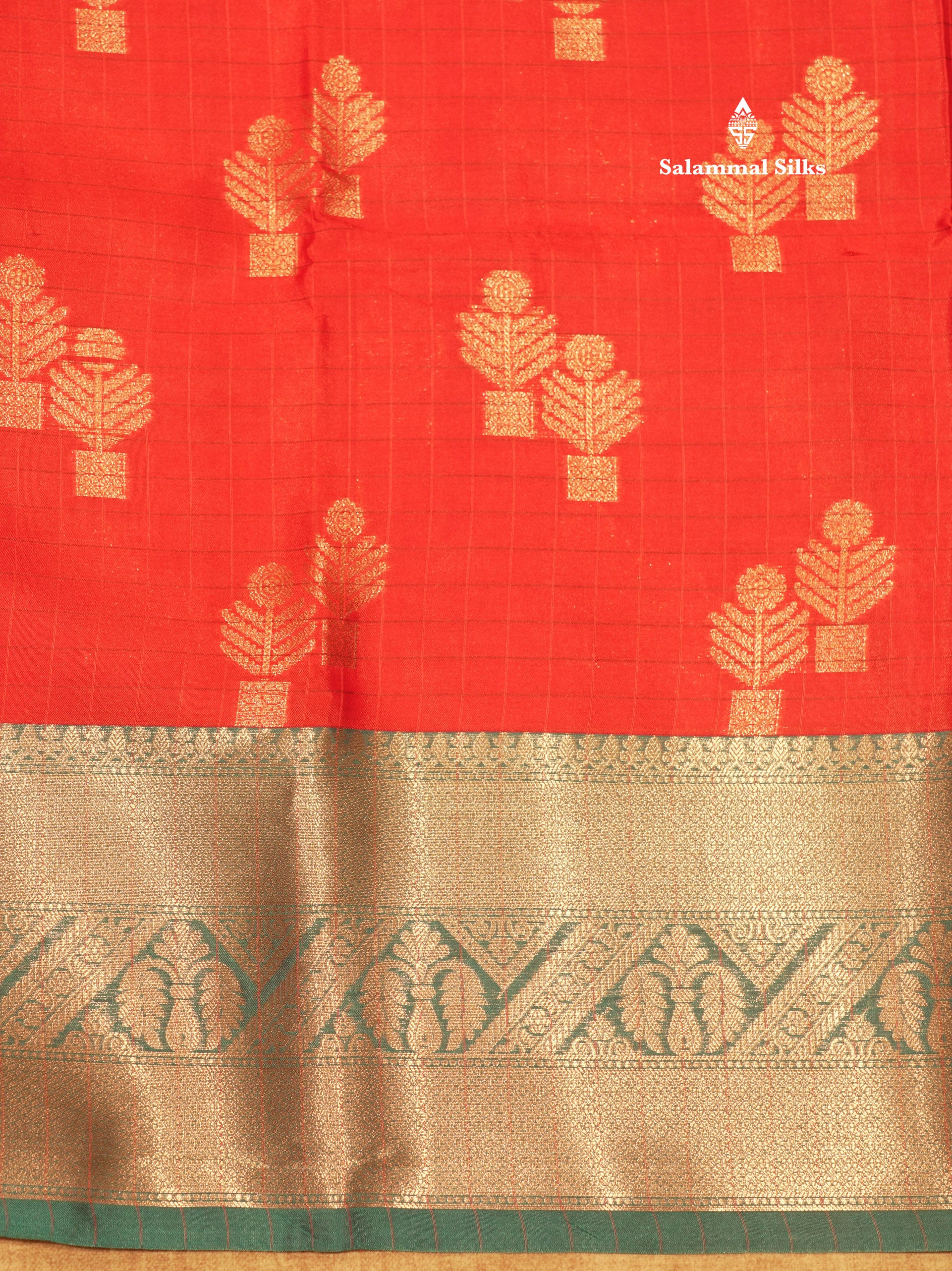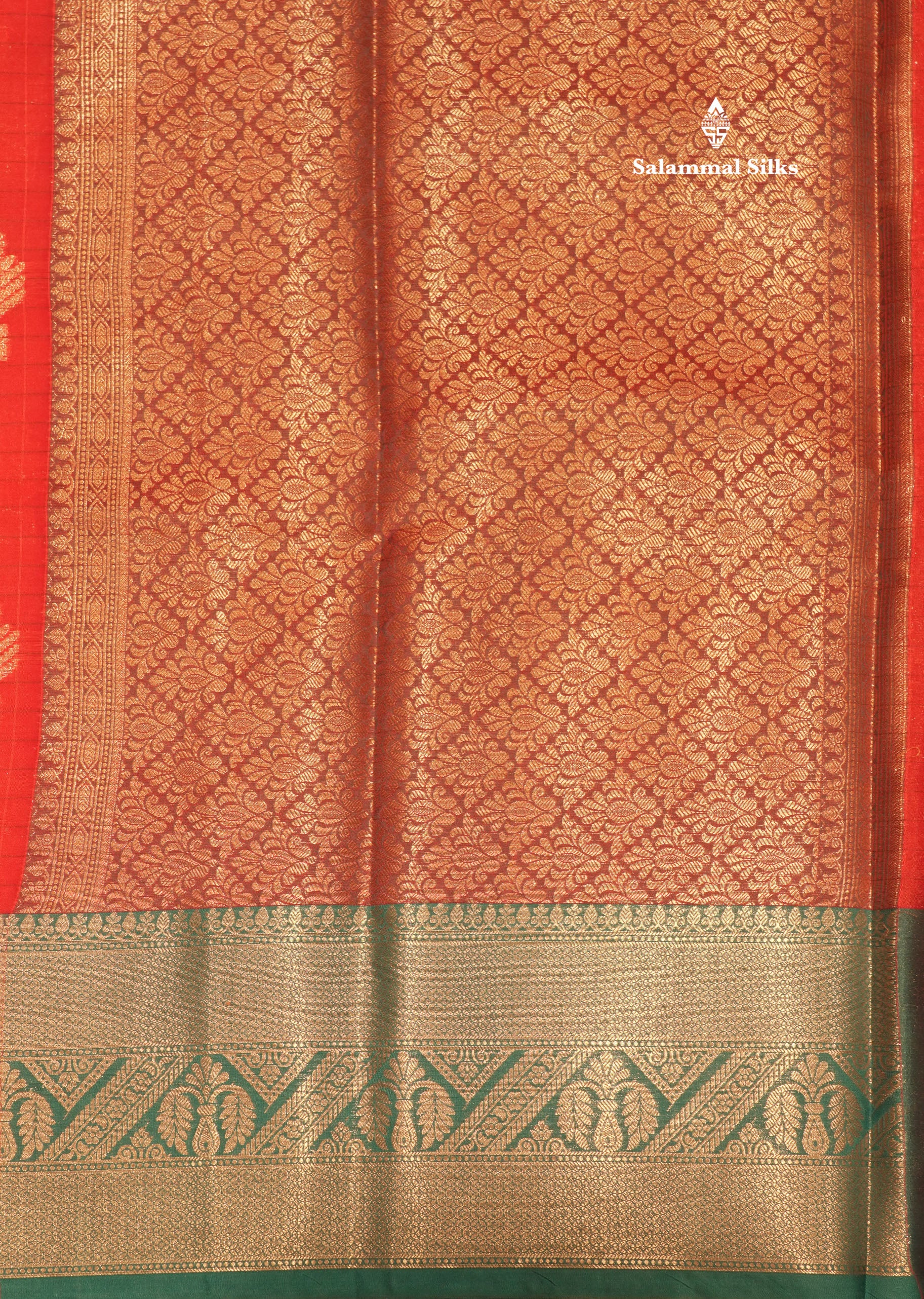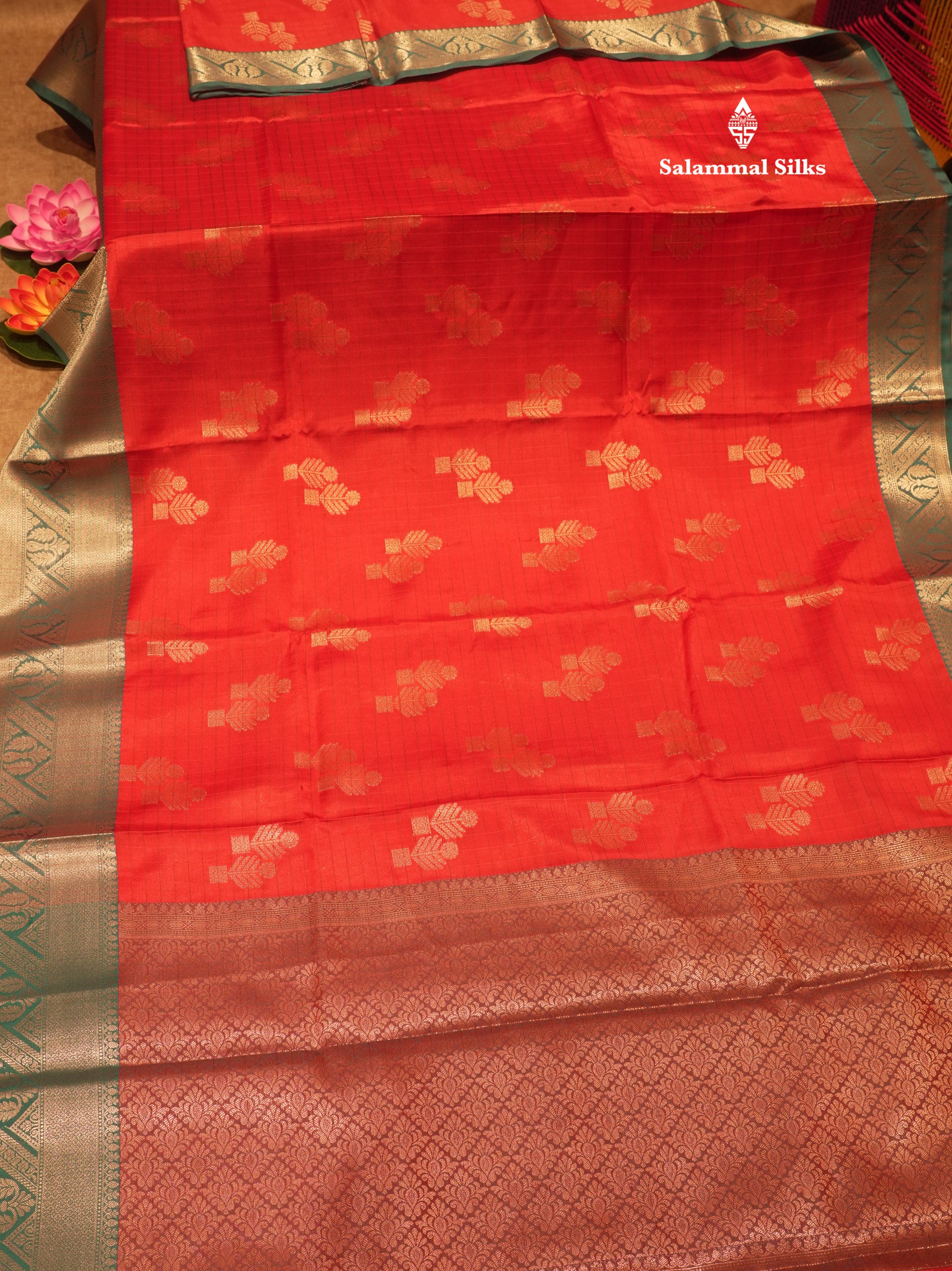 Chilly Red Colour Semi Silk Saree With Contrast Peacock Green Border
