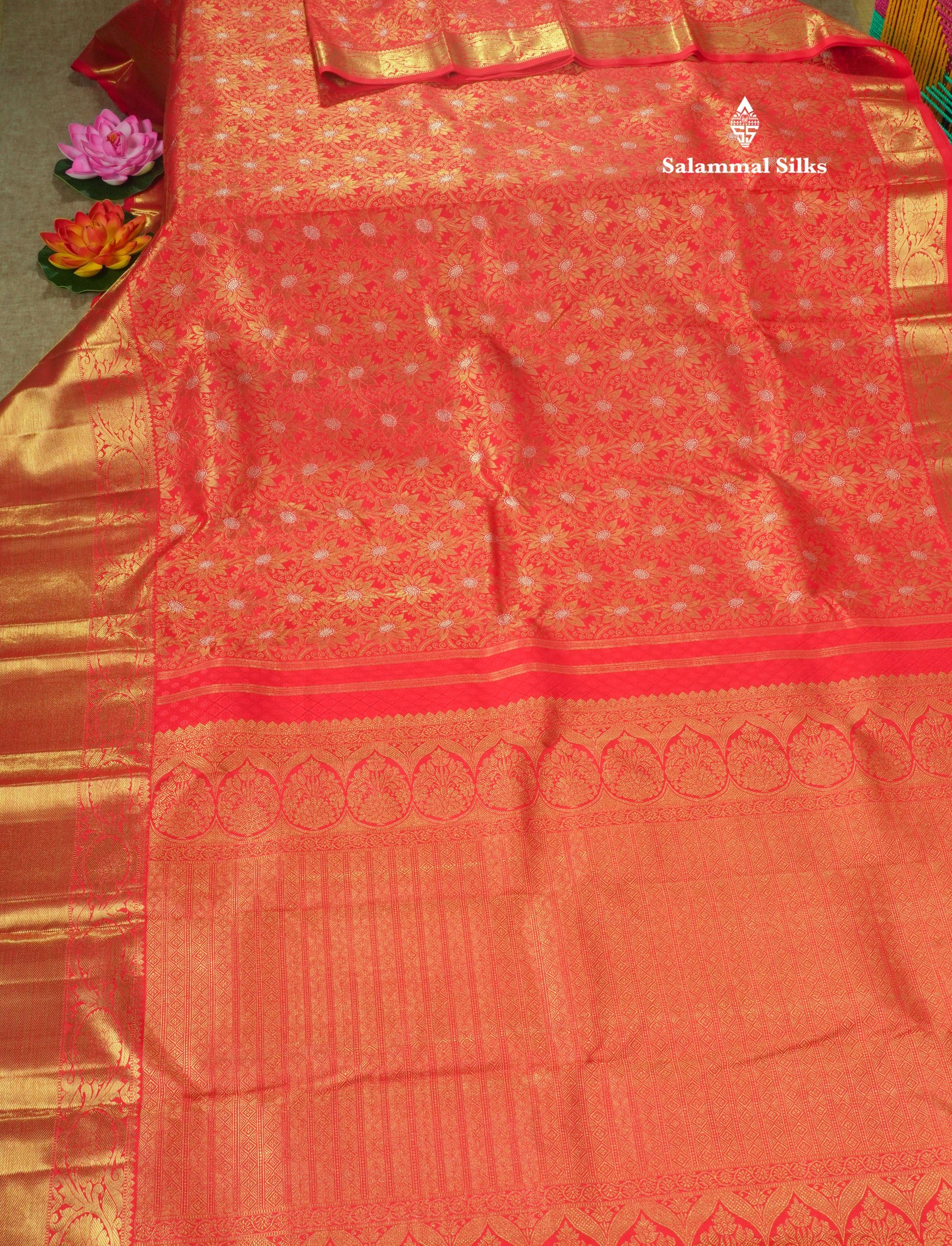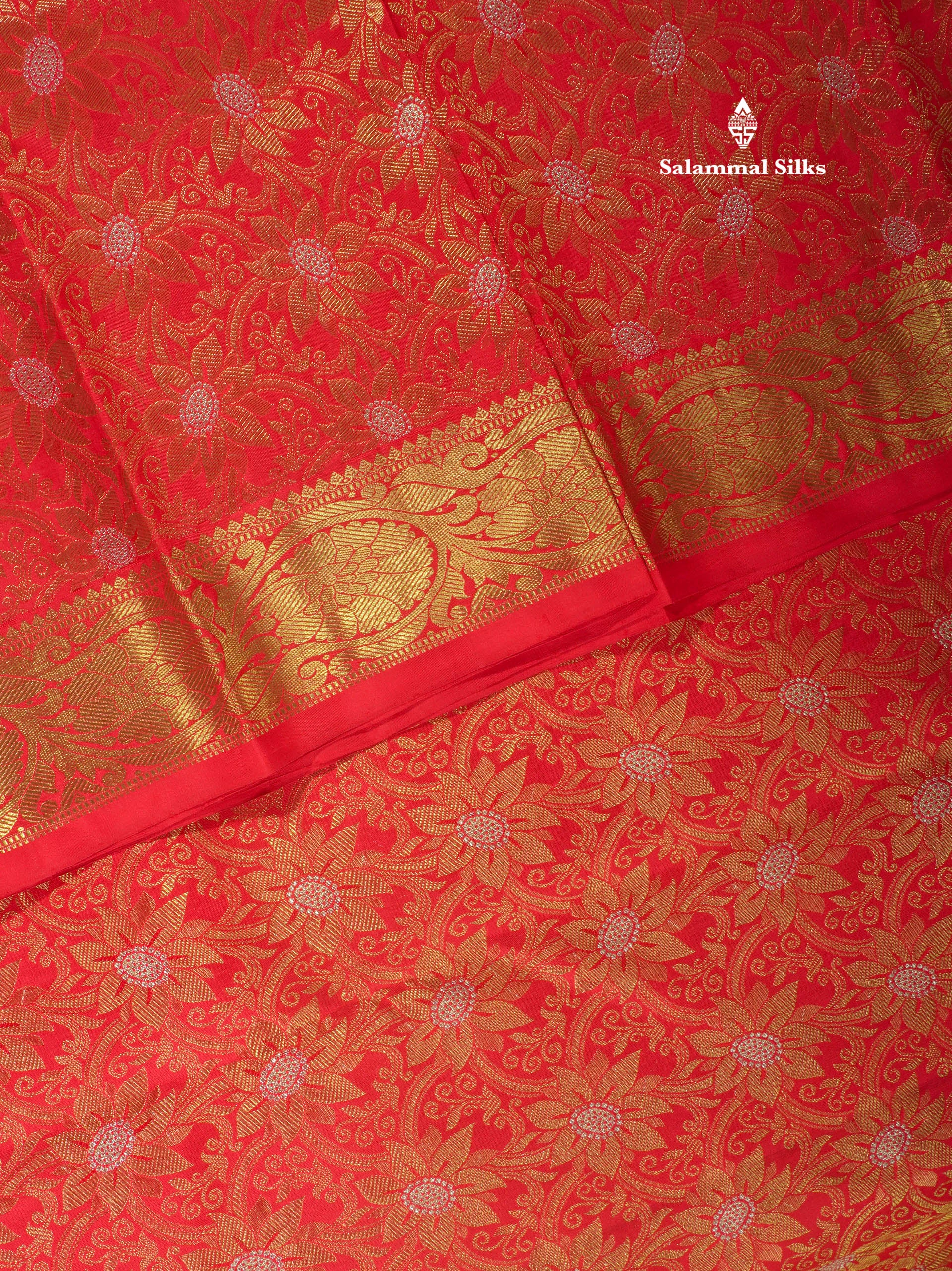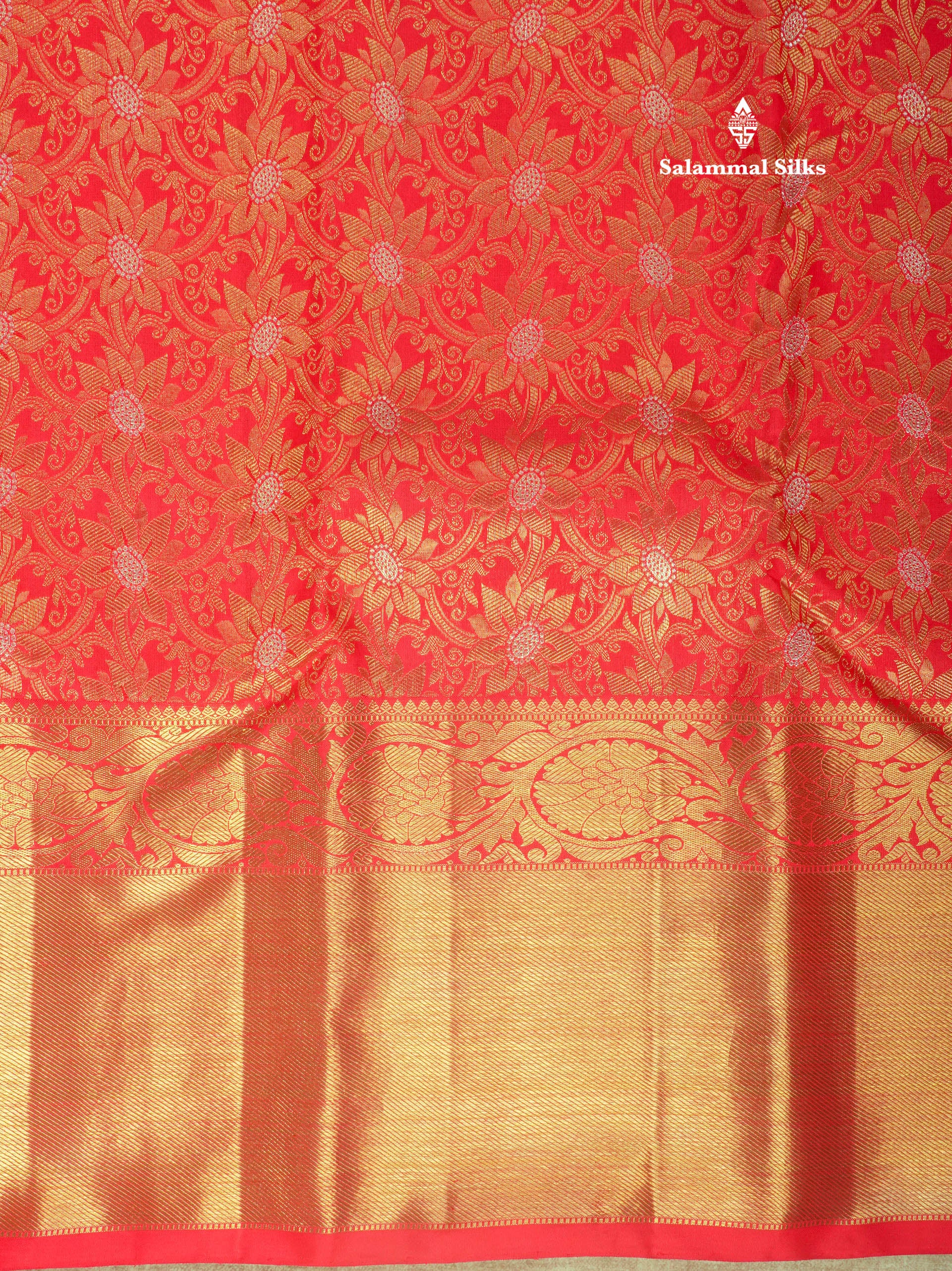 Salammal is known for its handloom sarees. In some sarees, there is cross-weaving between the body and the pallu, which is a sign of pure handloom sarees. This can be seen in Kanchipuram embossed sarees.