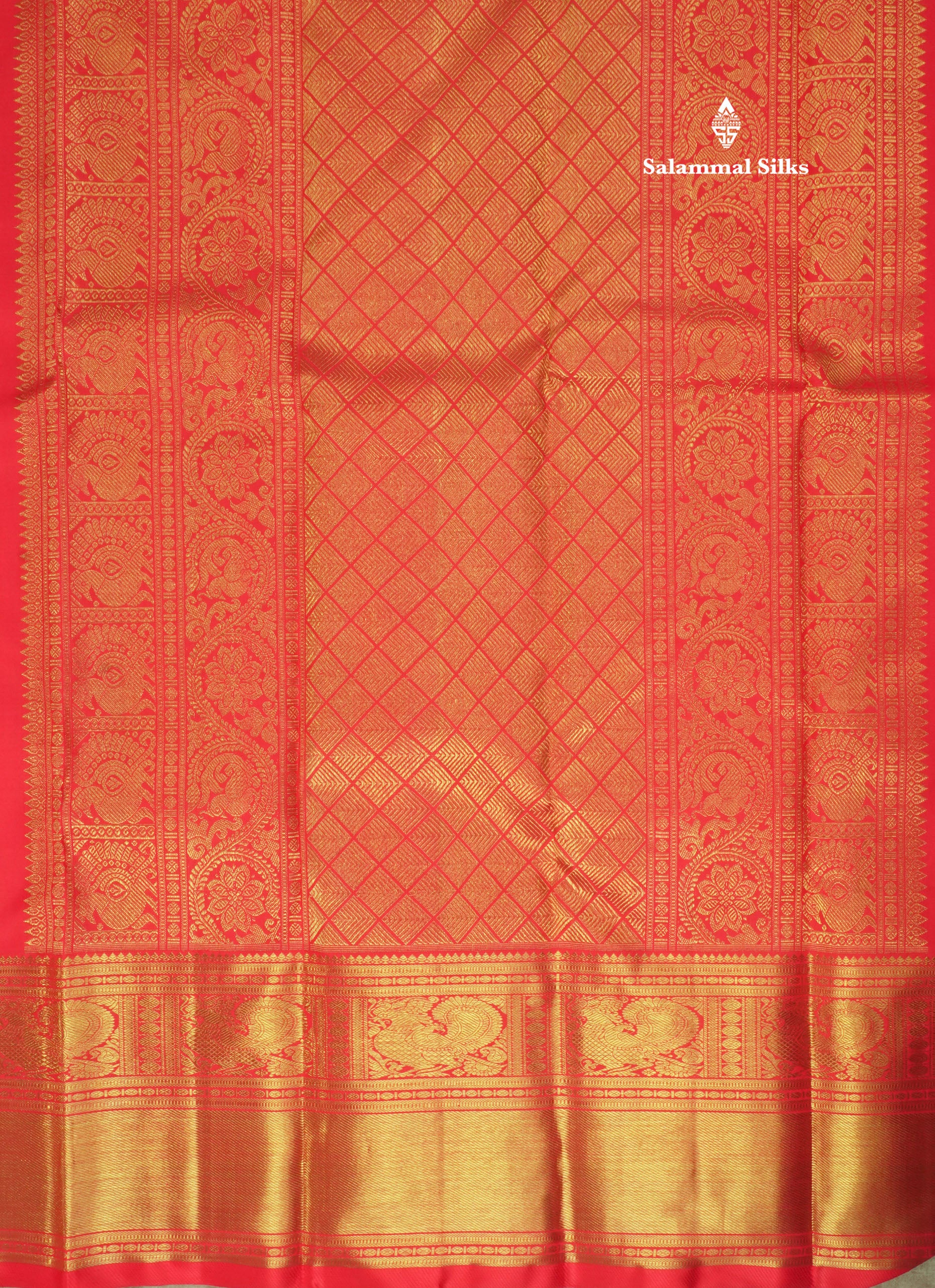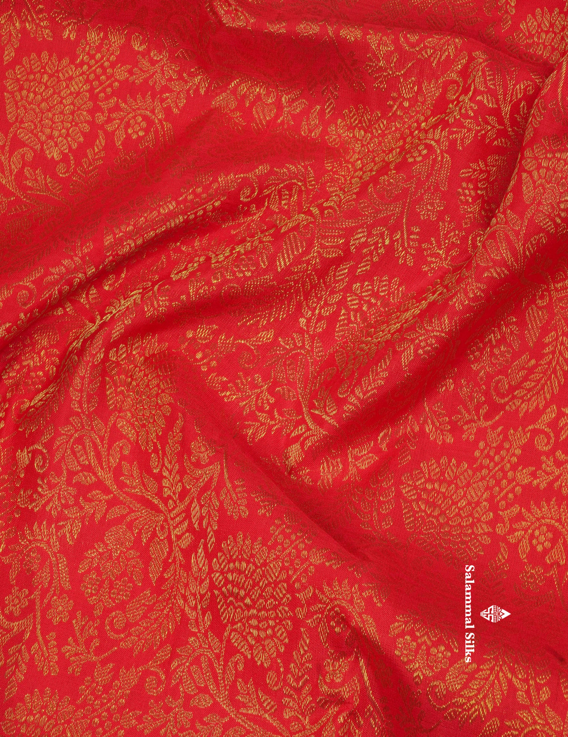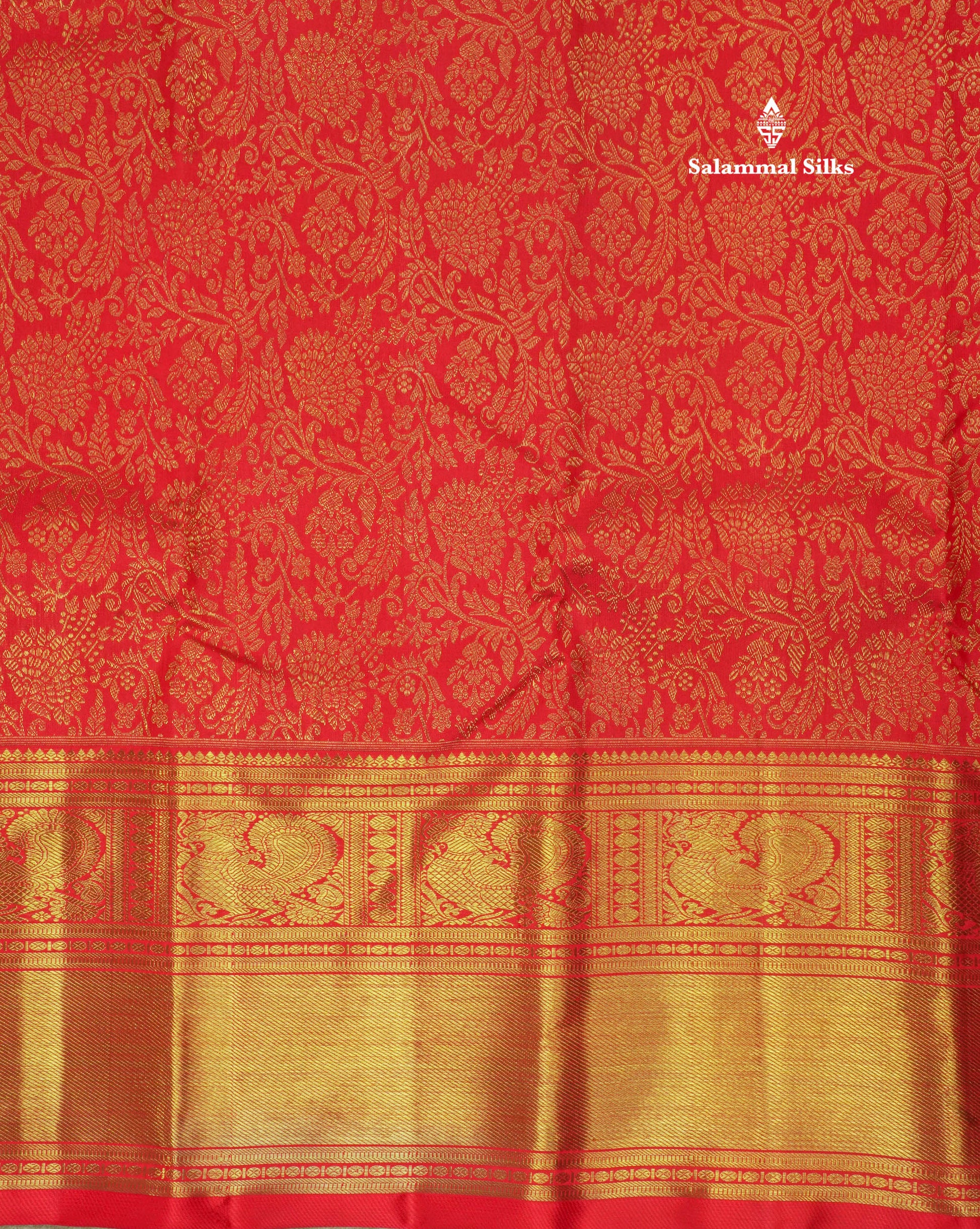 Chilly Red Pure Kanjivaram Silk Saree Pure zari (3G) with Traditional Gold Zari Border