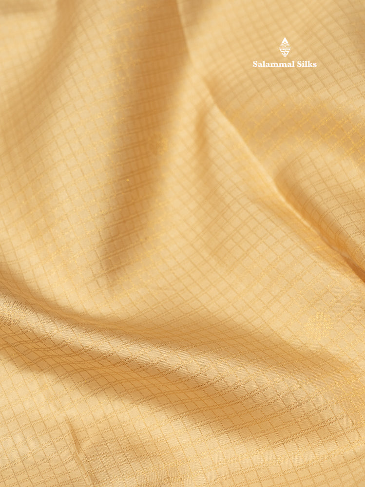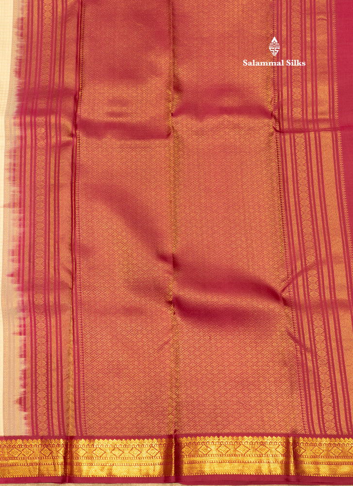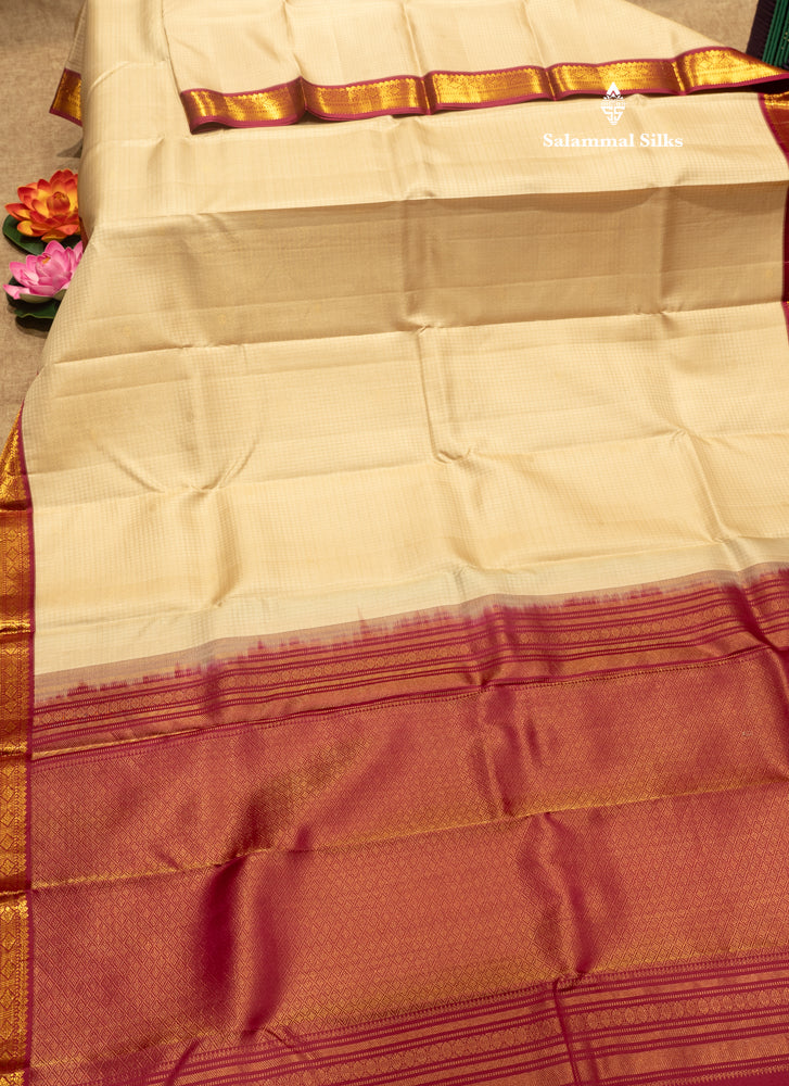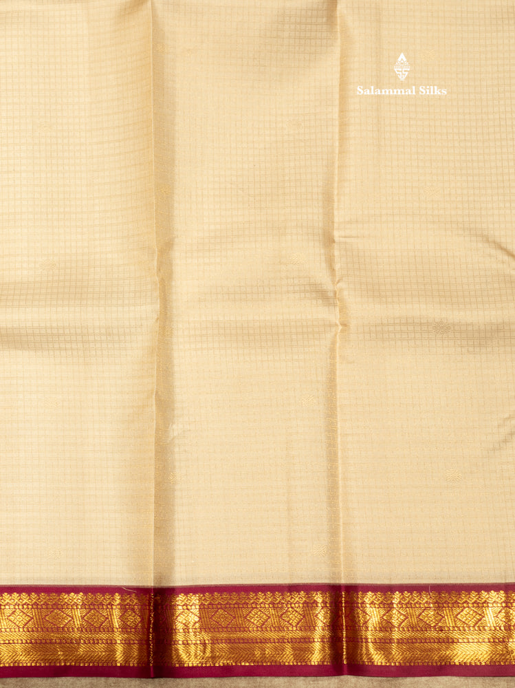 Cream Colour Small Checks Pure Kanjivaram Silk Saree with Traditional Border
