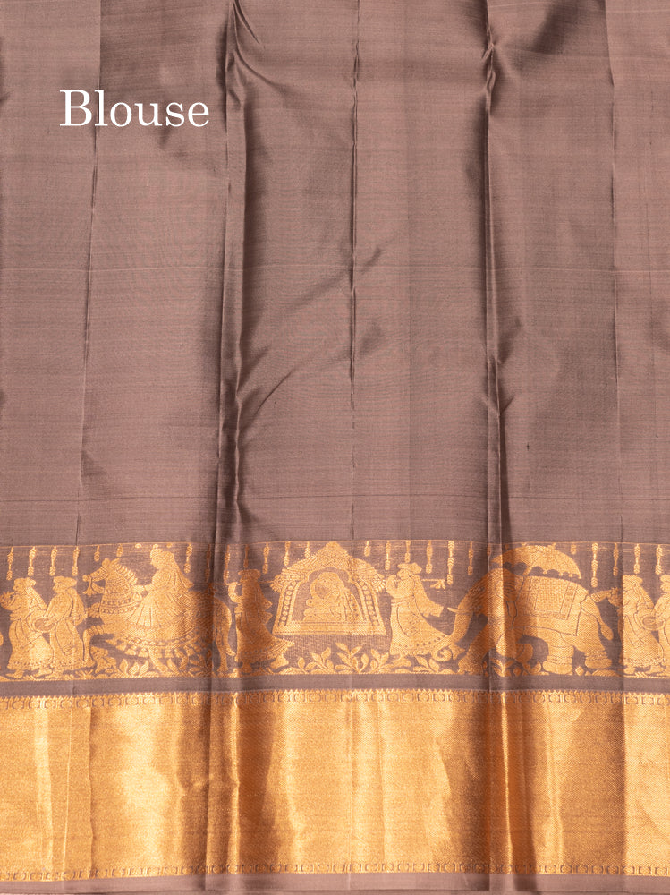 Grey Colour Plain Pure Kanjivaram Silk Saree with Pallakku Border