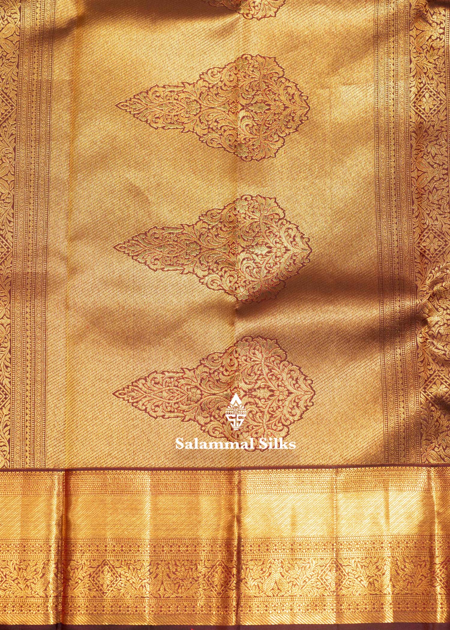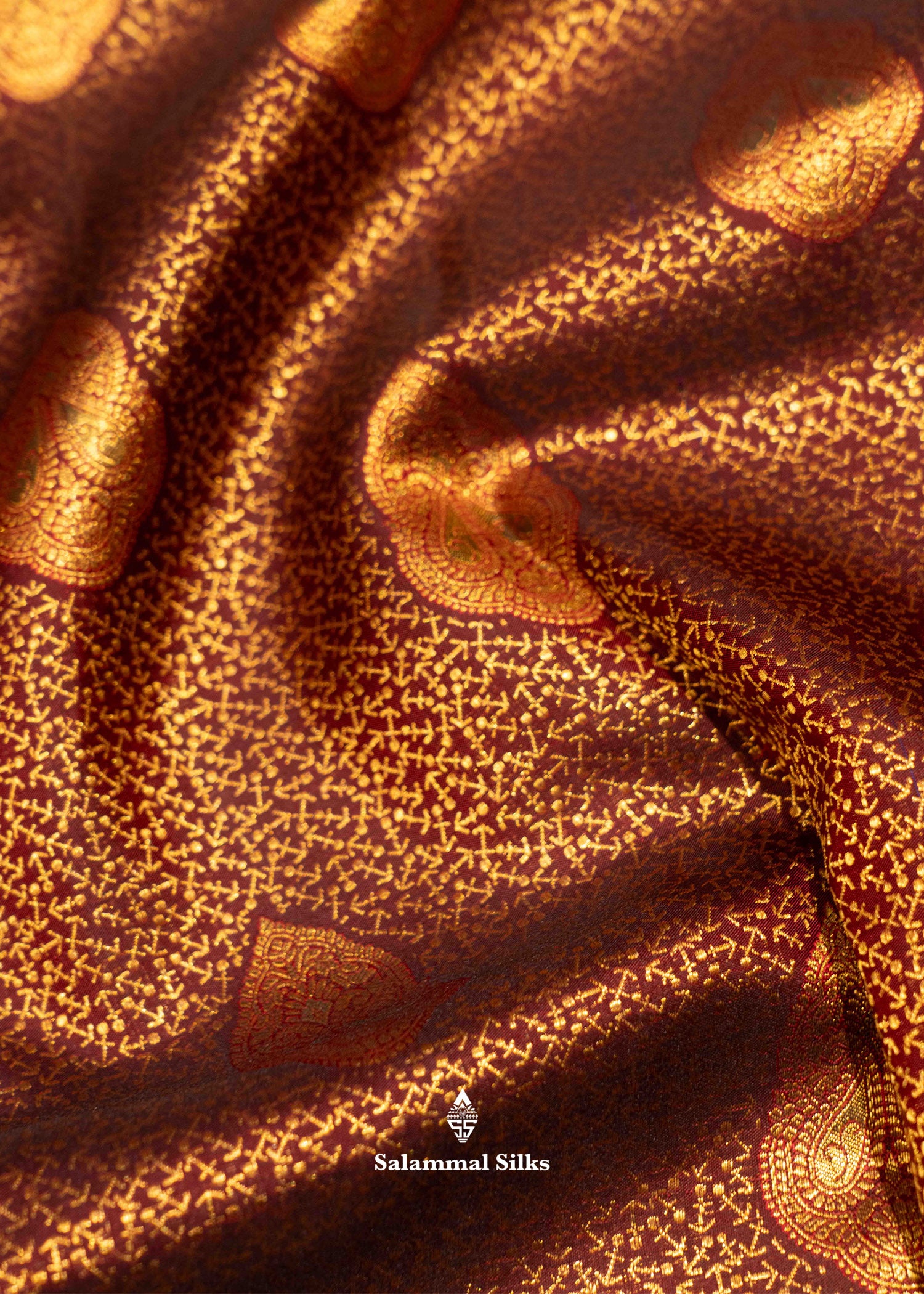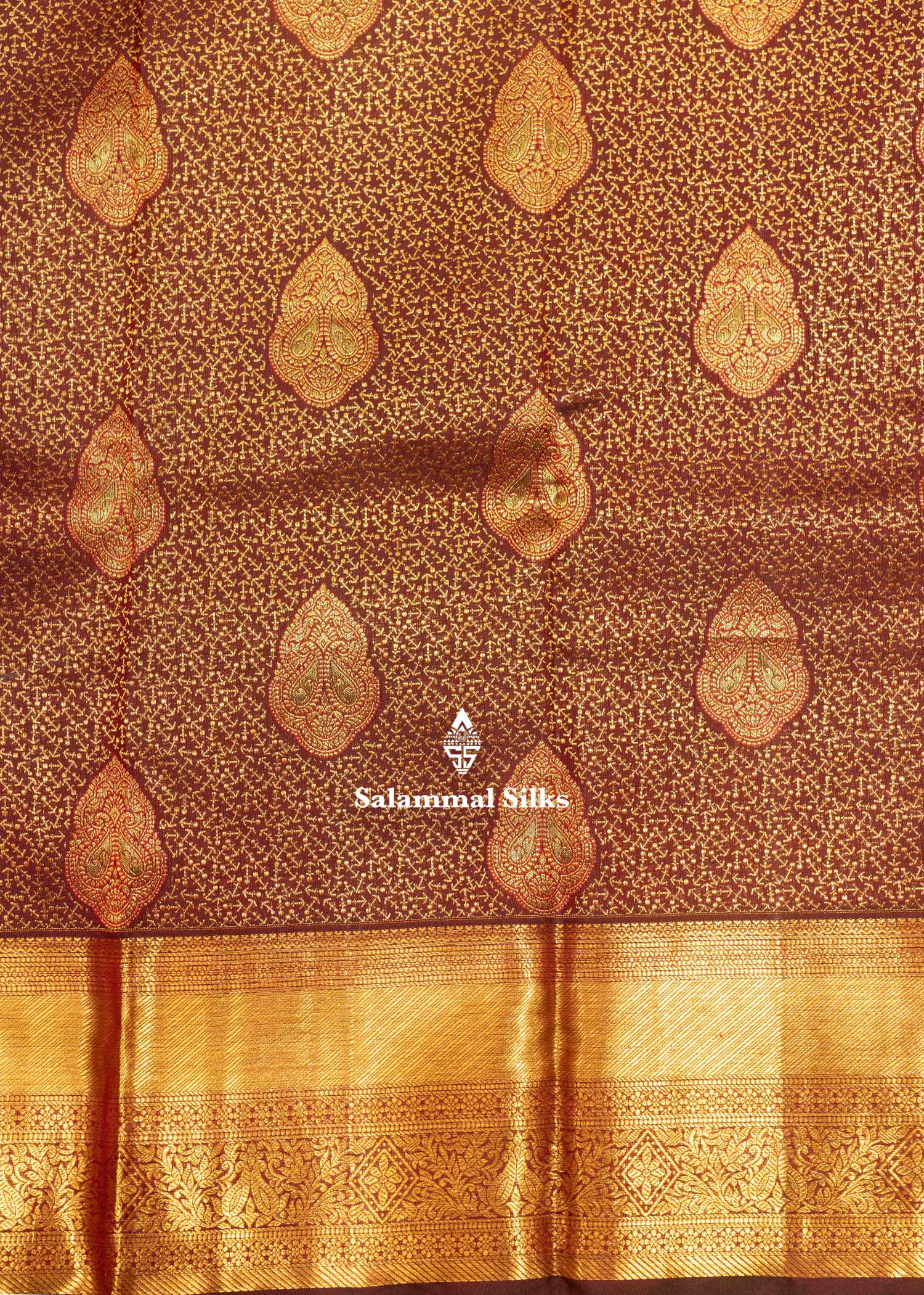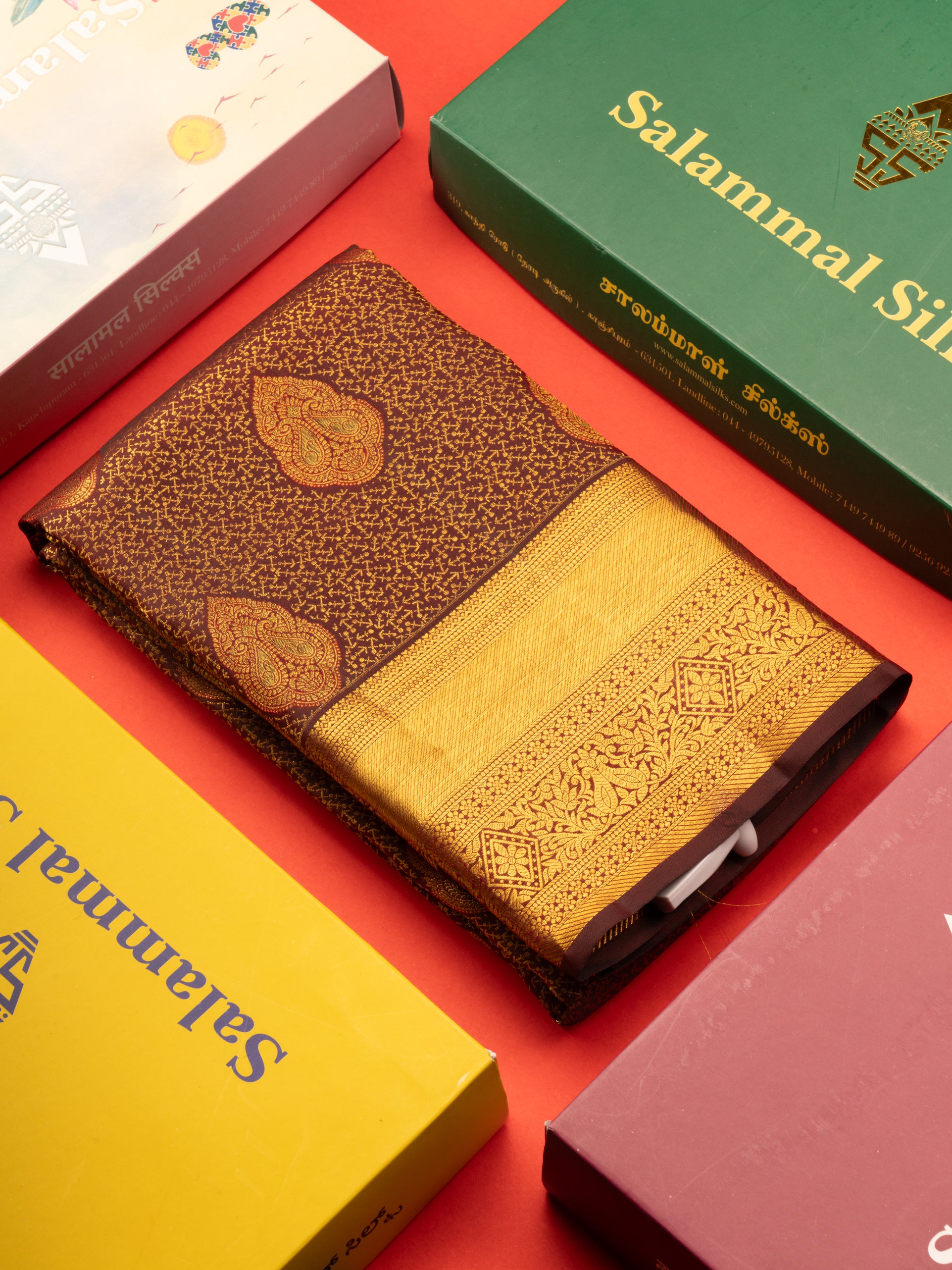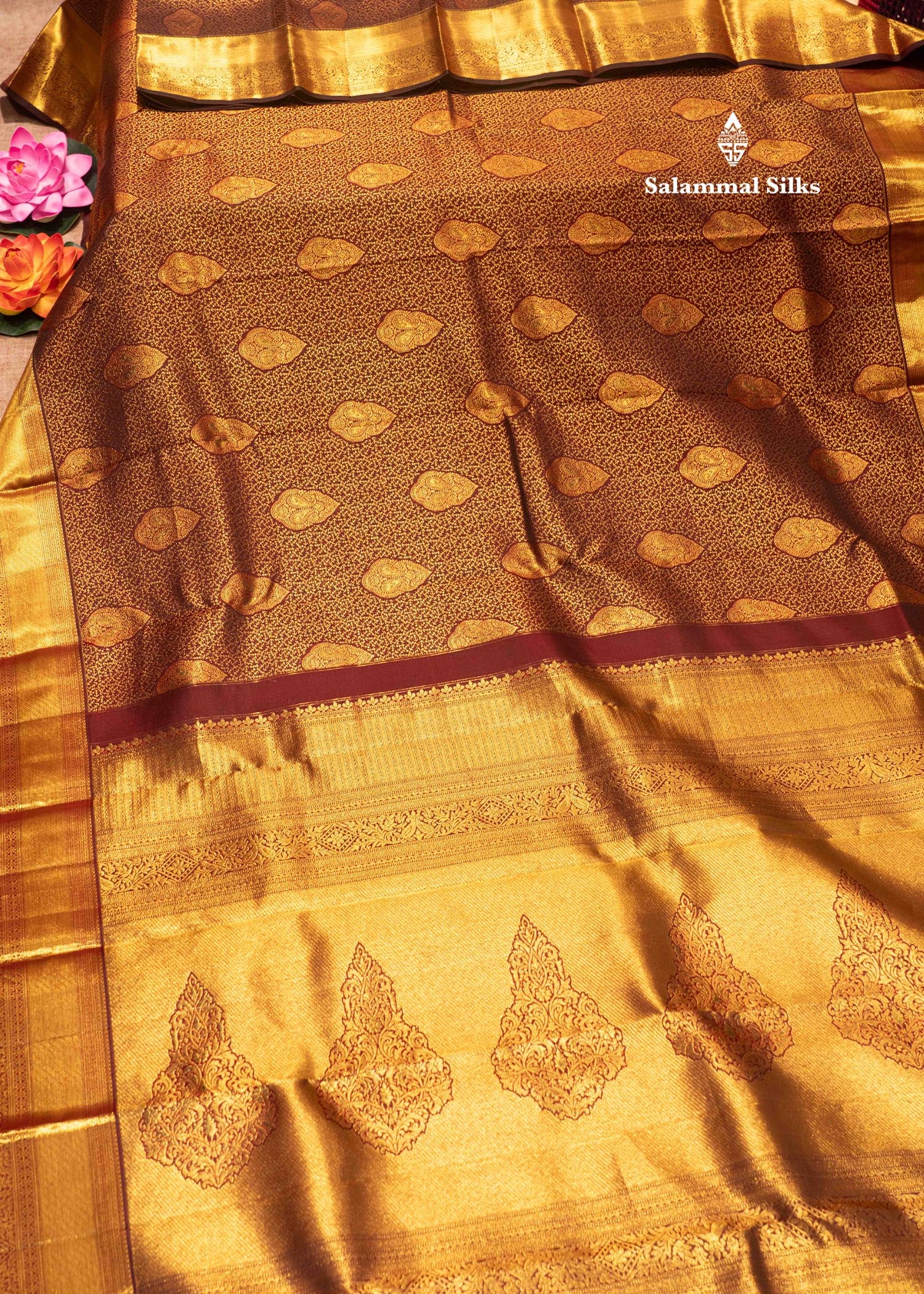 Dark Brown Colour Kanjivaram Pure Silk Saree with Gold Zari Border