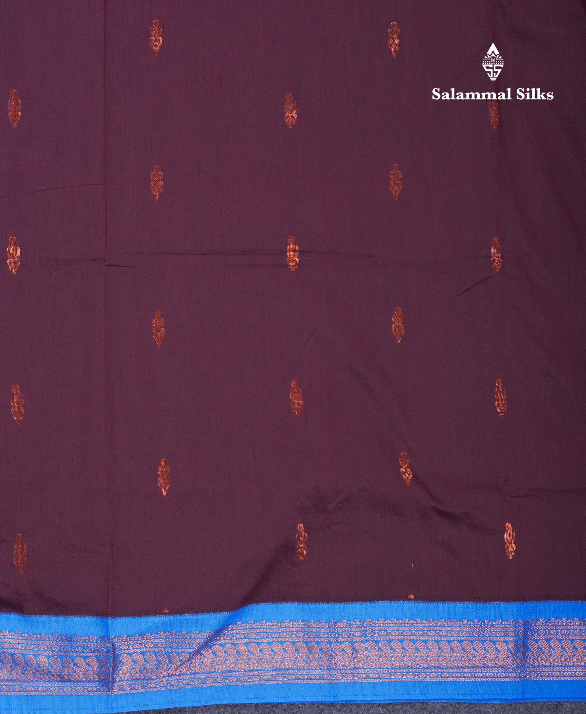 Dark Brown Kalyani Cotton Saree With Contrast Ananda Blue Blouse