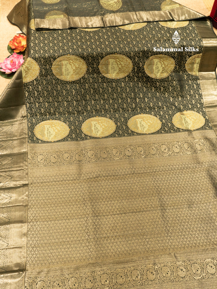 Dark Elephant Grey Colour Pure Kanjivaram Fancy Silk Saree with Silver Zari Border
