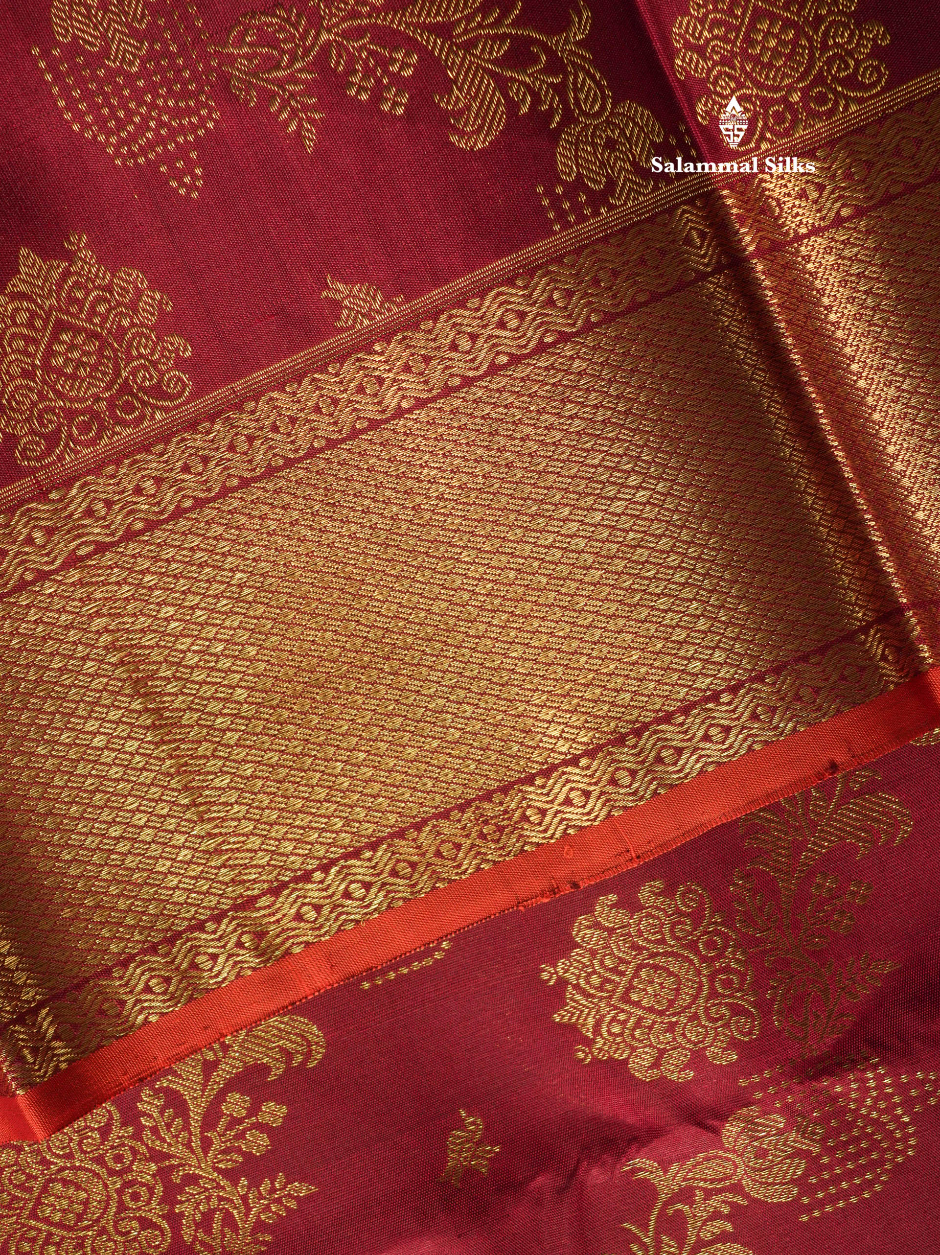 Salammal is known for its handloom sarees. In some sarees, there is cross-weaving between the body and the pallu, which is a sign of pure handloom sarees. This can be seen in Kanchipuram embossed sarees.