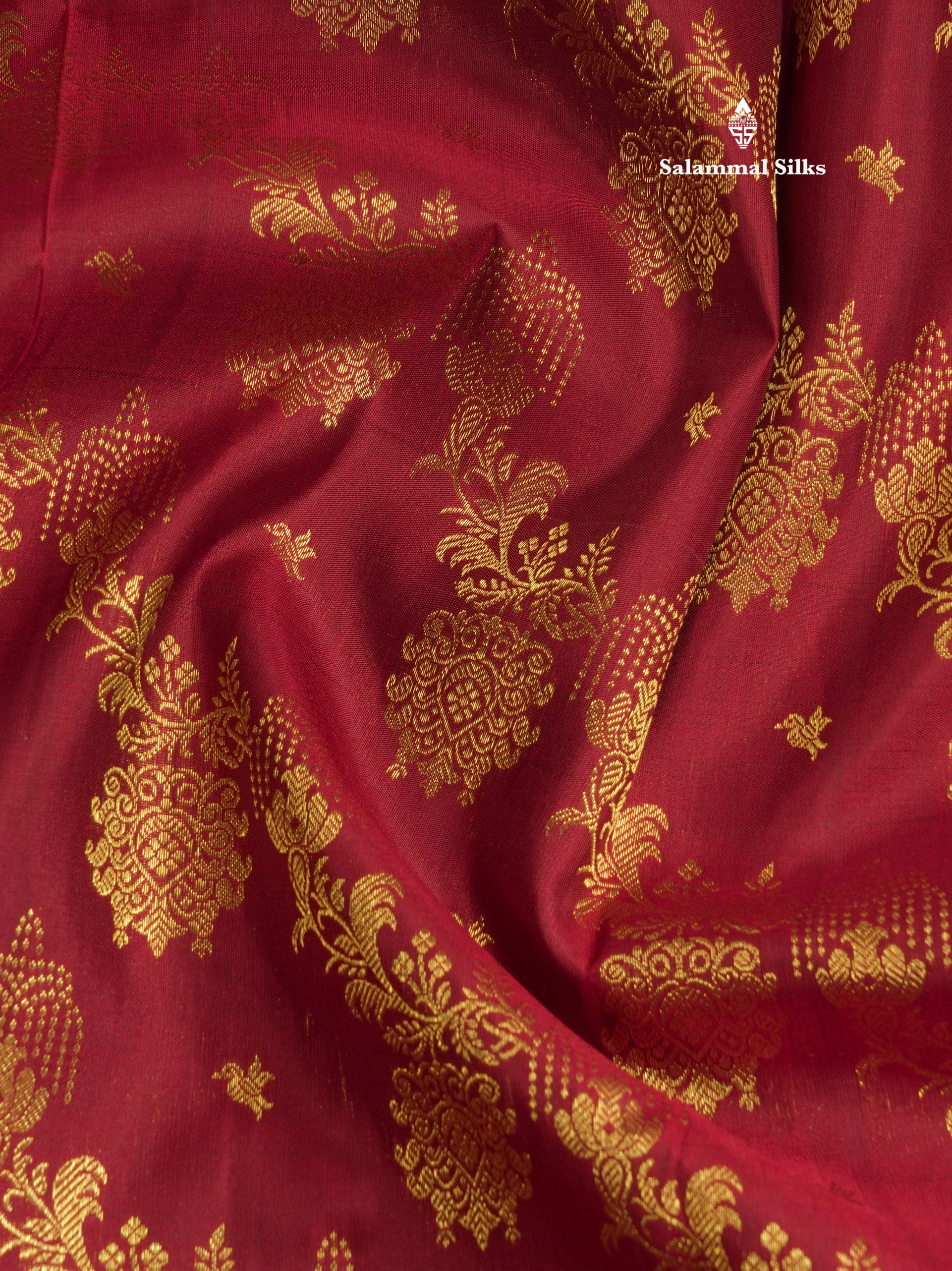 Dark Maroon Bridal Pure Kanjivaram Silk Saree With Self Border