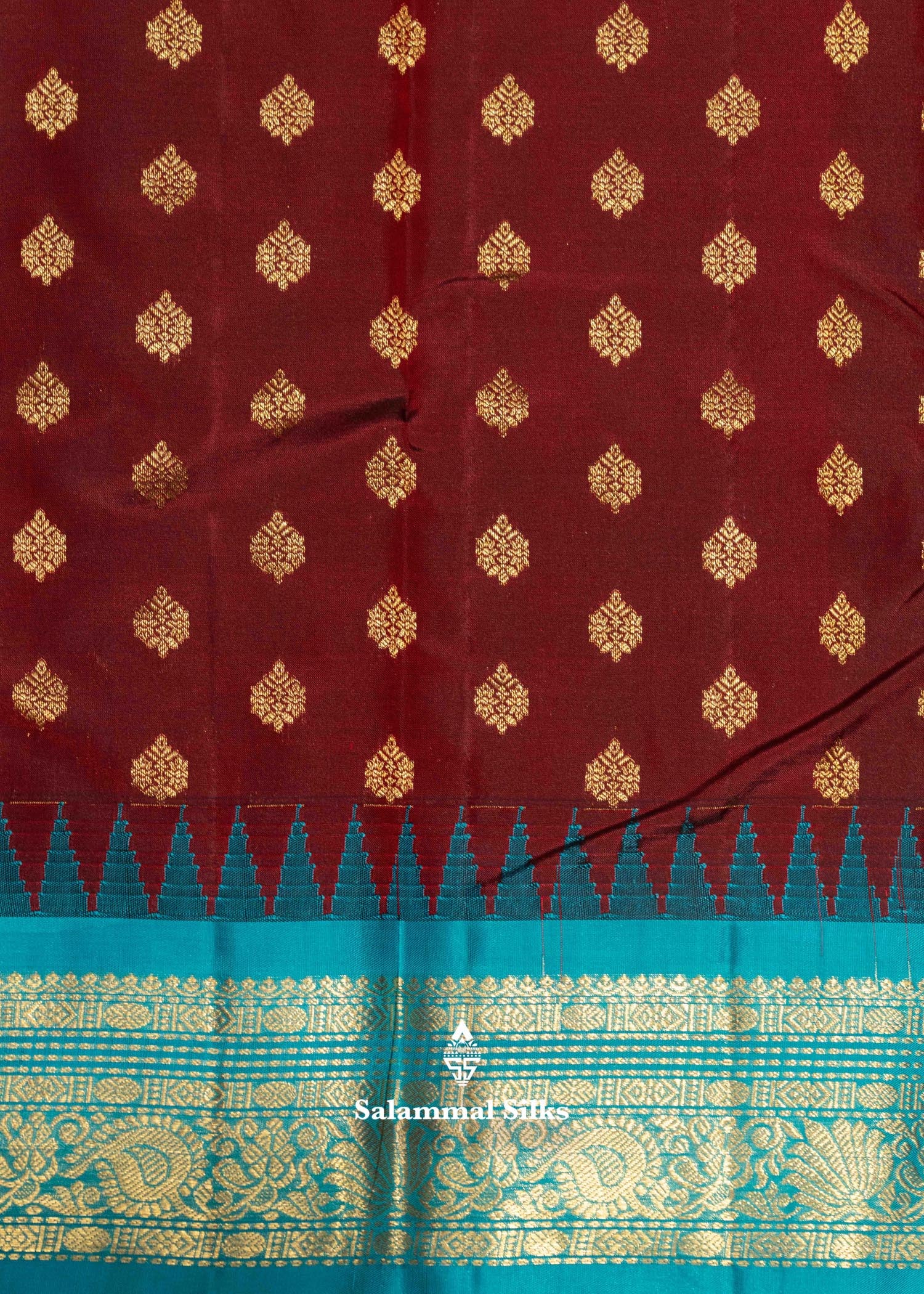 Dark Maroon Colour Kanjivaram Pure Silk Saree With Sapphire Green Border