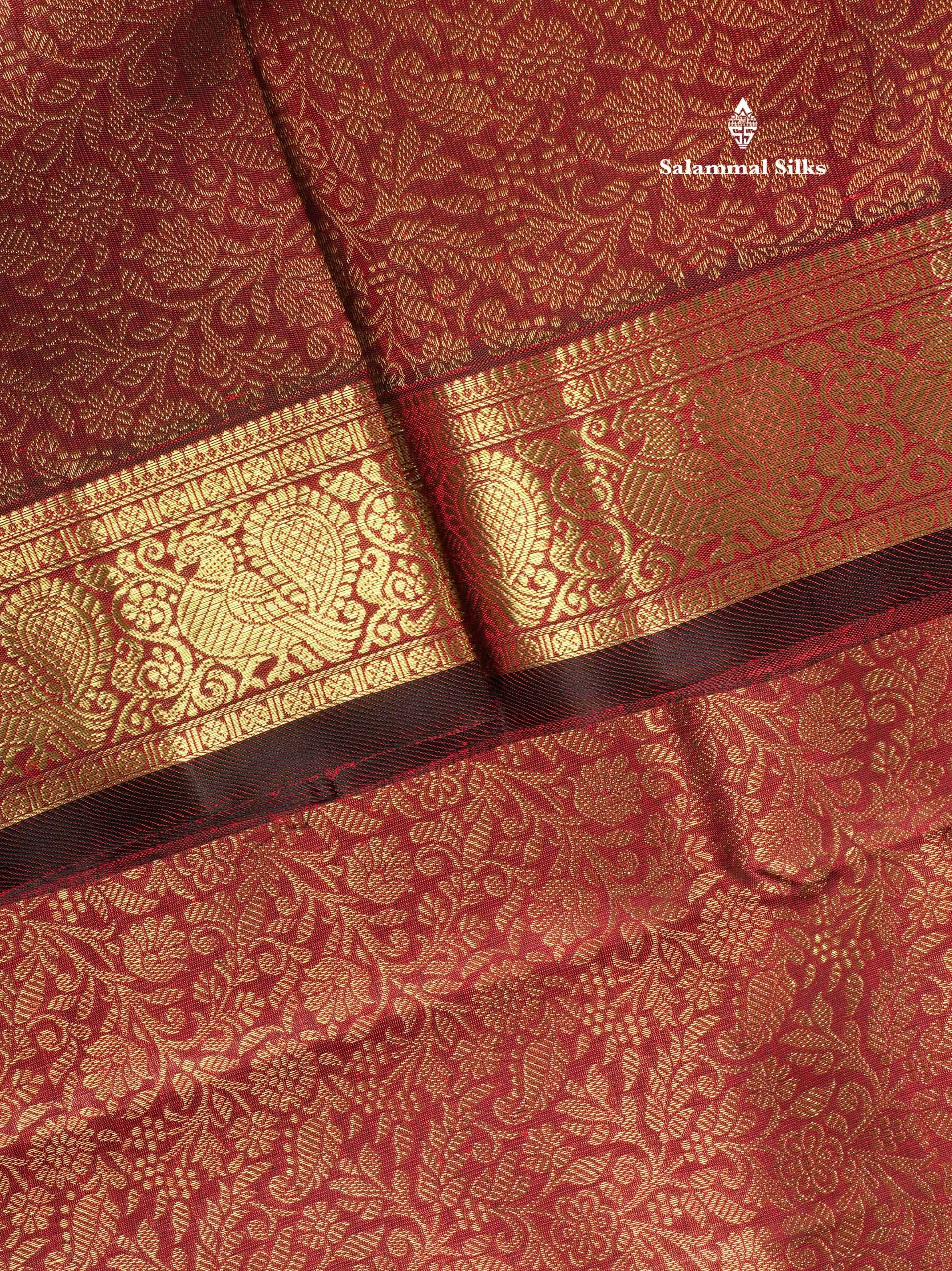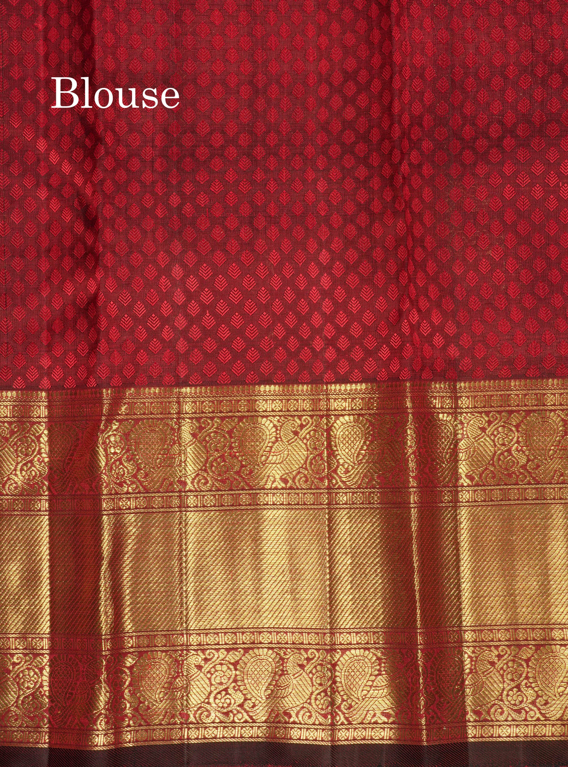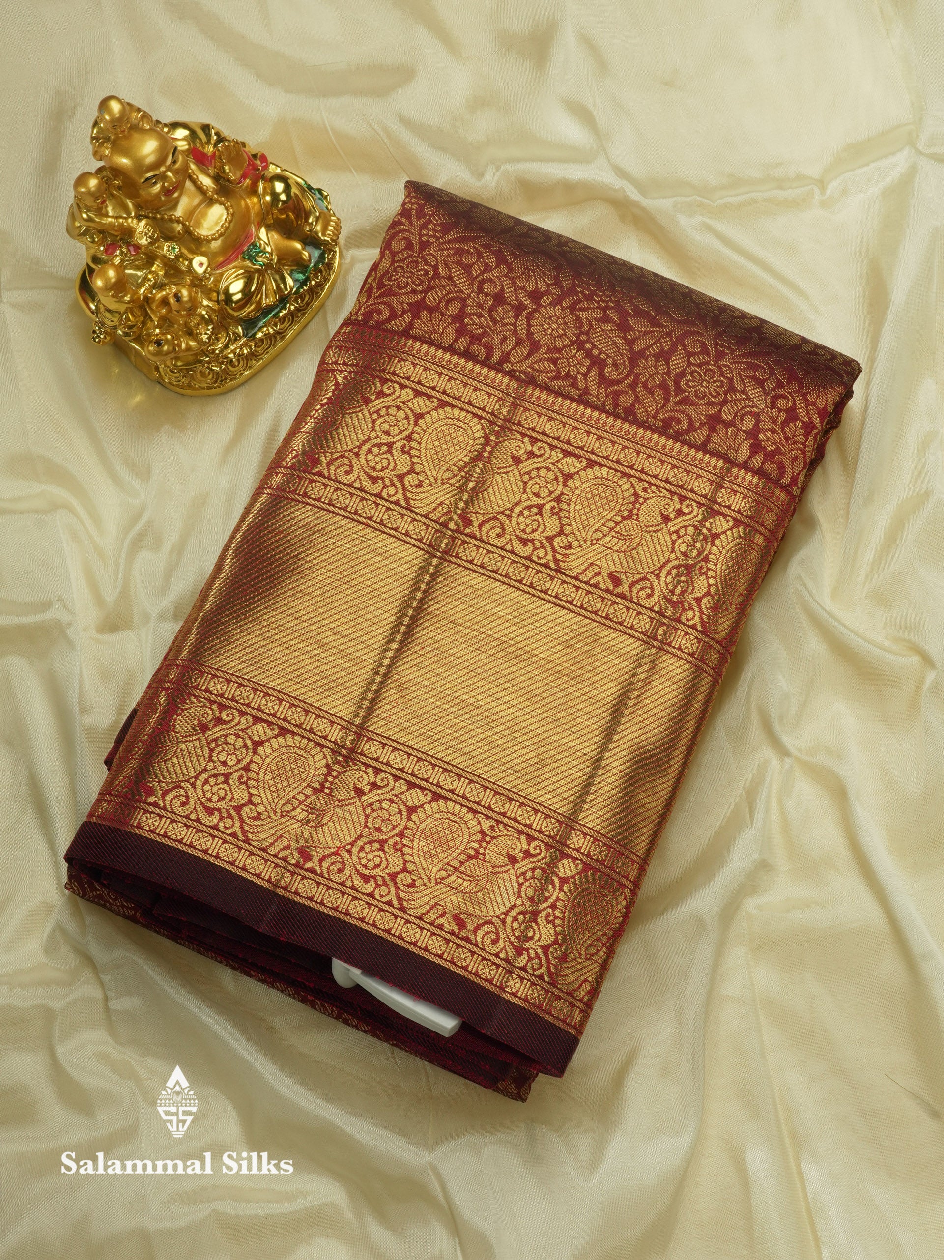 Dark Maroon Pure Kanjivaram Silk Saree (2G) Zari With TraditionalGold Zari Border