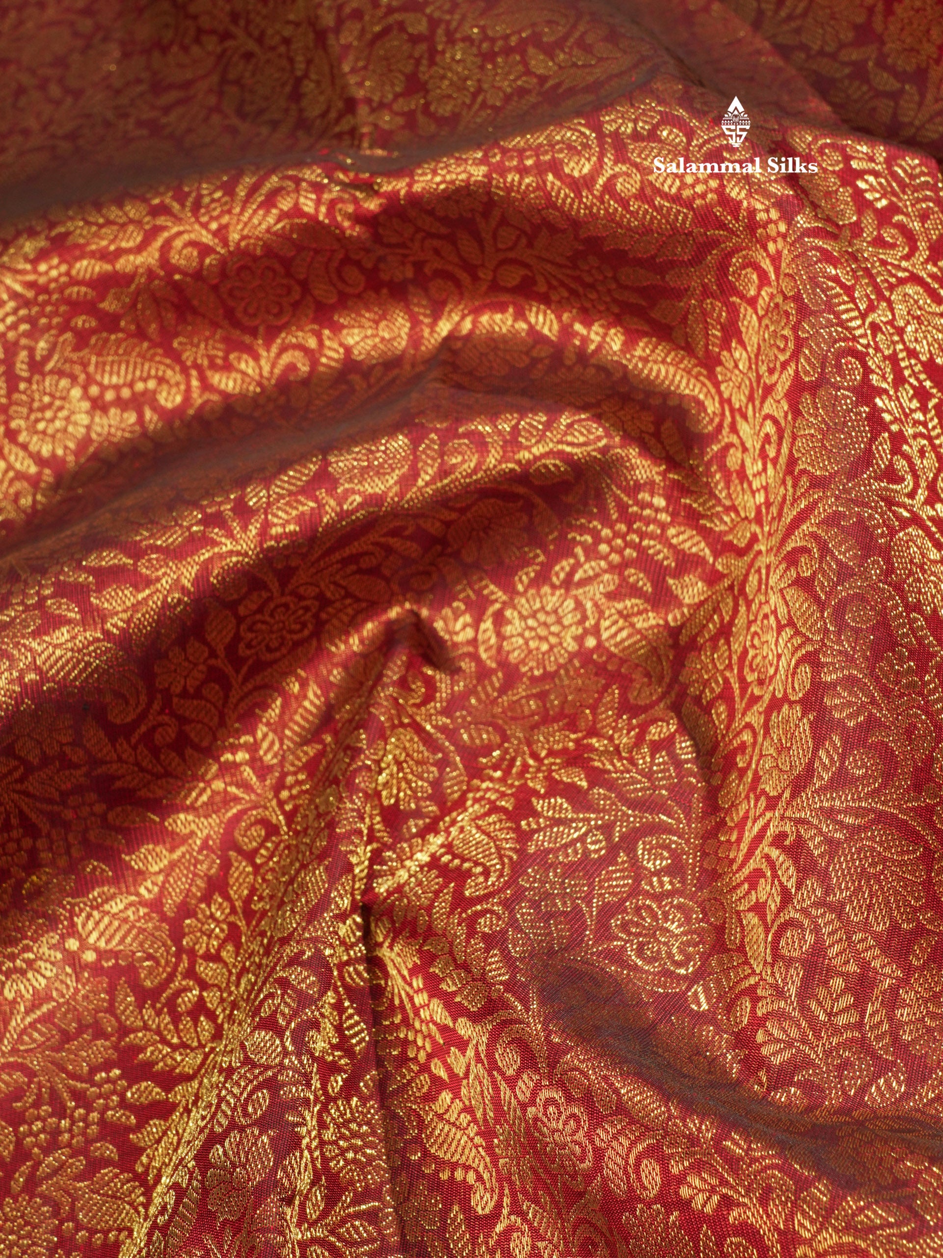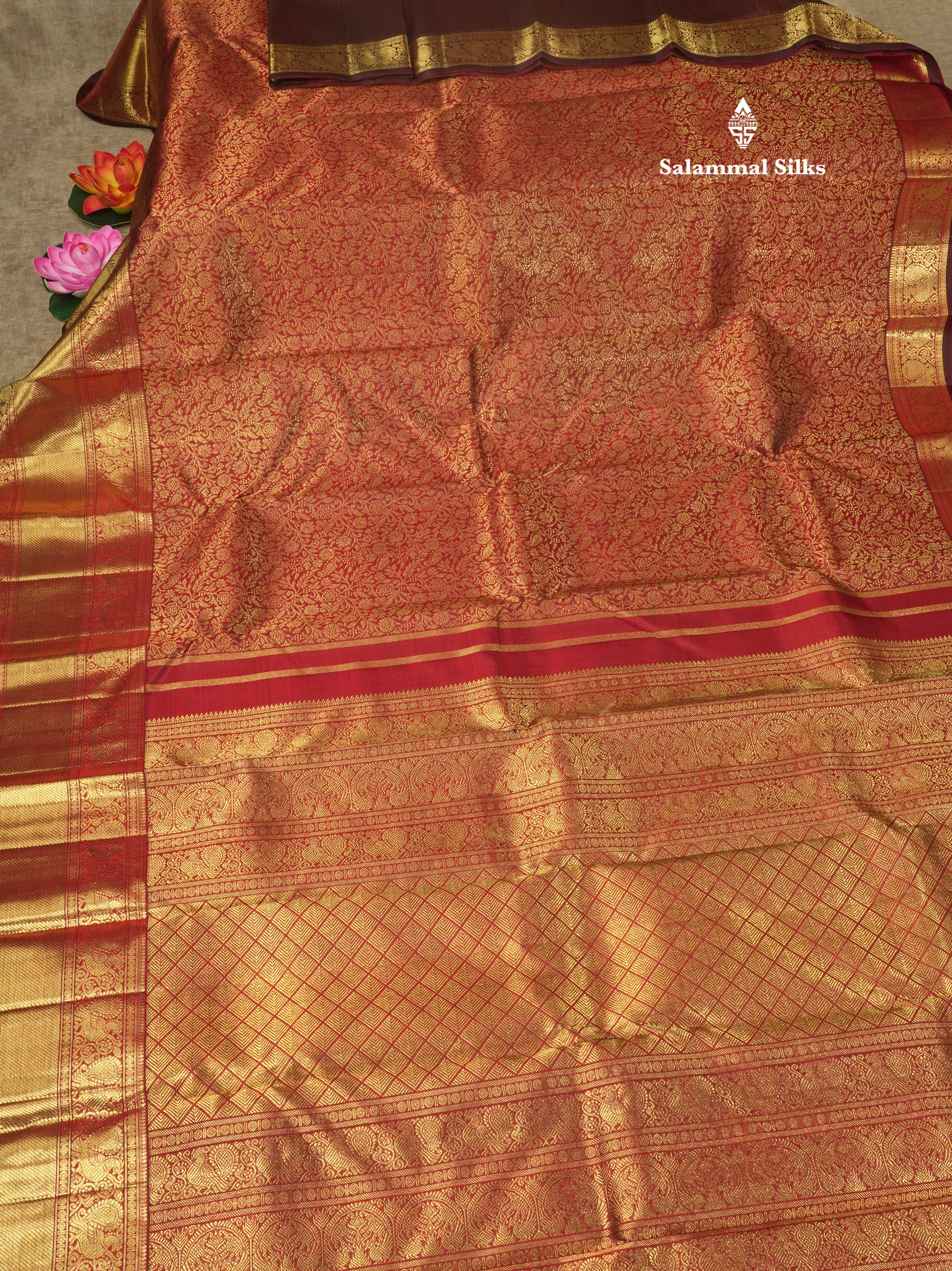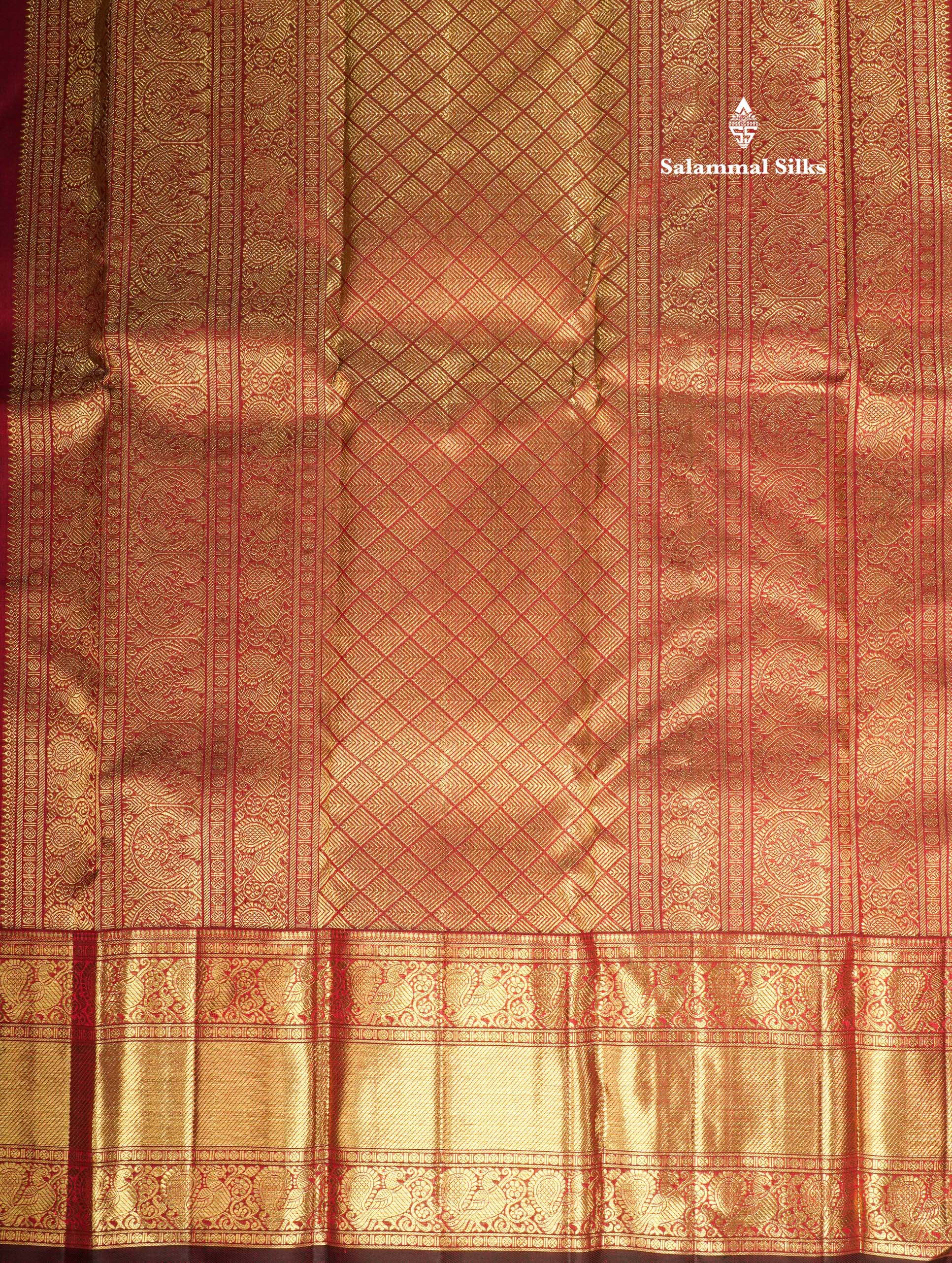 Dark Maroon Pure Kanjivaram Silk Saree (2G) Zari With TraditionalGold Zari Border