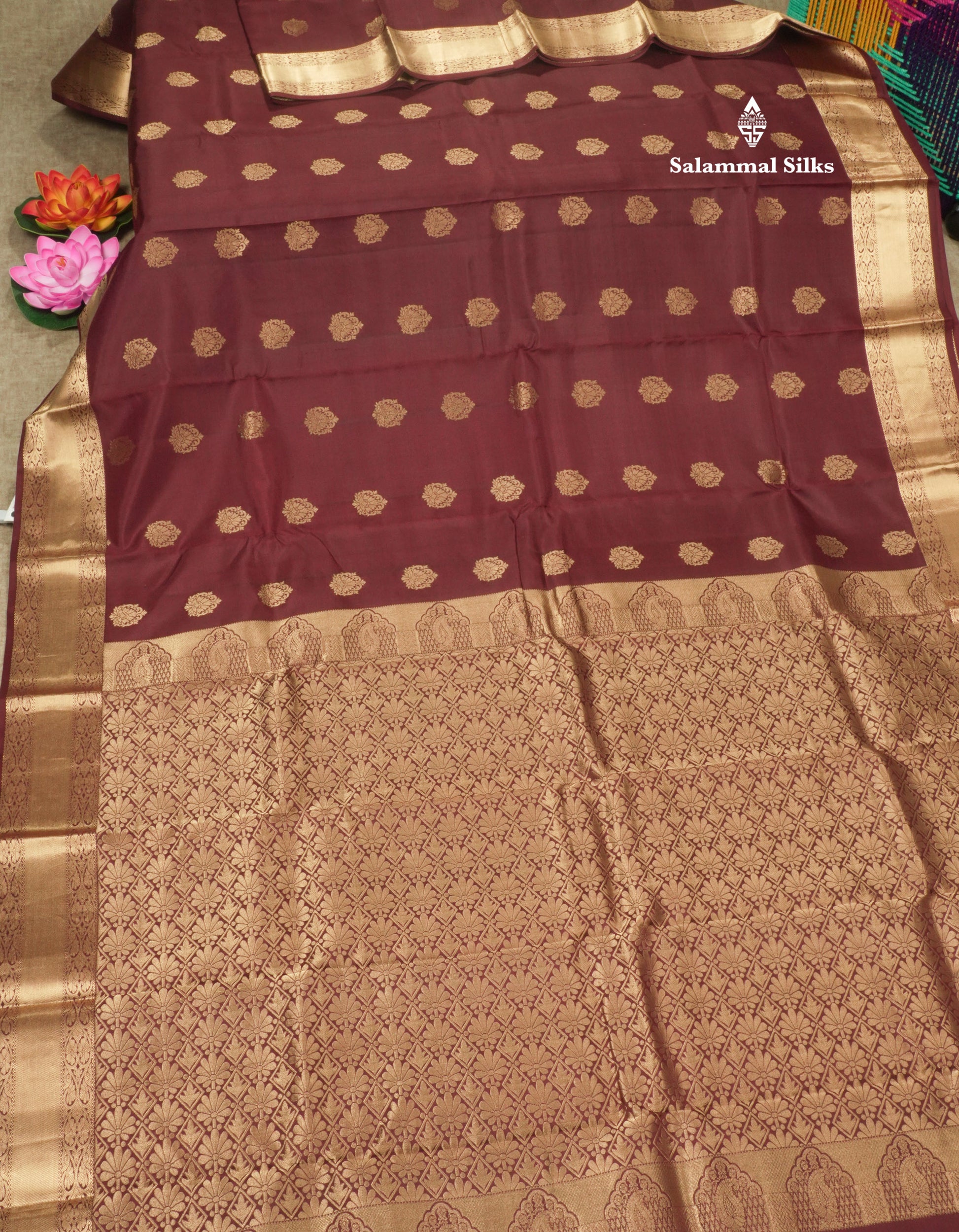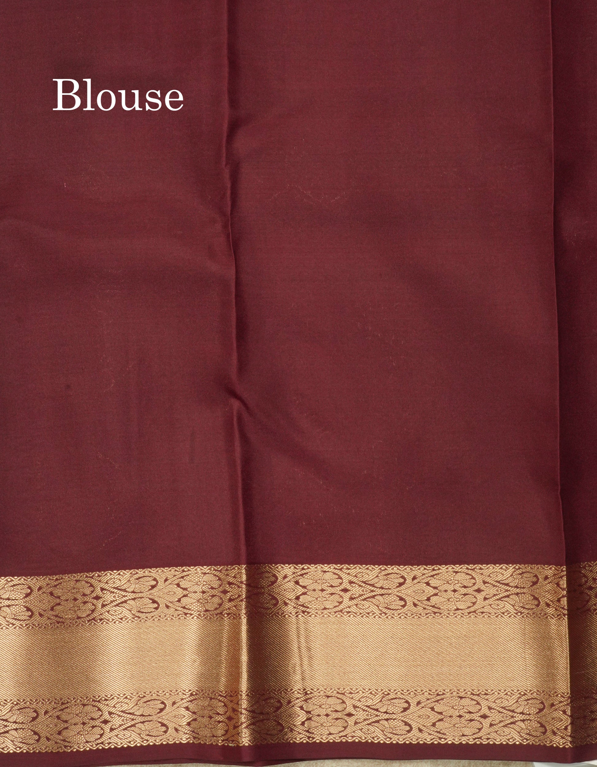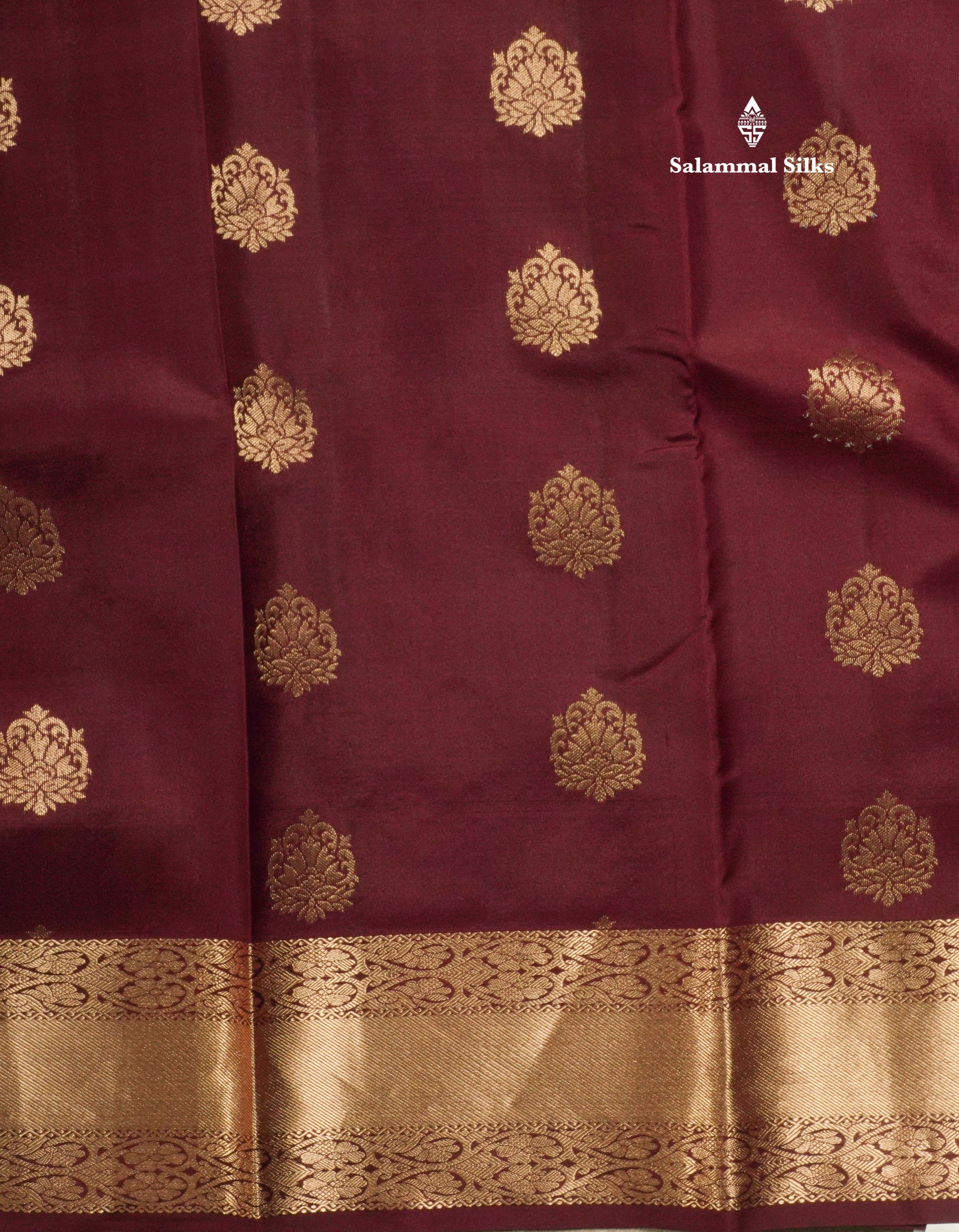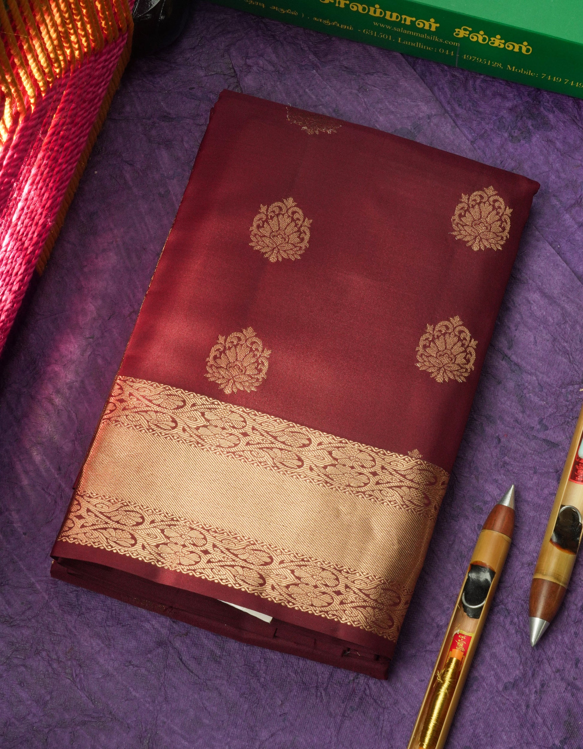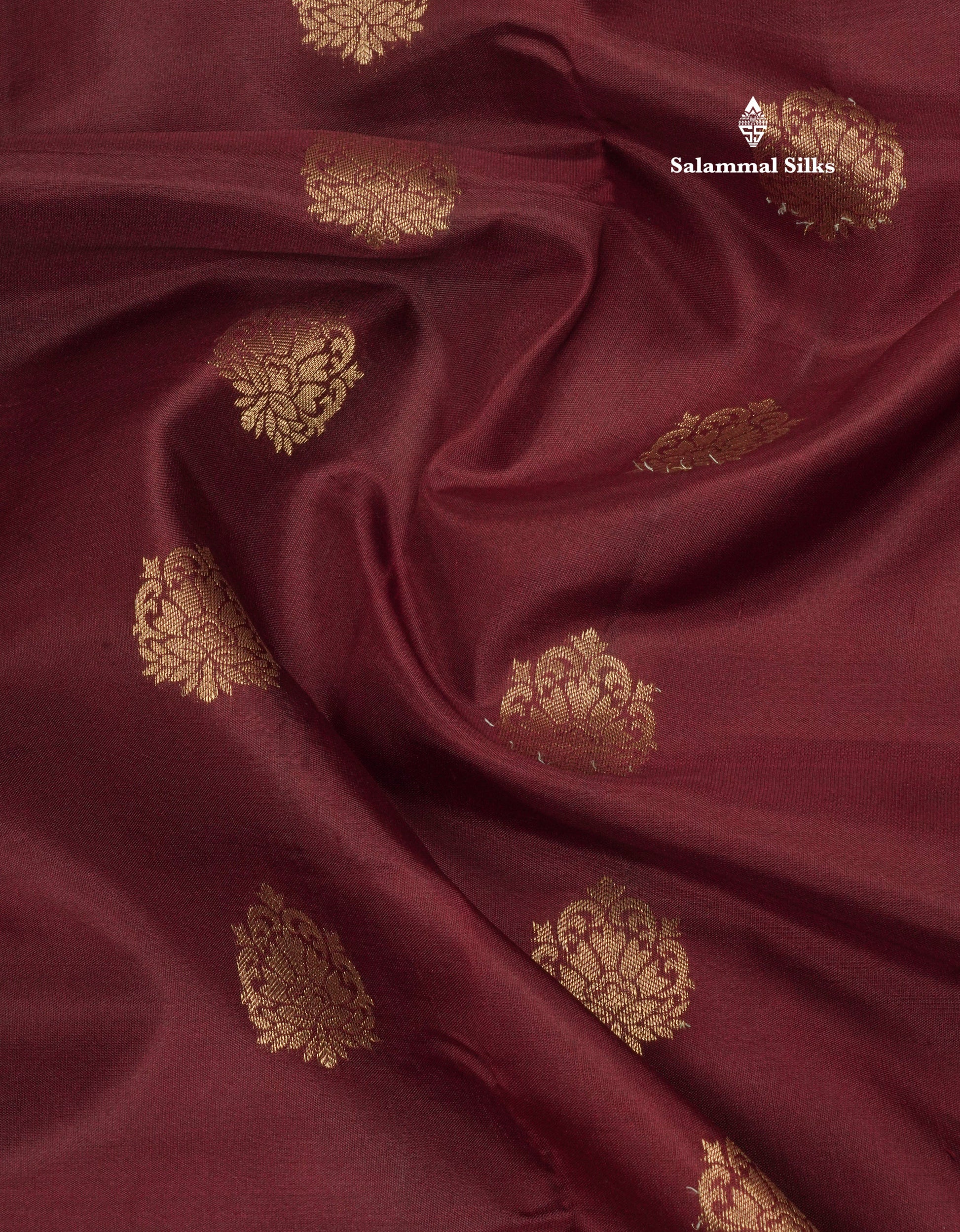 Dark Maroon Pure Kanjivaram Silk Saree With Gold Zari Border