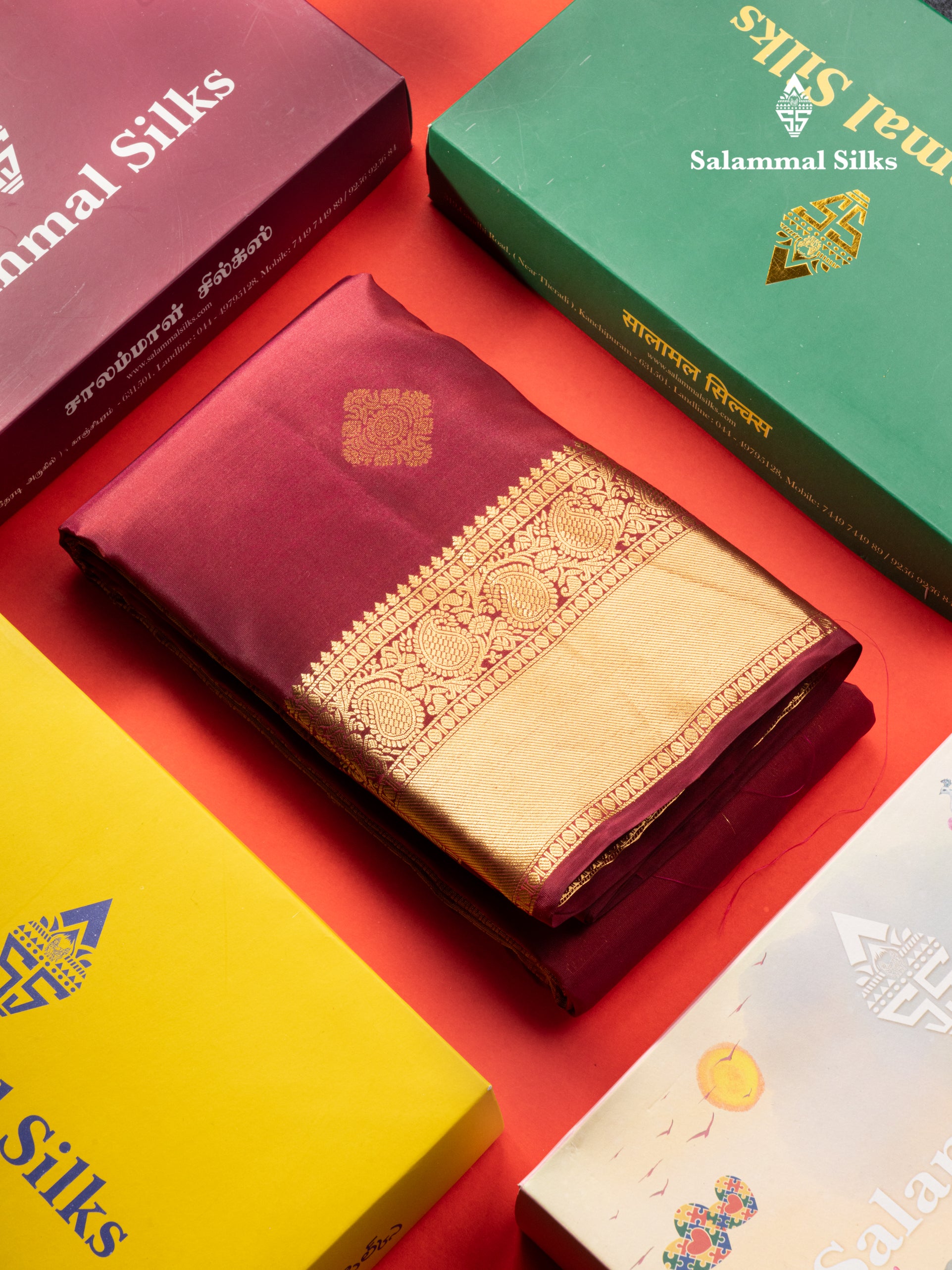 Salammal is known for its handloom sarees. In some sarees, there is cross-weaving between the body and the pallu, which is a sign of pure handloom sarees. This can be seen in Kanchipuram embossed sarees.