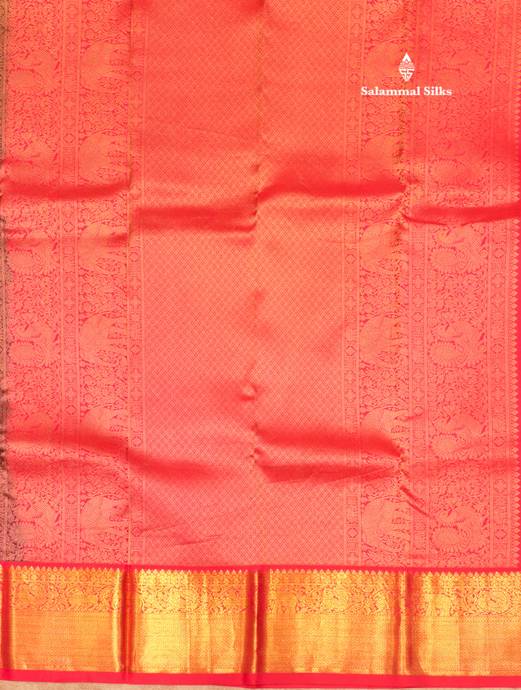 Salammal is known for its handloom sarees. In some sarees, there is cross-weaving between the body and the pallu, which is a sign of pure handloom sarees. This can be seen in Kanchipuram embossed sarees.