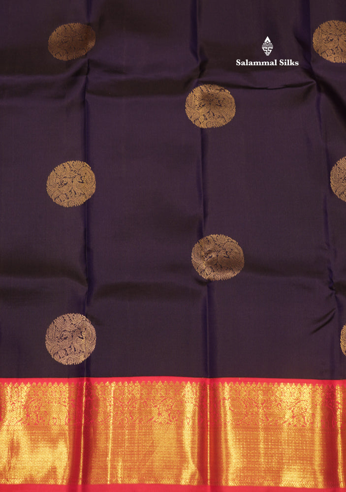 Dark Navy Blue Colour Pure Kanjivaram Silk Saree With Contrast Pinkish Red Border