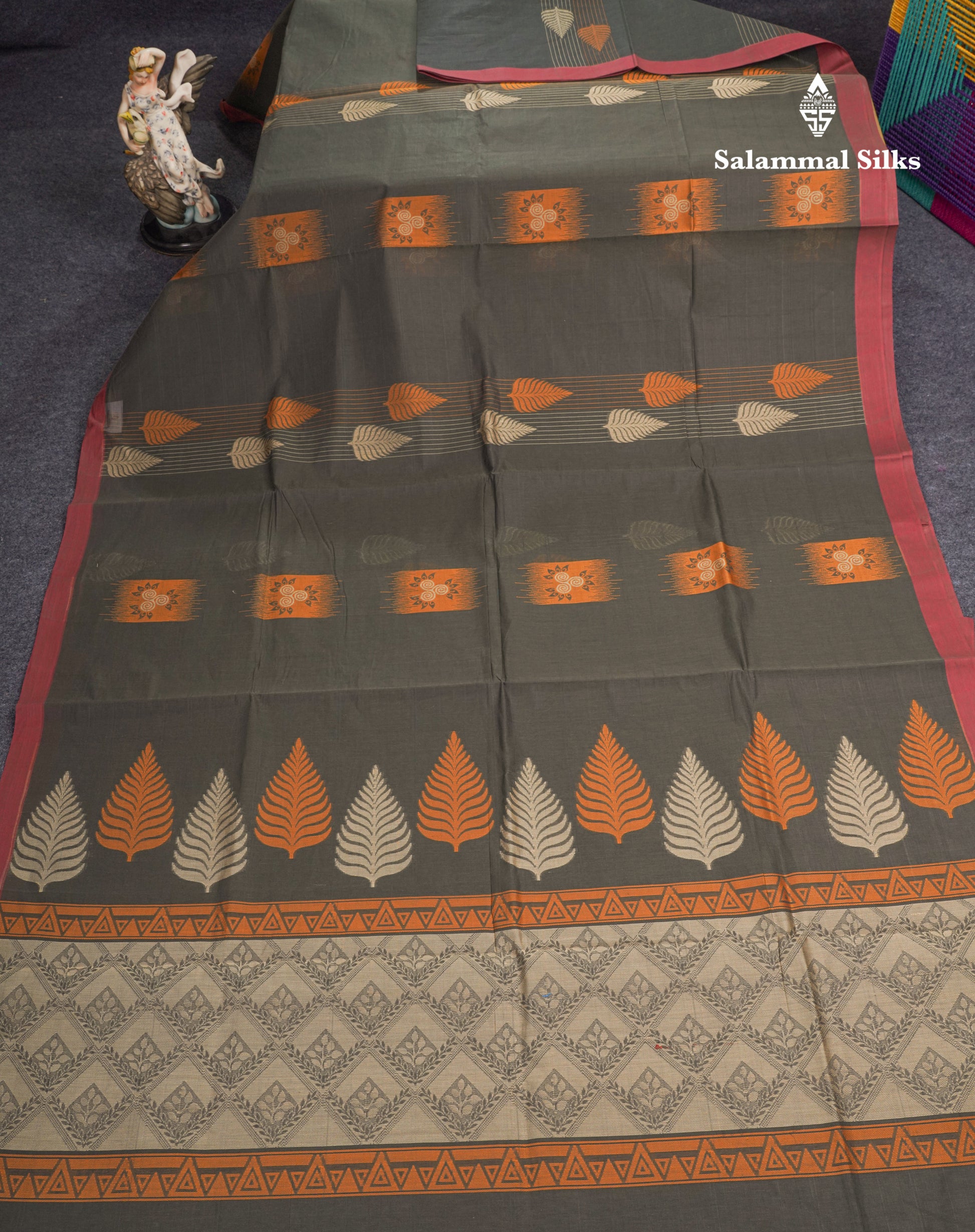 Salammal is known for its handloom sarees. In some sarees, there is cross-weaving between the body and the pallu, which is a sign of pure handloom sarees. This can be seen in Kanchipuram embossed sarees.