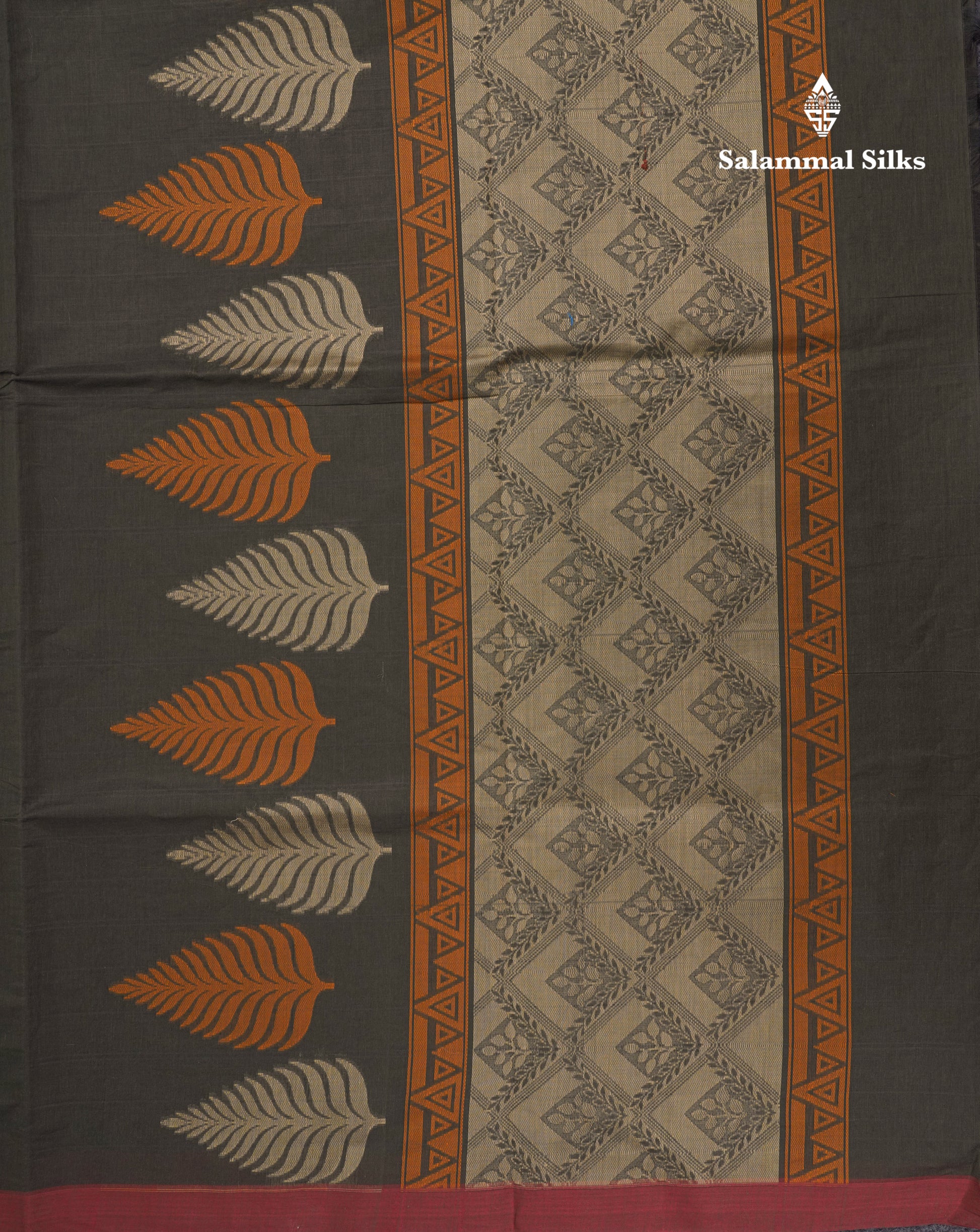 Dark Olive Green Beautiful Fancy Pure Cotton Saree With Small Maroon Border