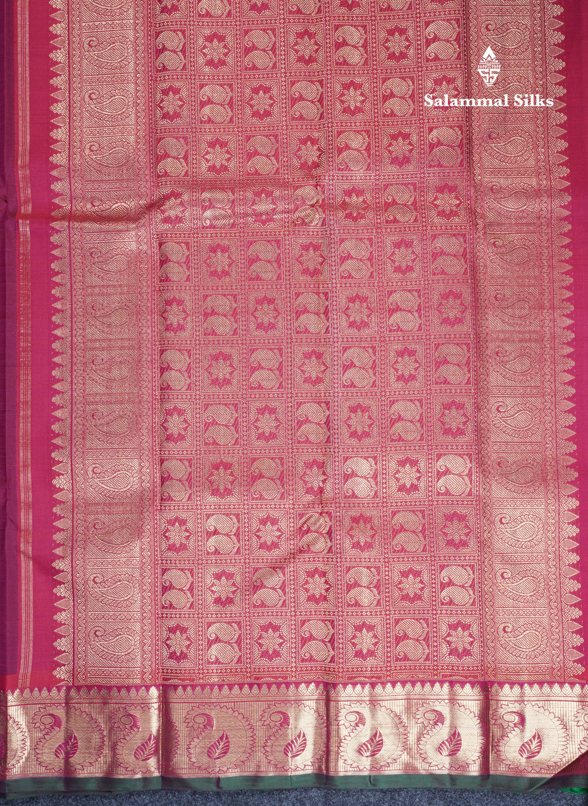 Dark Purple Flower Buttas Pure Kanjivaram Silk Saree Pure Zari with Magenta Border