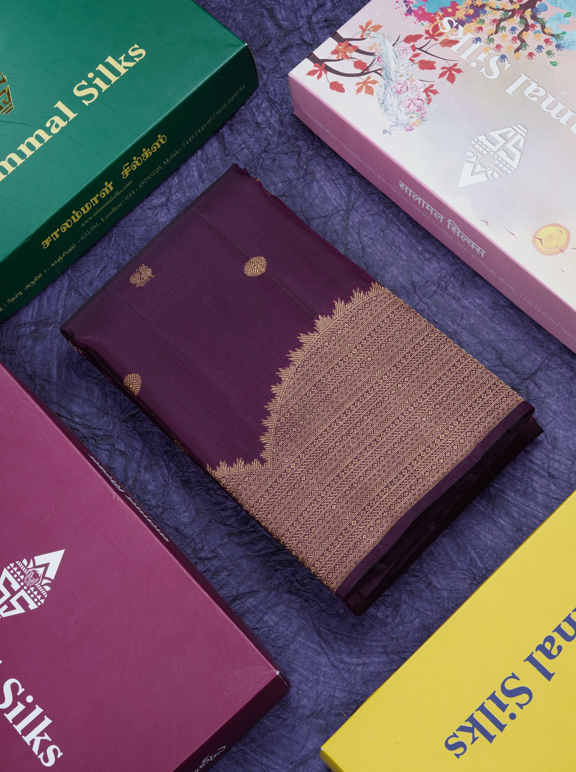 Dark Purple Pure Kanjivaram Silk Saree With Fancy Turning Border