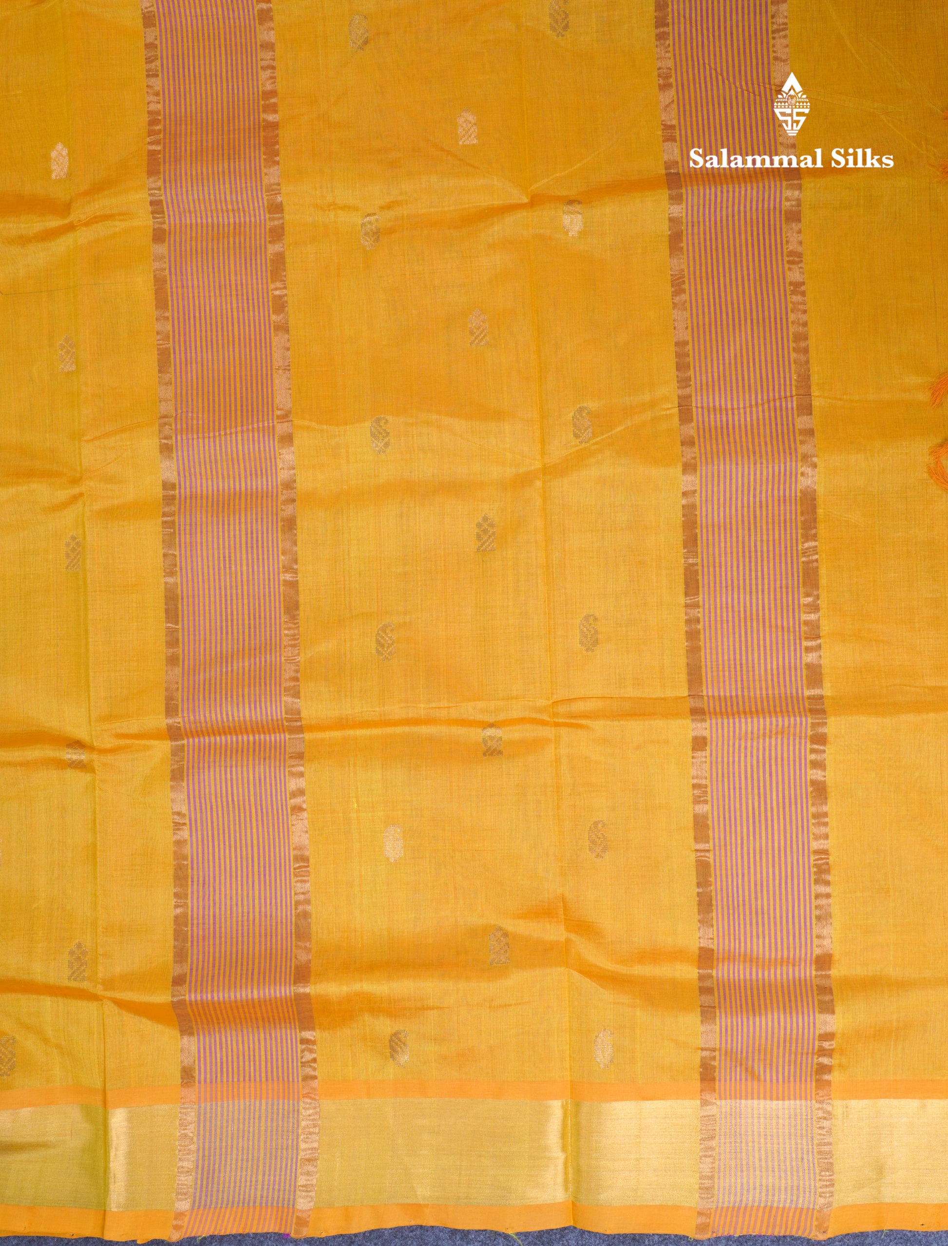 Salammal is known for its handloom sarees. In some sarees, there is cross-weaving between the body and the pallu, which is a sign of pure handloom sarees. This can be seen in Kanchipuram embossed sarees.