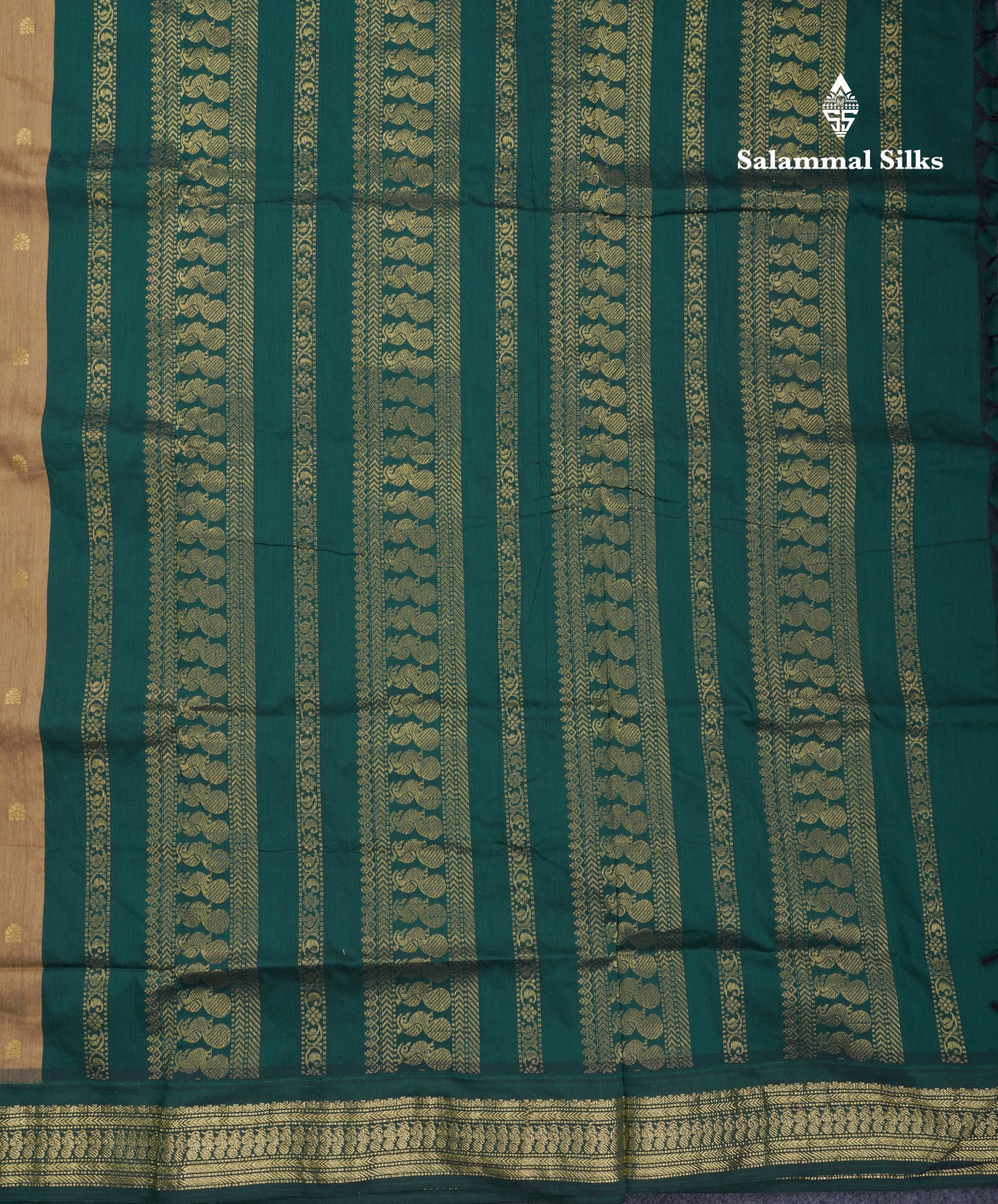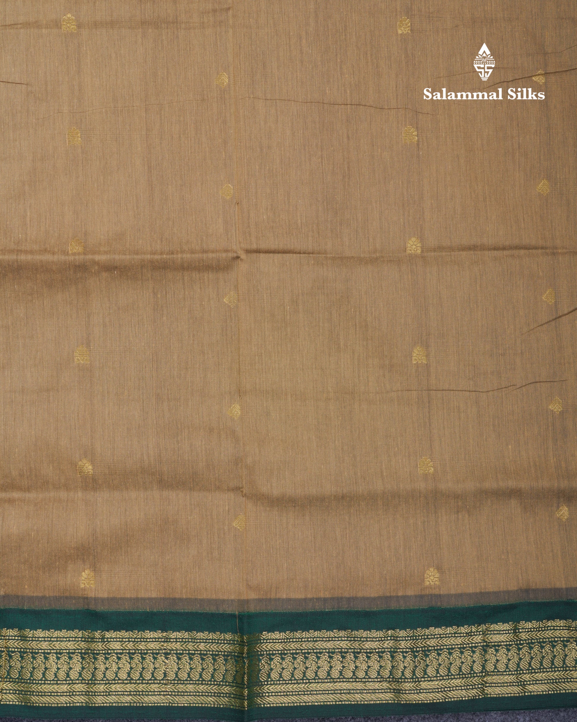 Dark Sandal Kalyani Cotton Saree With Contrast Bottle Green Blouse