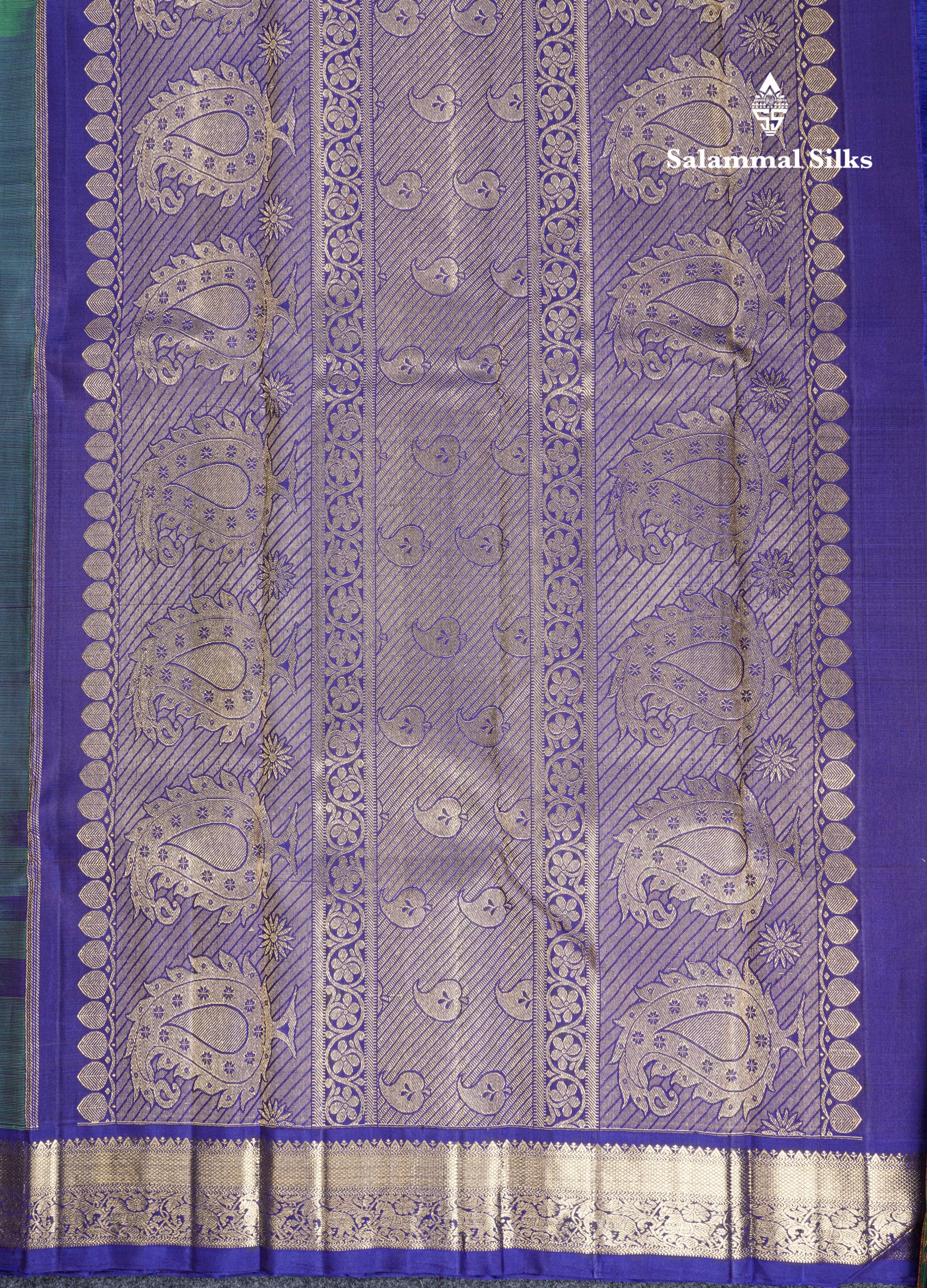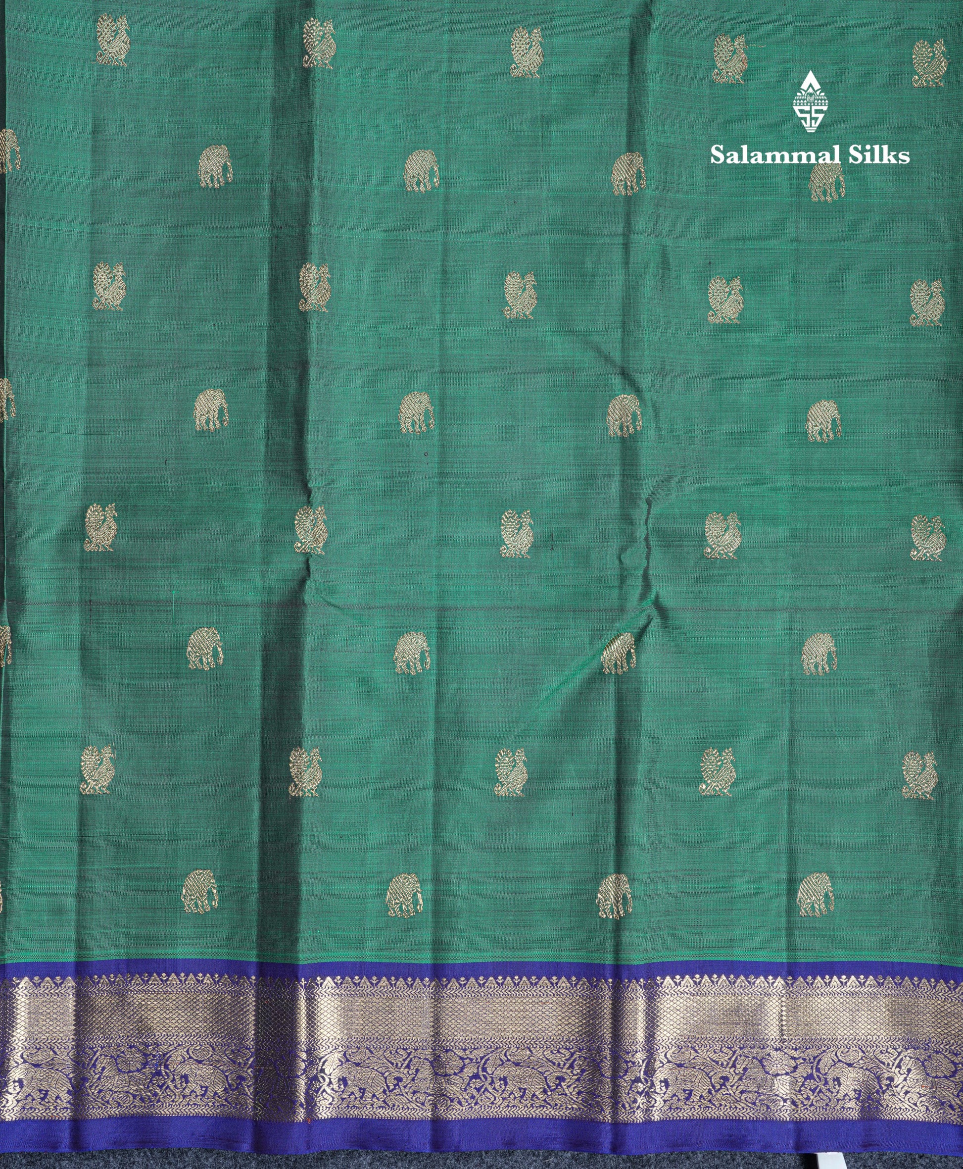 Dual Tone Green Beautiful Traditional Buttas Pure Kanjivaram Silk Saree Pure Zari with Royal Blue Border