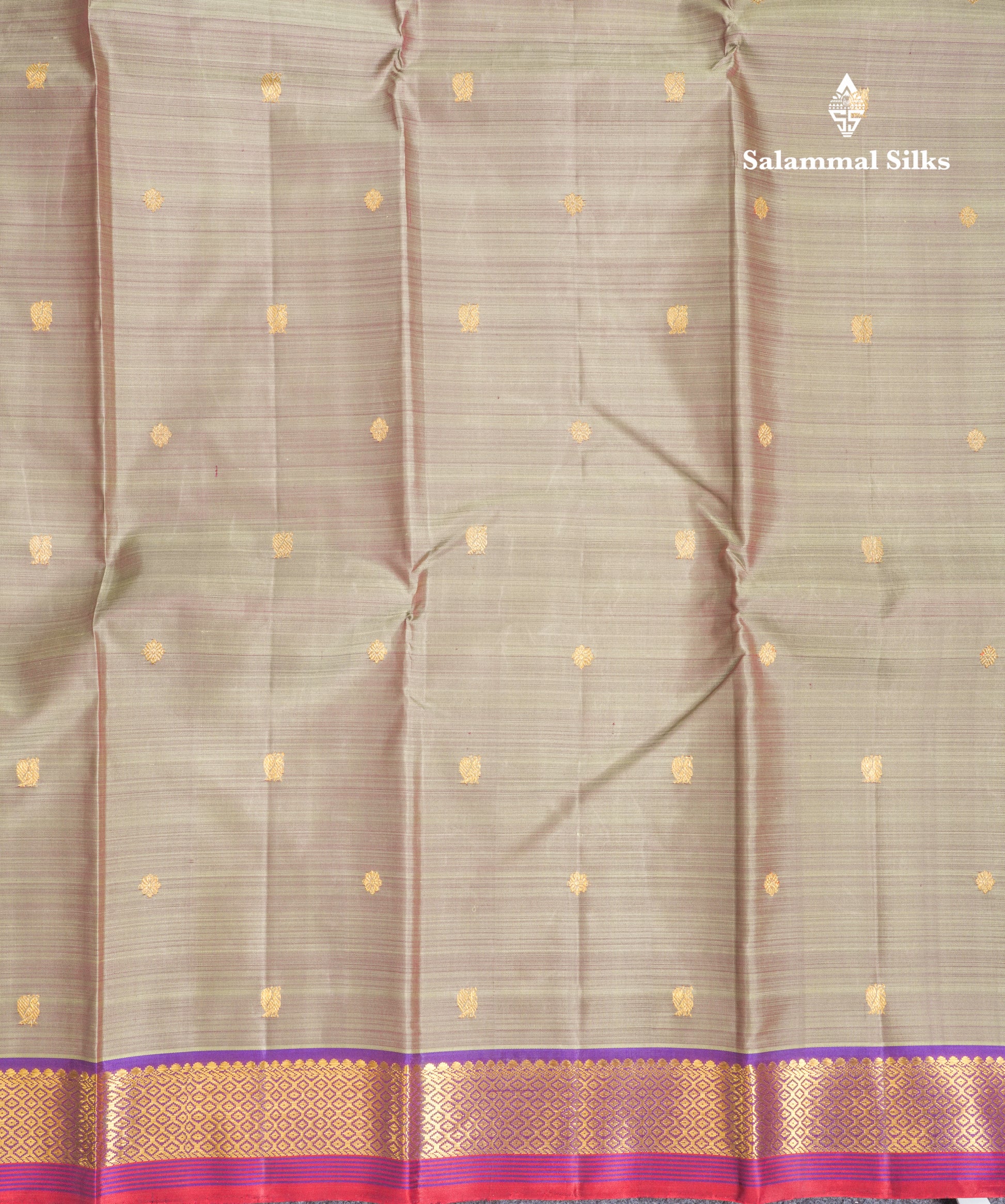 Salammal is known for its handloom sarees. In some sarees, there is cross-weaving between the body and the pallu, which is a sign of pure handloom sarees. This can be seen in Kanchipuram embossed sarees.