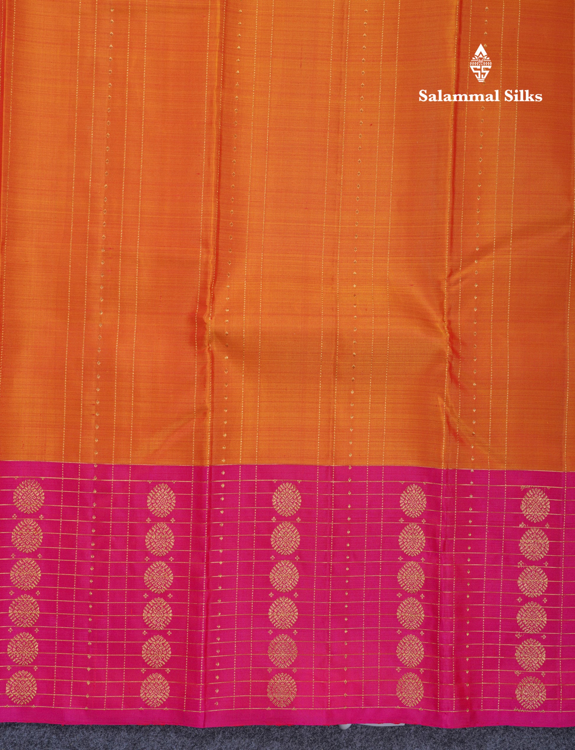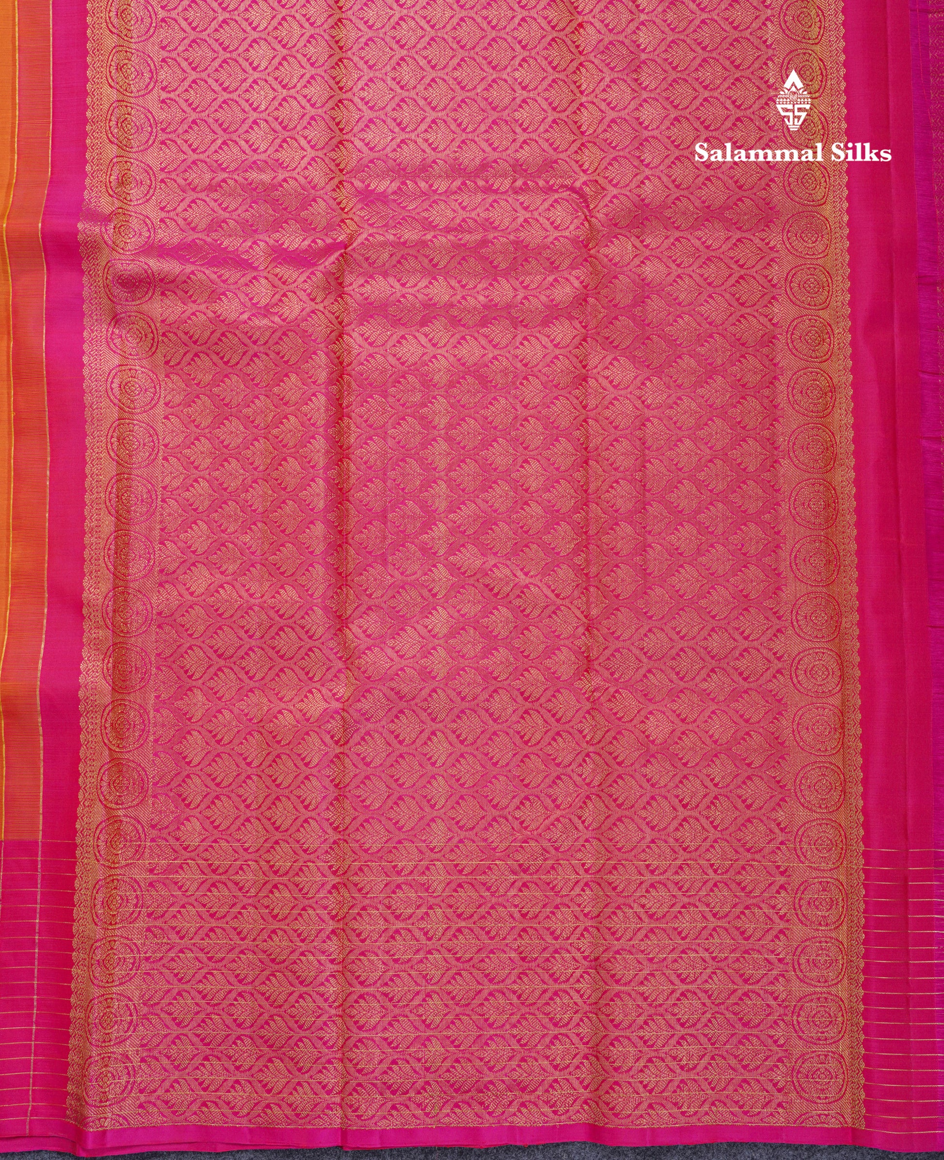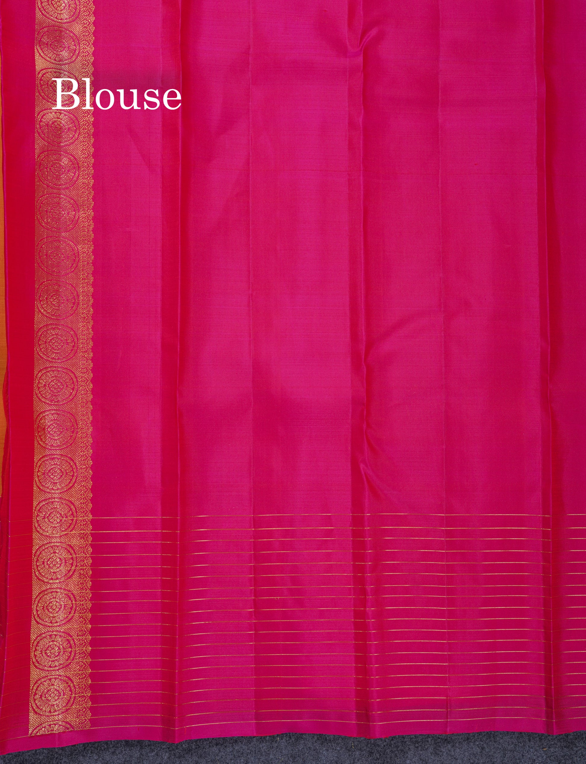 Dual Tone Mustard Yellow Fancy Pure Kanjivaram Silk Saree With Contrast Pink One Side Border