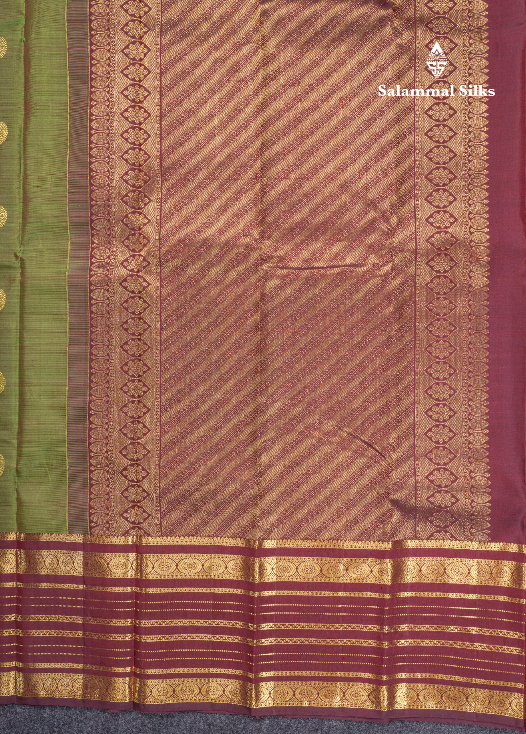 Dual Tone Olive Green Pure Kanjivaram Silk Saree With Contrast Dark Brown Traditional Border