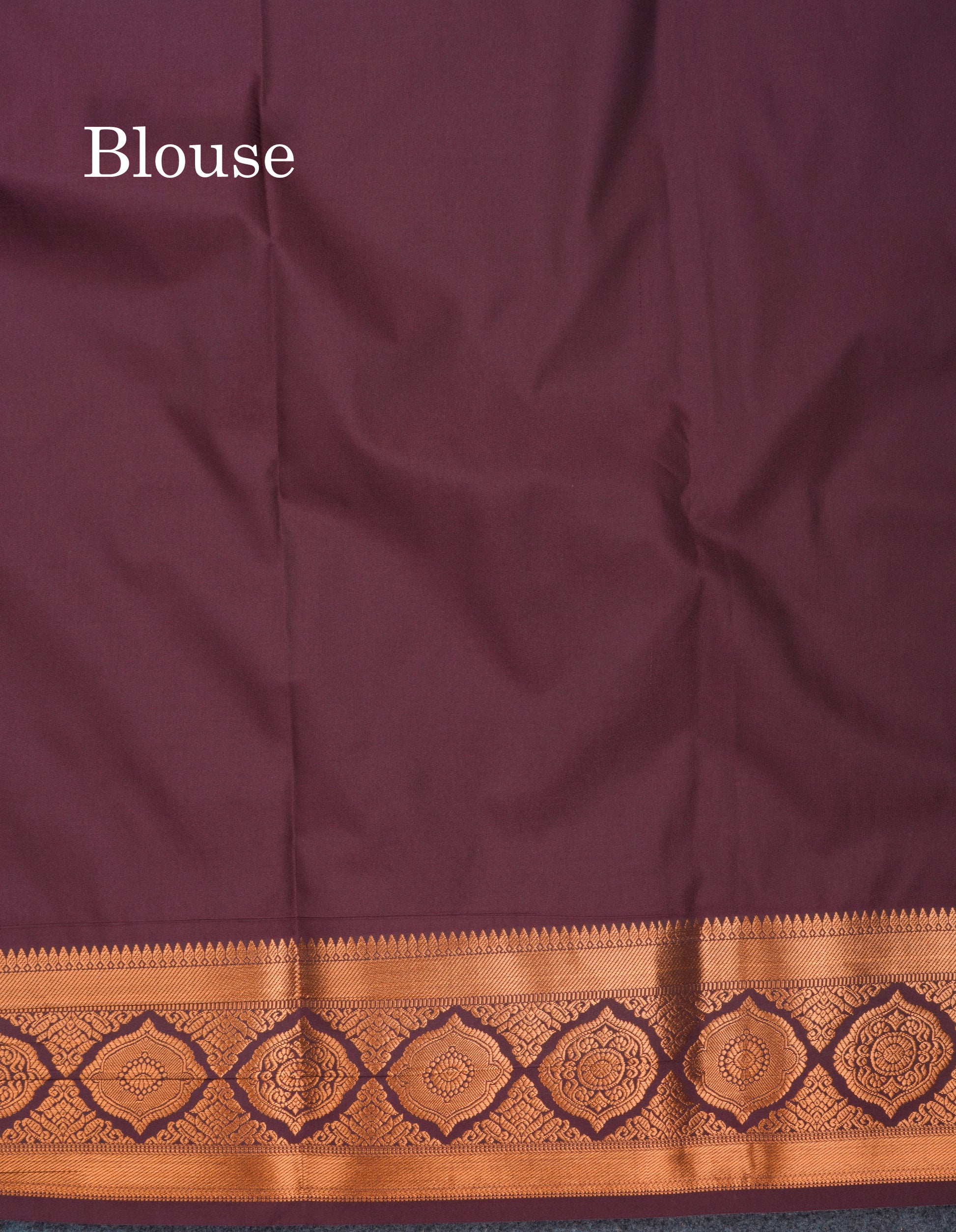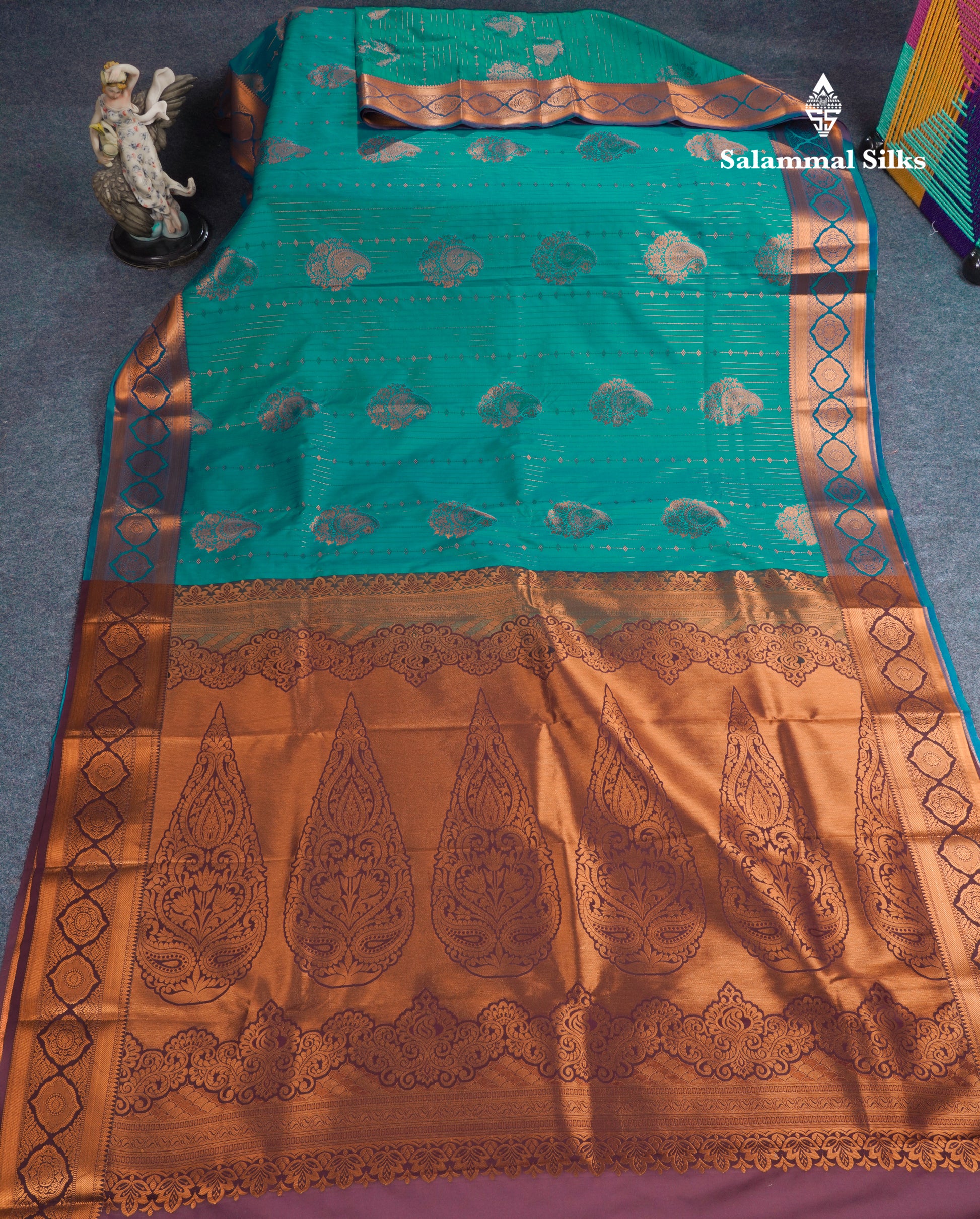 Dual Tone Peacock Green Semi Silk Saree With Contrast Dark Brown Blouse