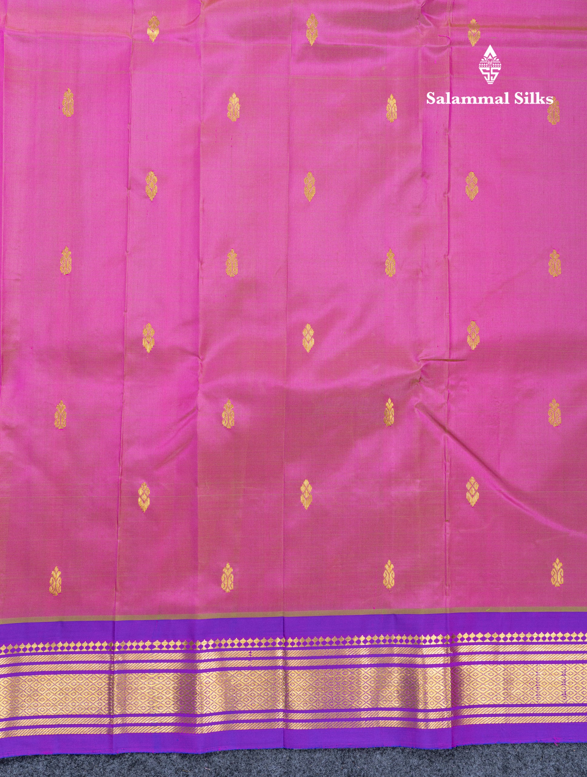 Dual Tone Pink Pure Kanjivaram Silk Saree With Contrast Vadamalli One Side Traditional Border
