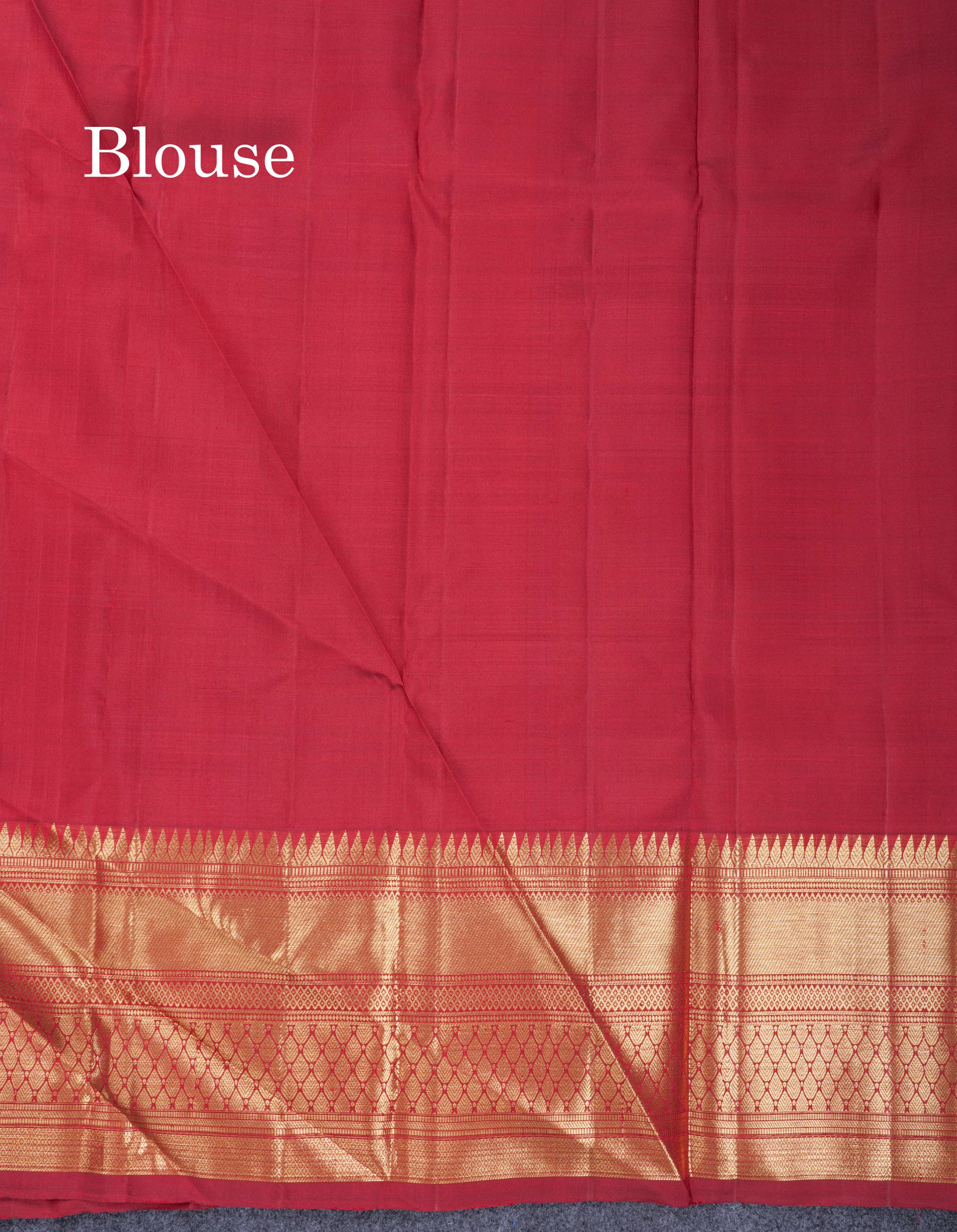 Dual Tone Pinkish Peach Pure Kanjivaram Silk Saree With Contrast Maroon Traditional Border