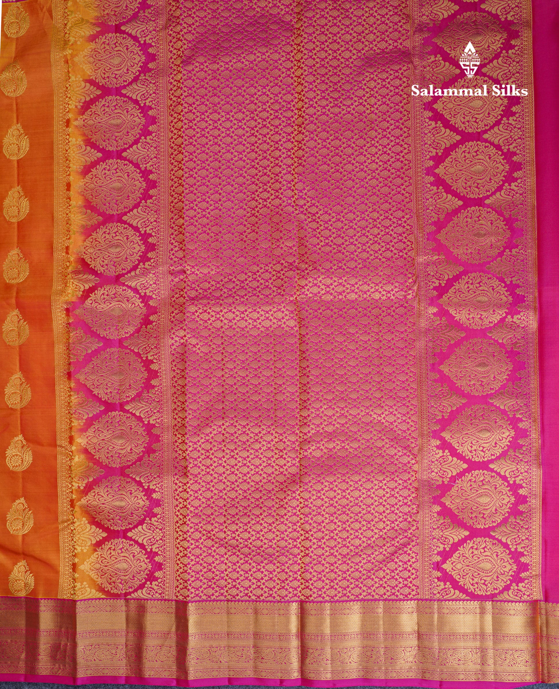 Salammal is known for its handloom sarees. In some sarees, there is cross-weaving between the body and the pallu, which is a sign of pure handloom sarees. This can be seen in Kanchipuram embossed sarees.