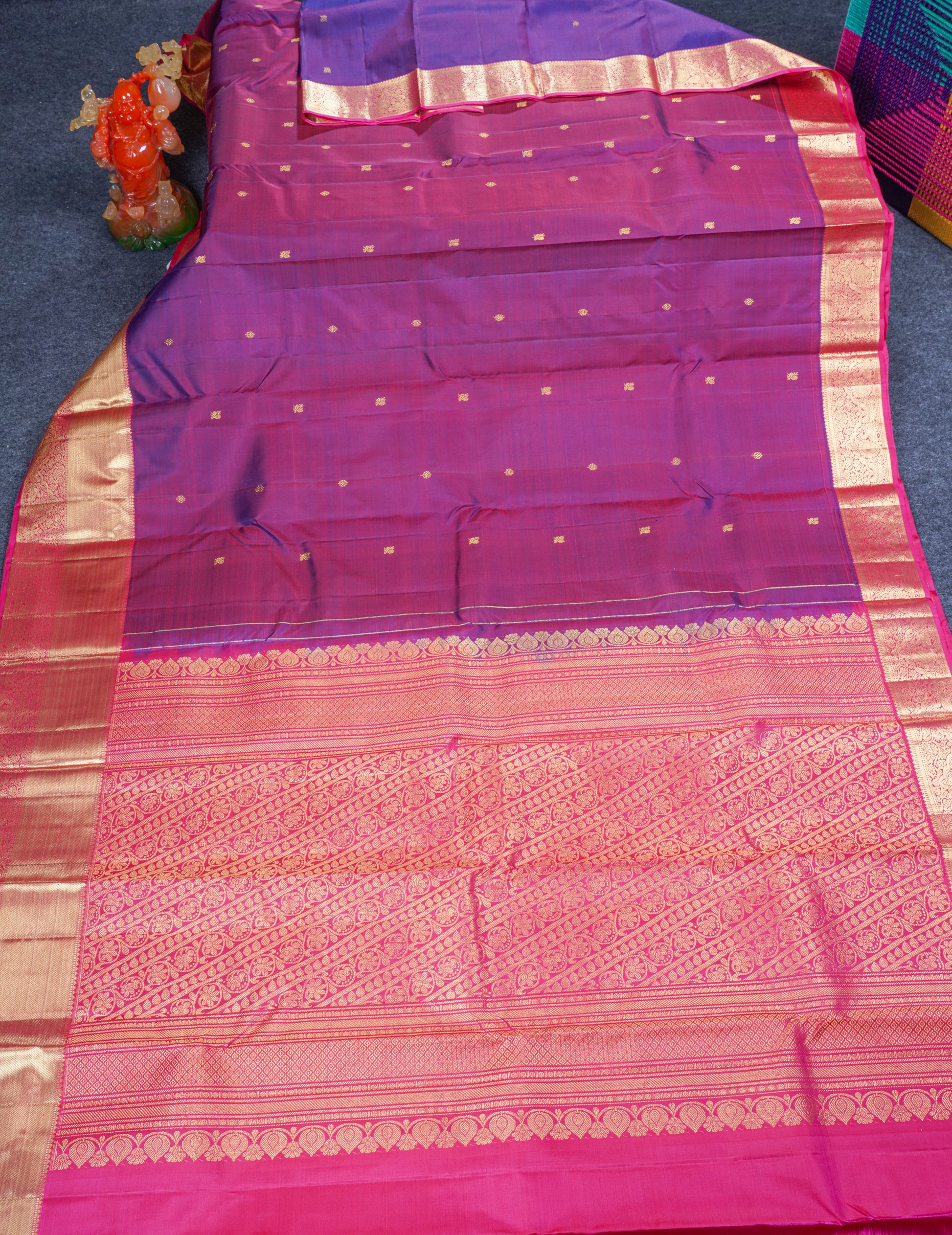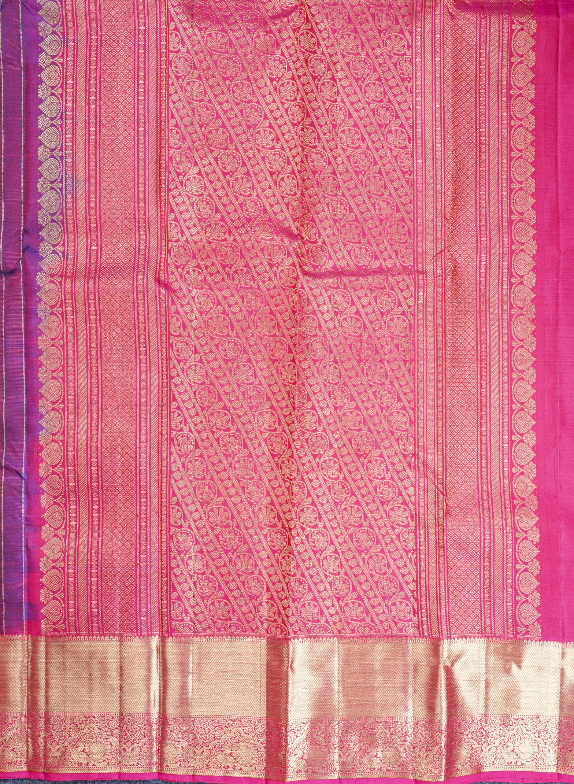 Dual Tone Purple Pure Kanjivaram Silk Saree With Contrast Pink Traditional Border