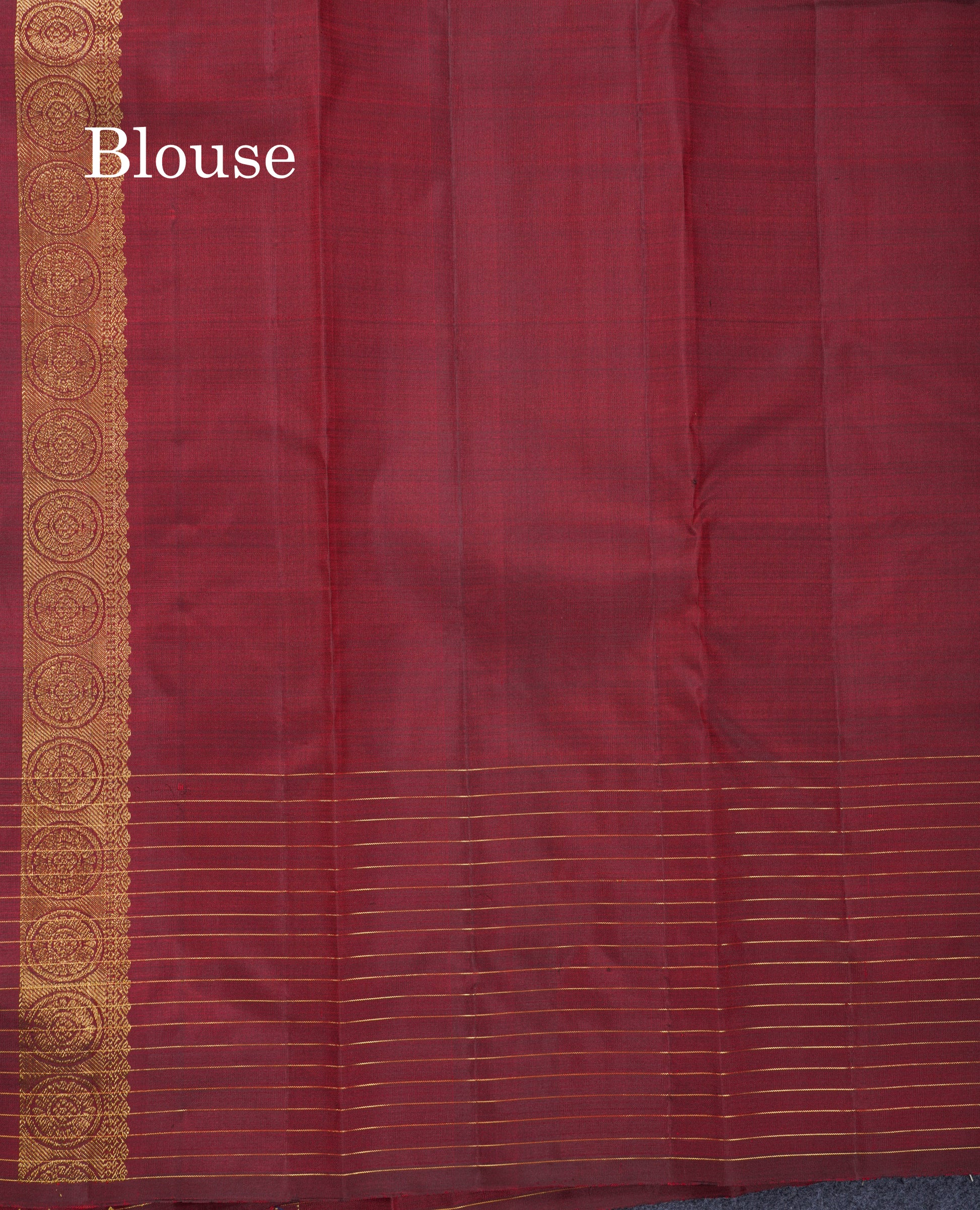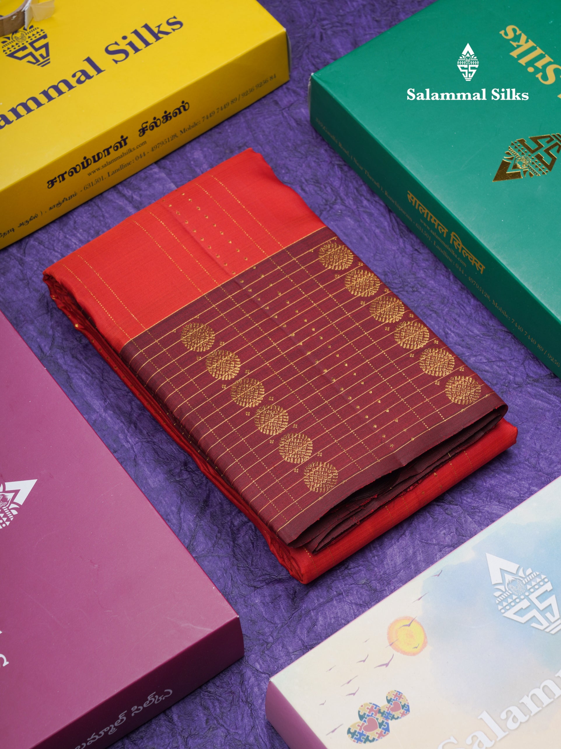 Dual Tone Red Fancy Pure Kanjivaram Silk Saree With Contrast Dark Maroon Border