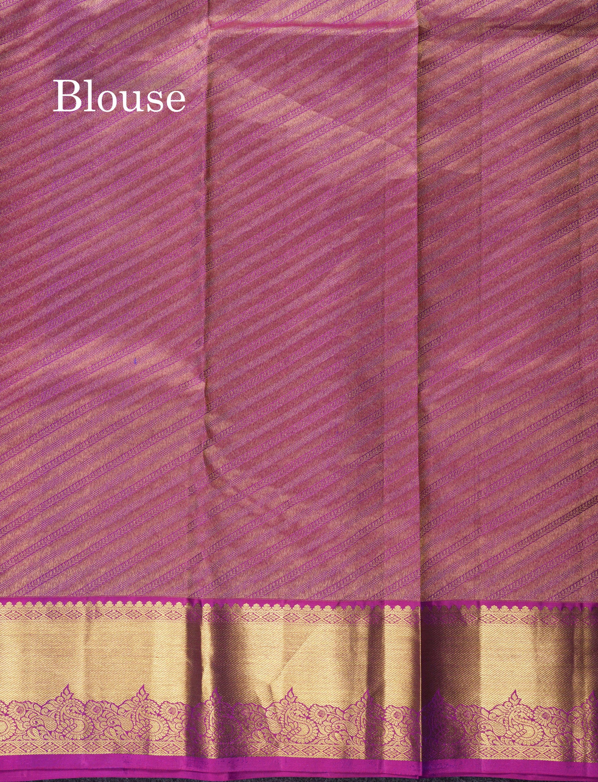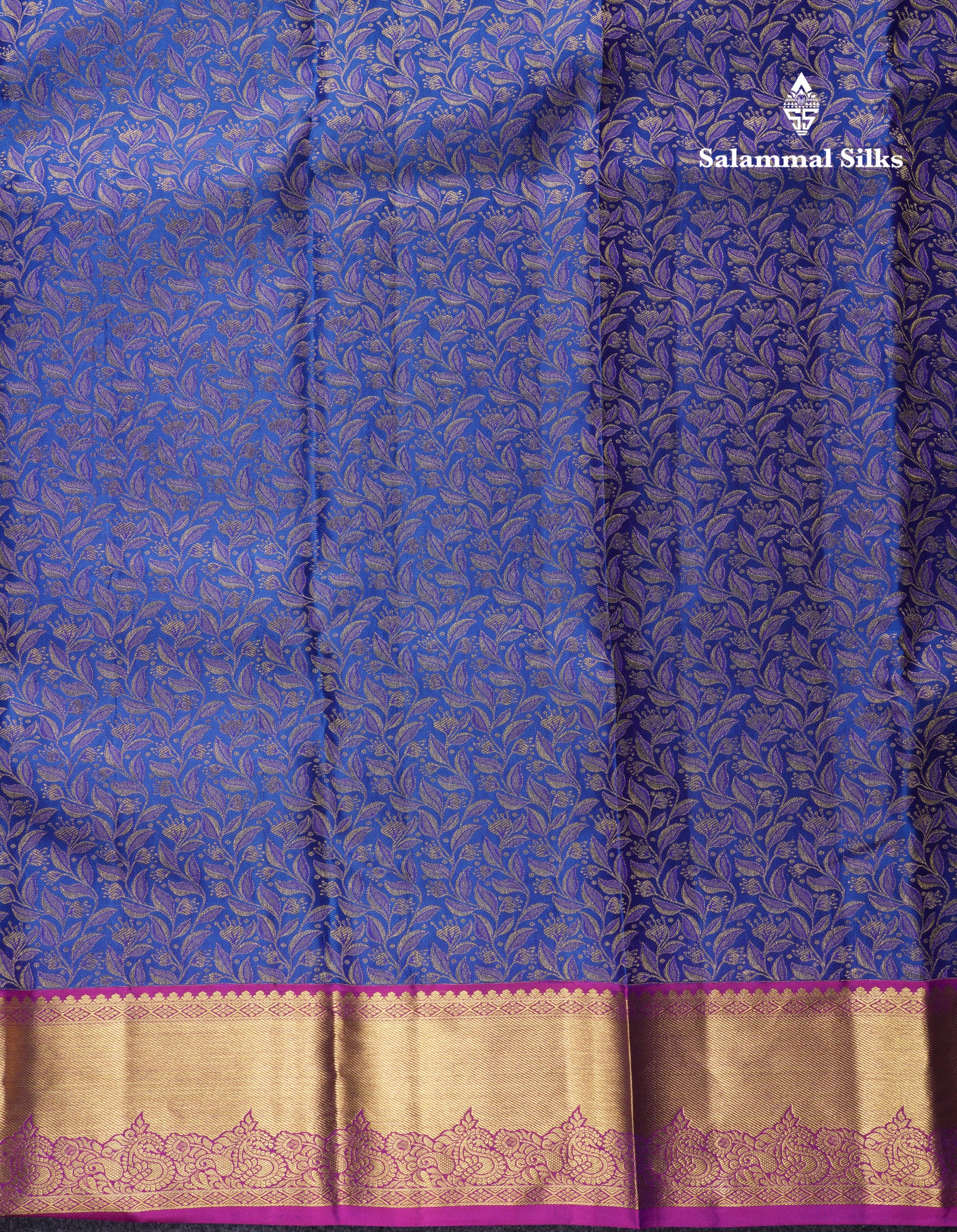 Dual Tone Royal Blue Bridal Pure Kanjivaram Silk Saree With Contrast Magenta Border