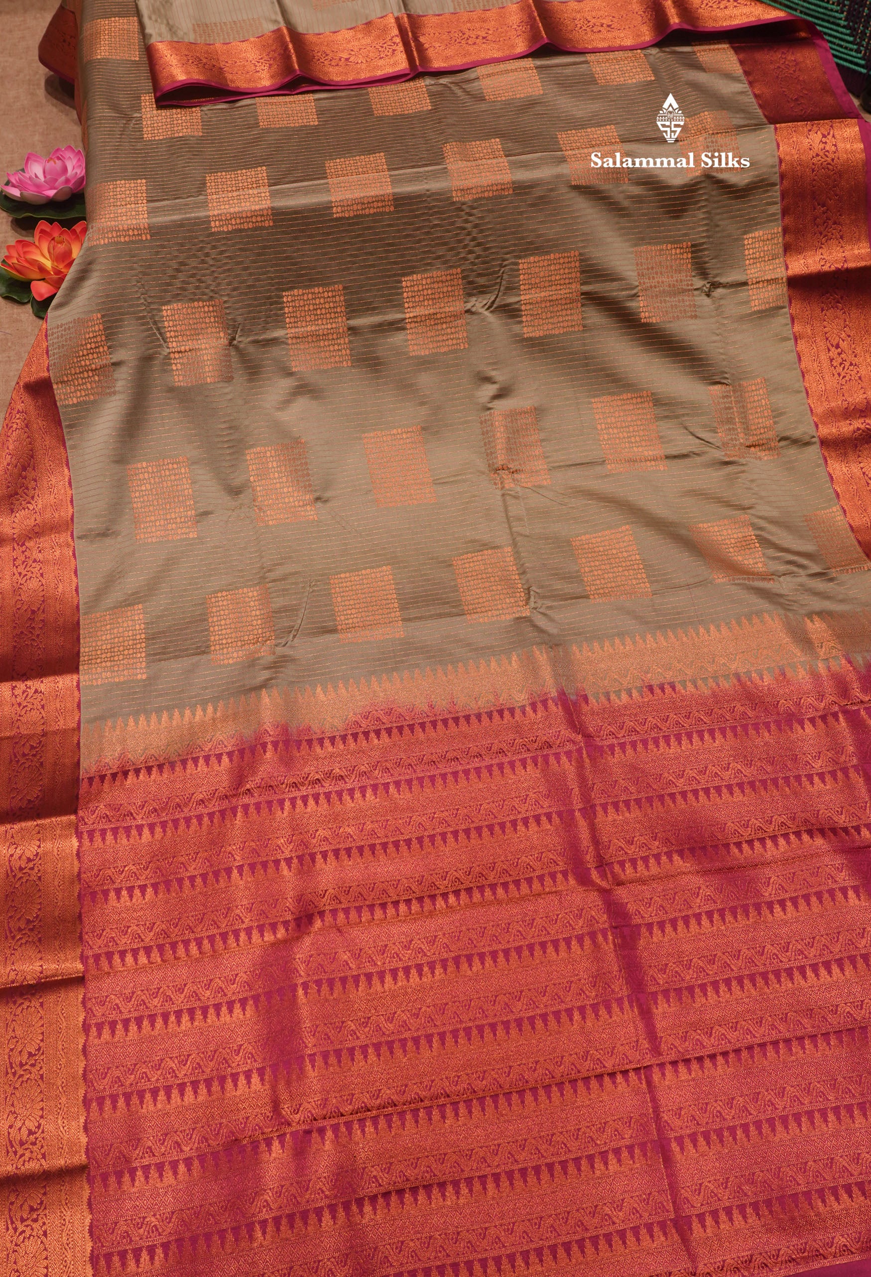 Elephant Grey Colour Semi Silk Saree With Contrast Magenta Pink Border