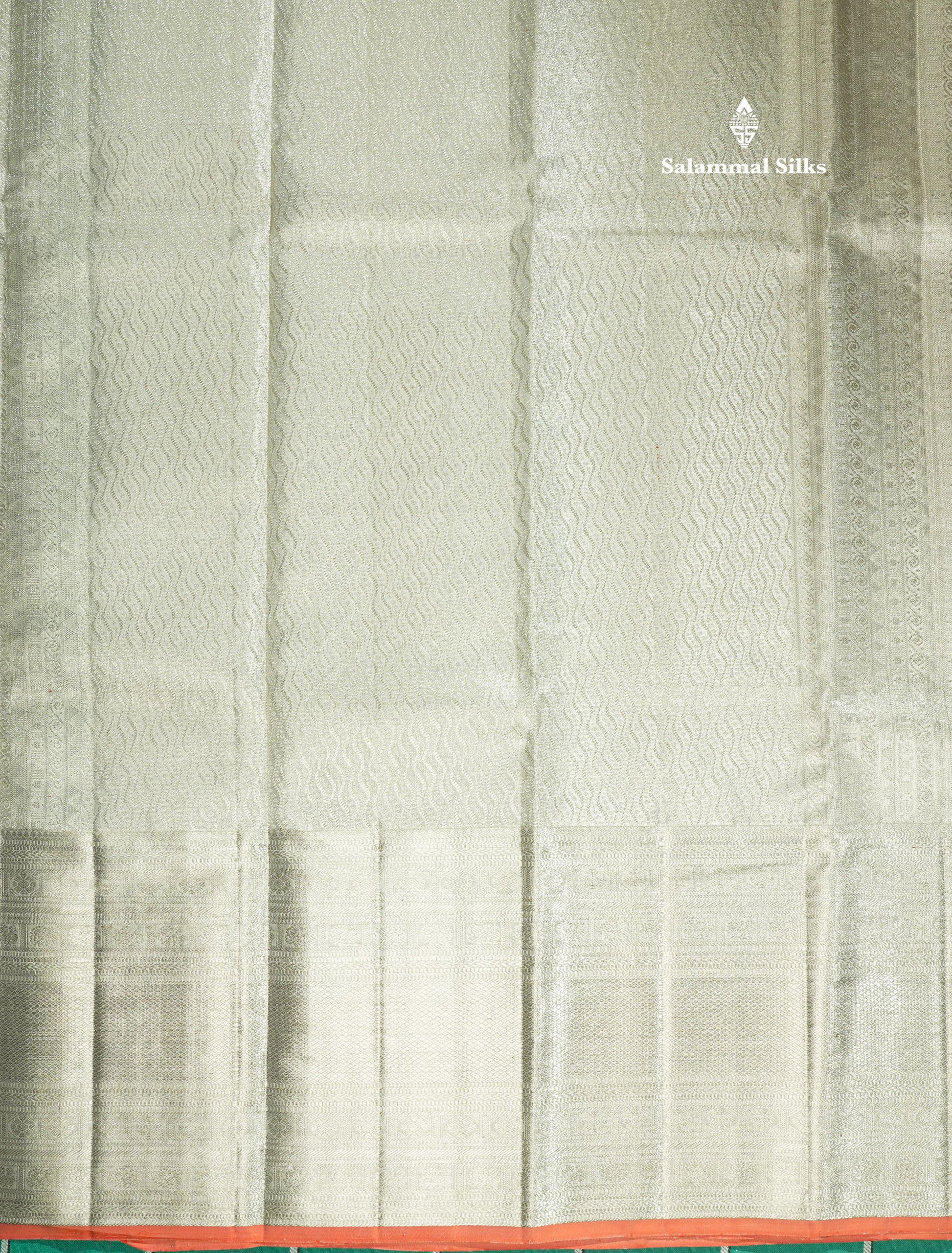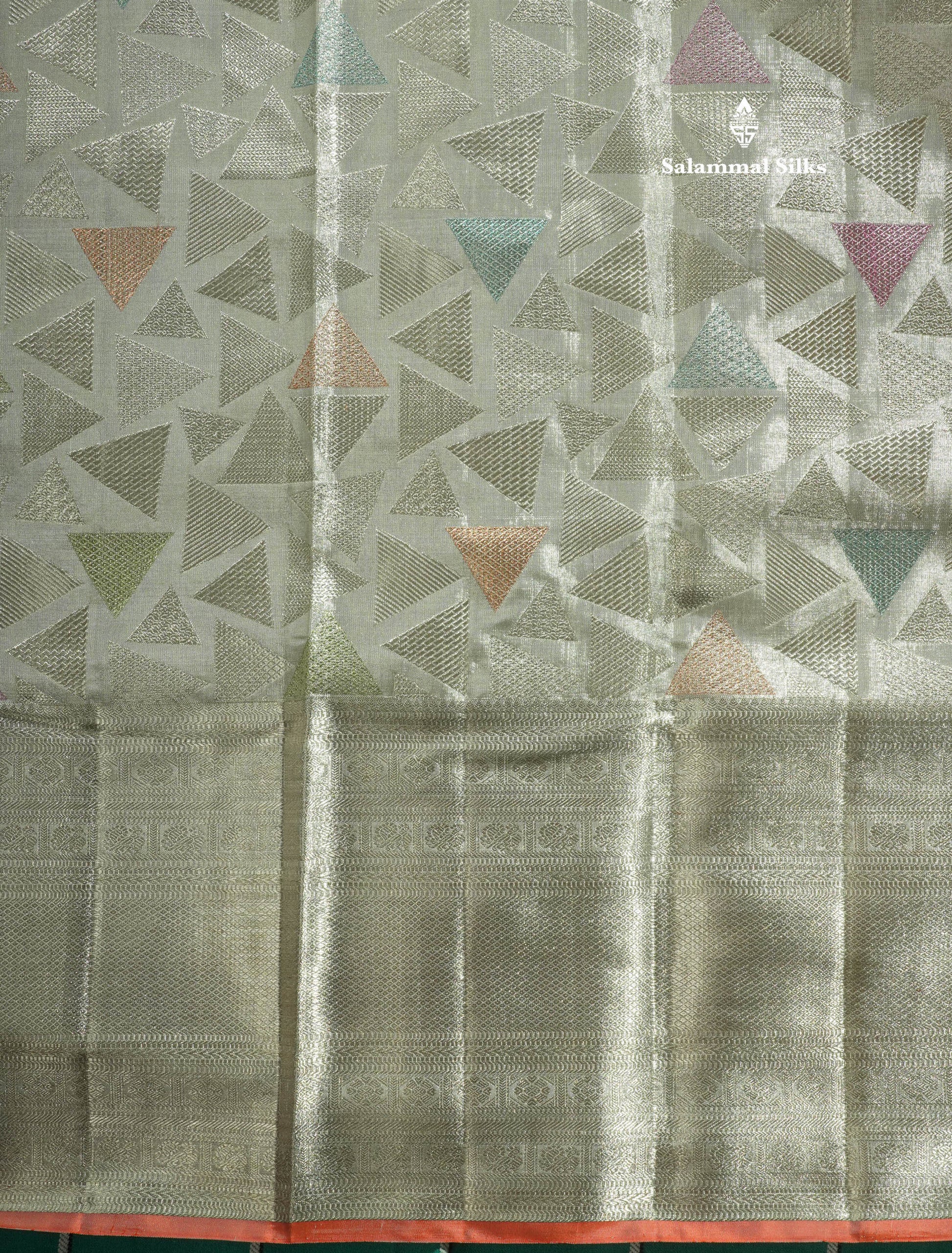 Geometric patter Silver Tissue Pure Kanjivaram Silk Saree (2G) Zari With Silver Zari Border