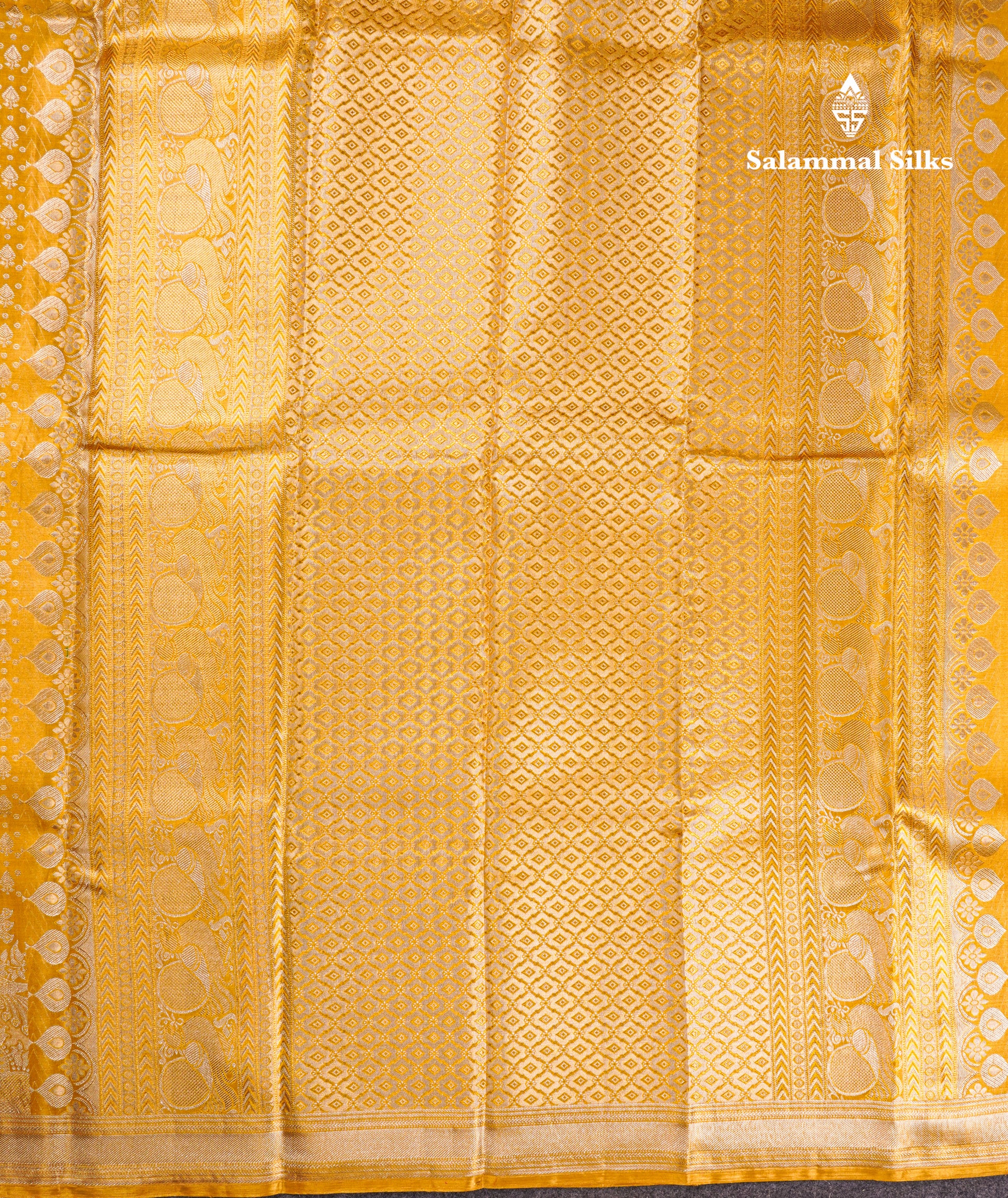 Gold Colour Tissue Bridal Pure Kanjivaram Silk Saree With Fancy Turning Border