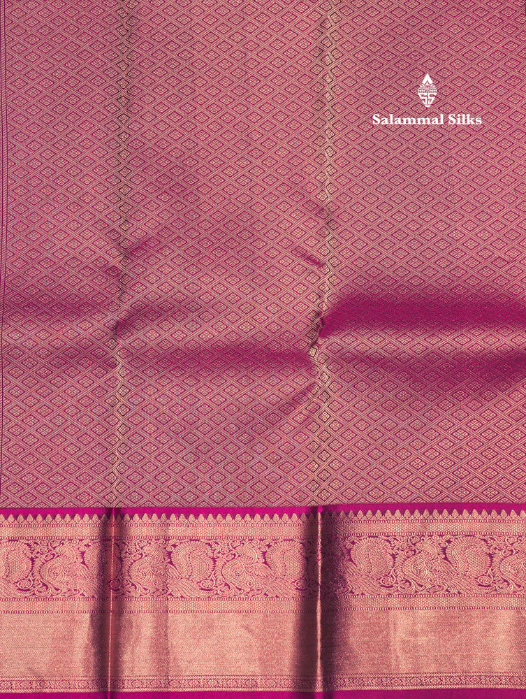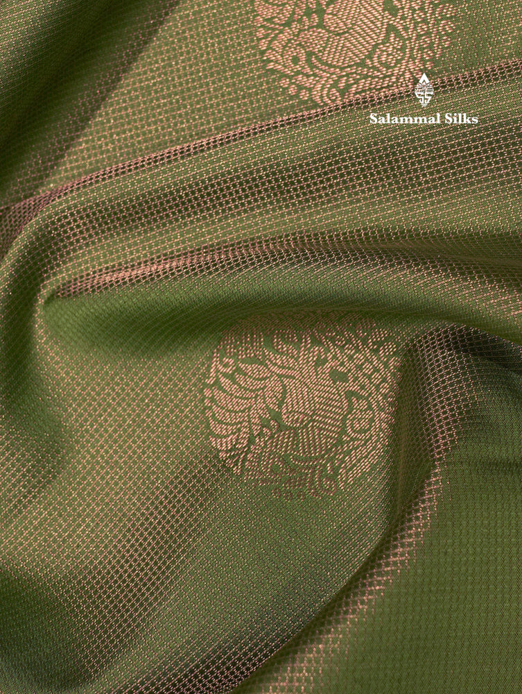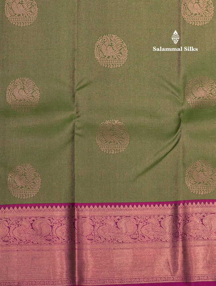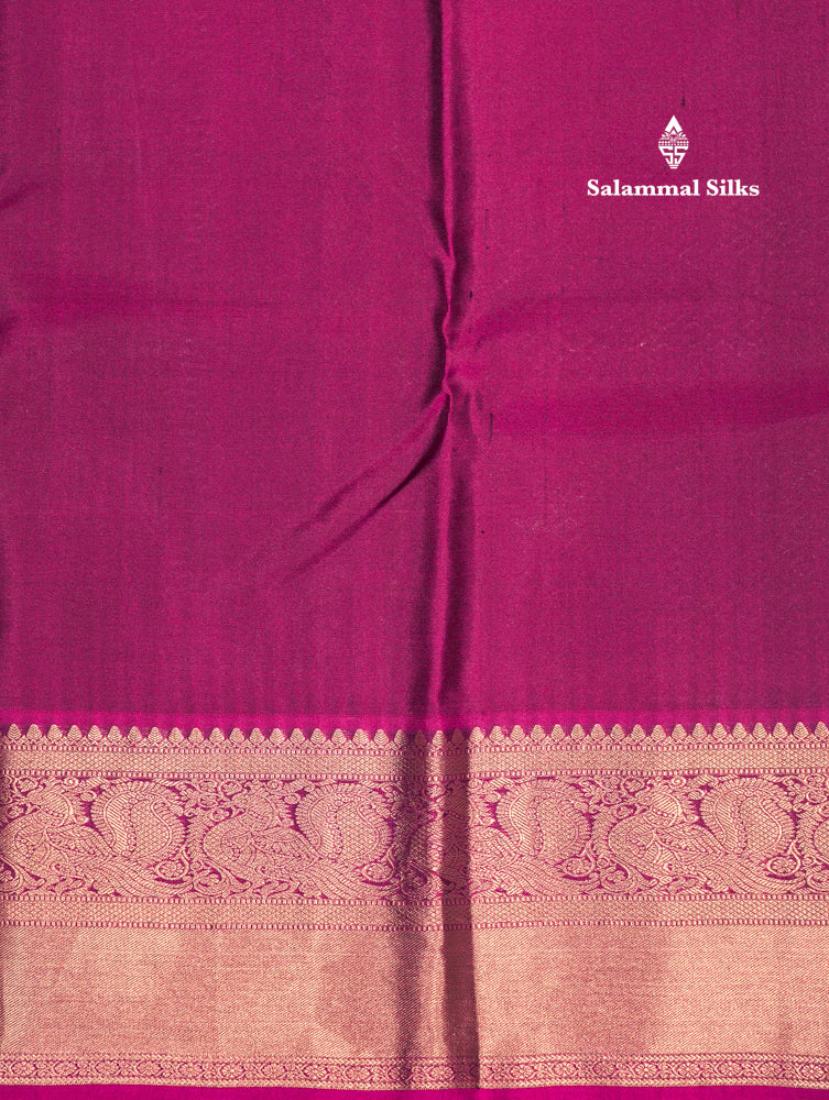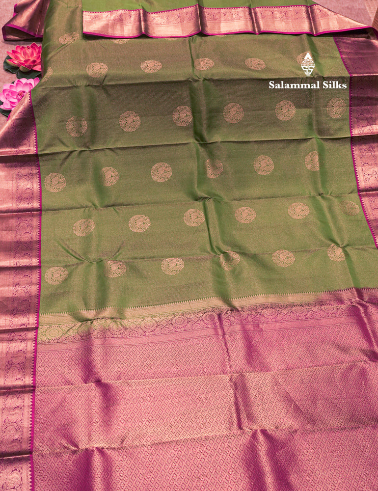 Green Colour Kanjivaram Pure Silk Saree With Magenta Traditional Border