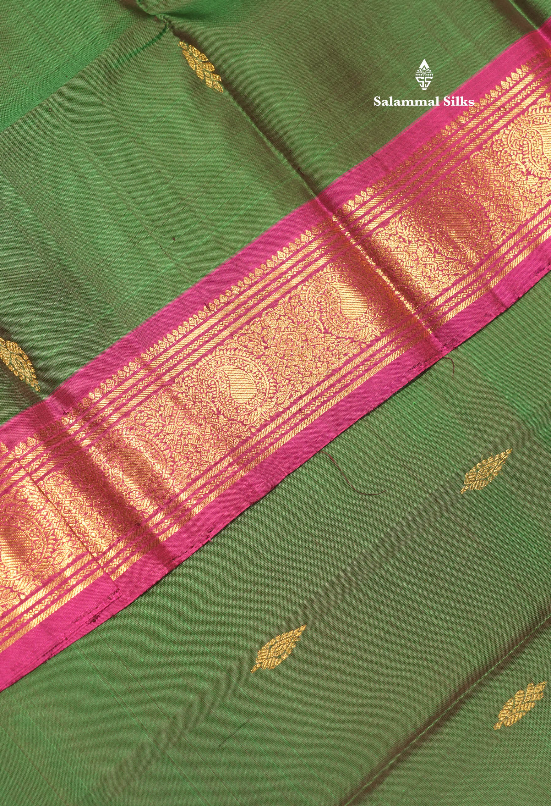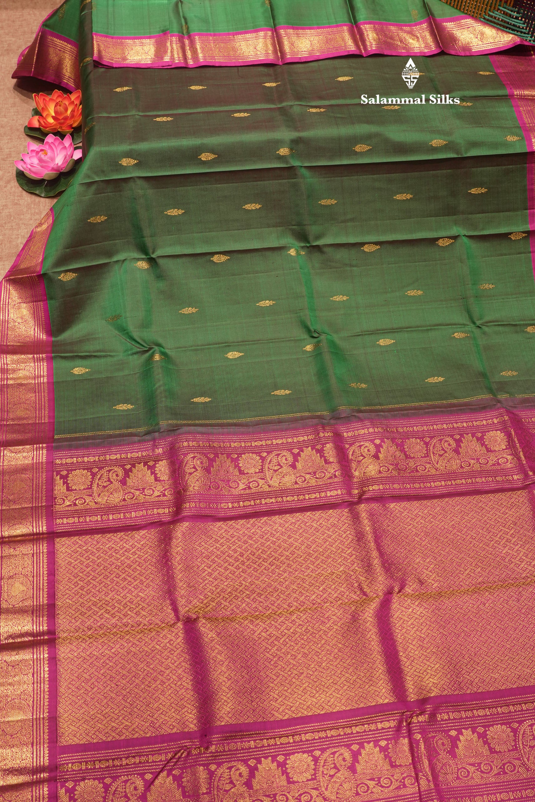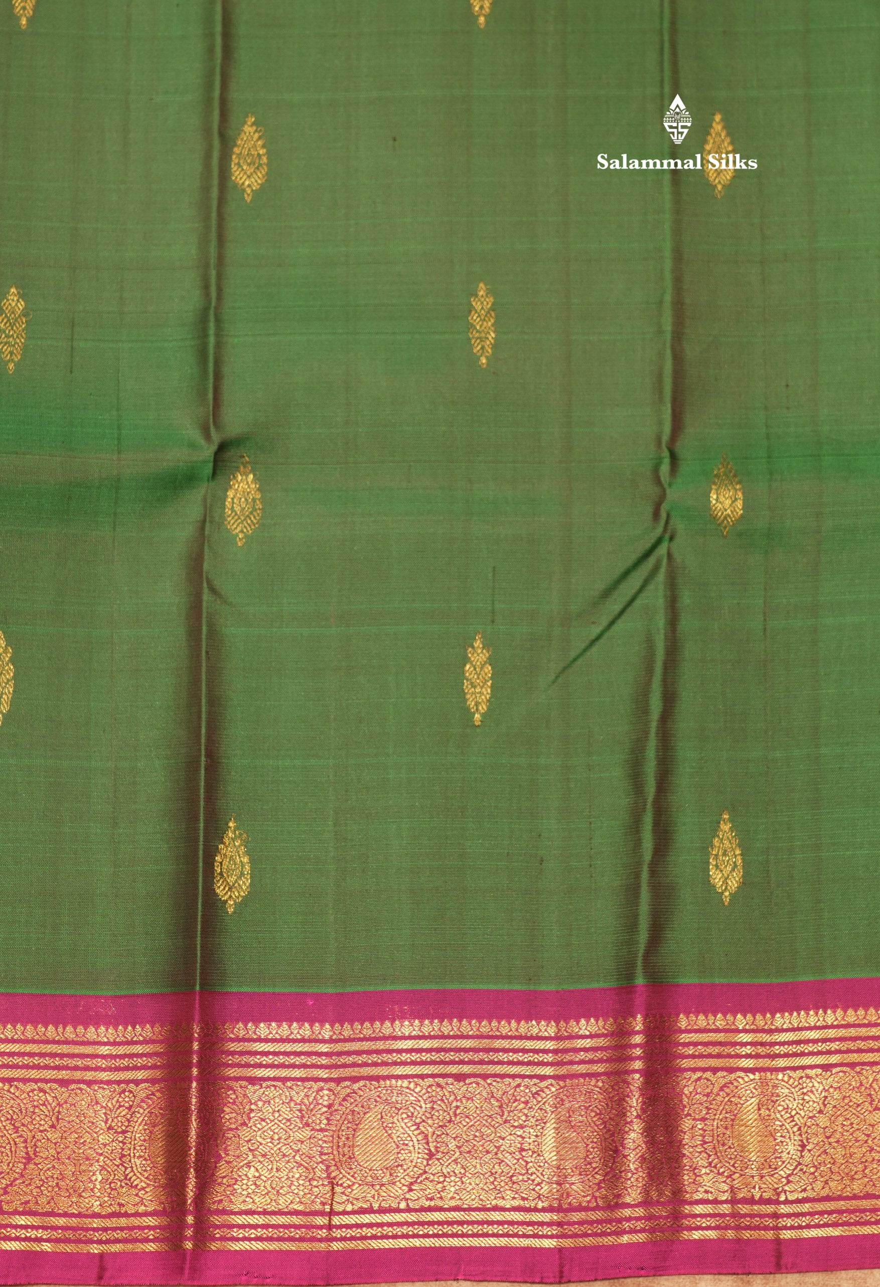 Green Colour Pure Kanjivaram Silk Saree With Contrast Magenta Pink Border