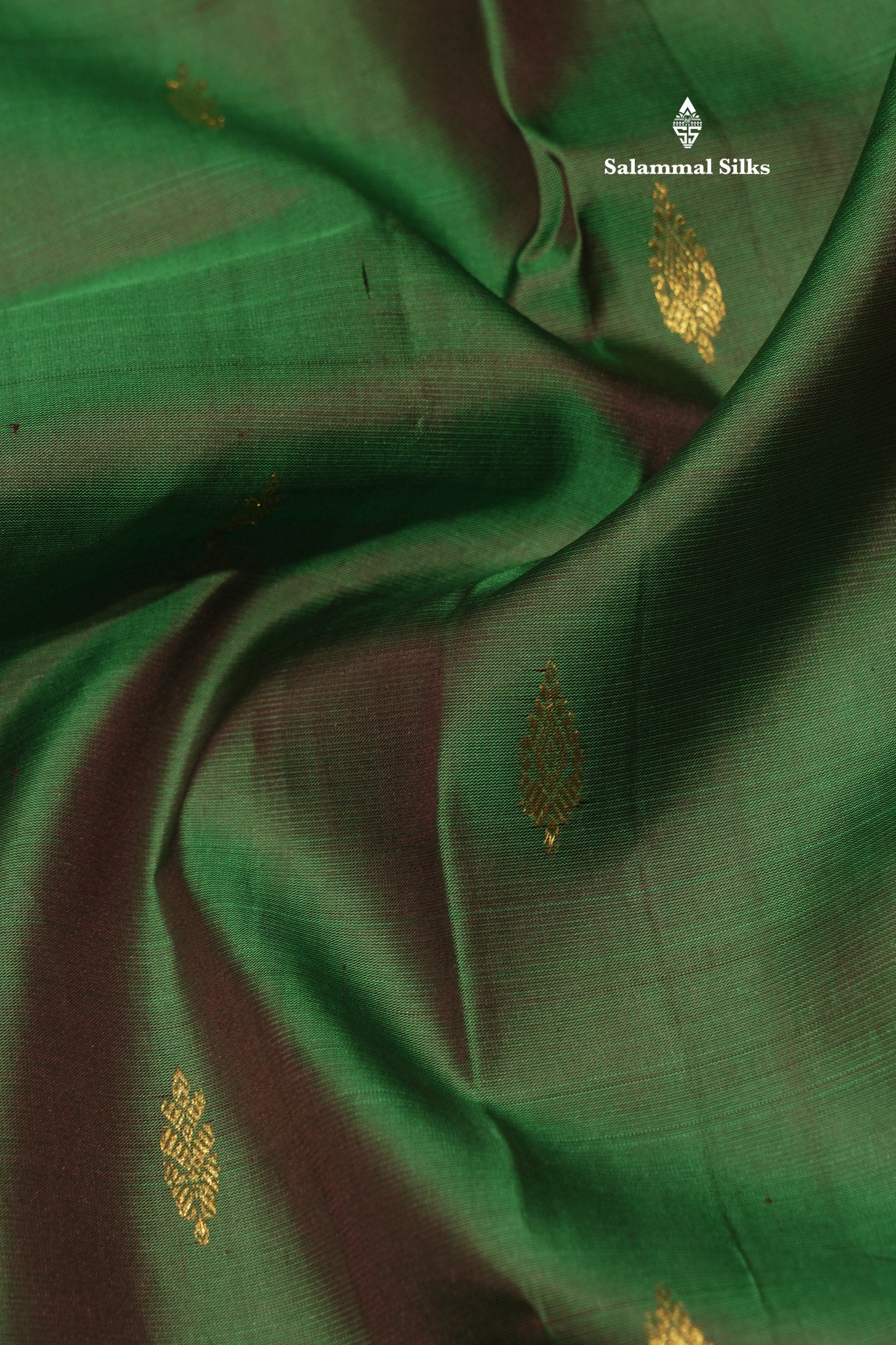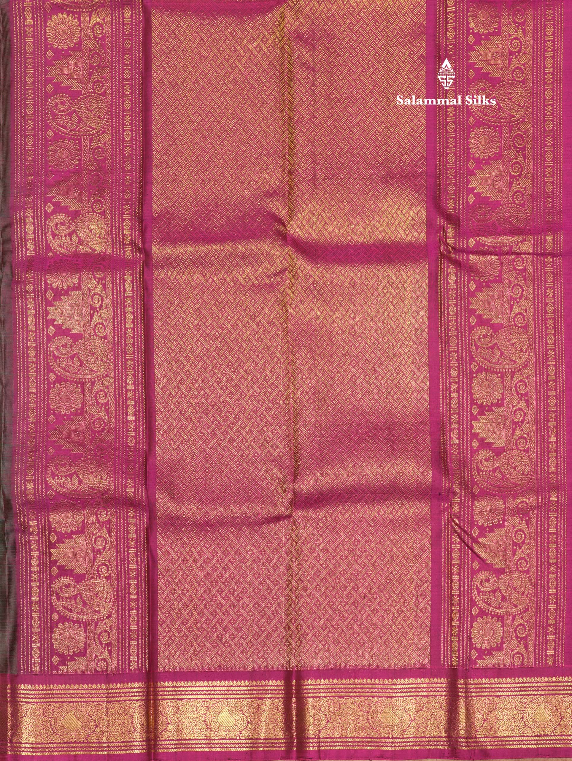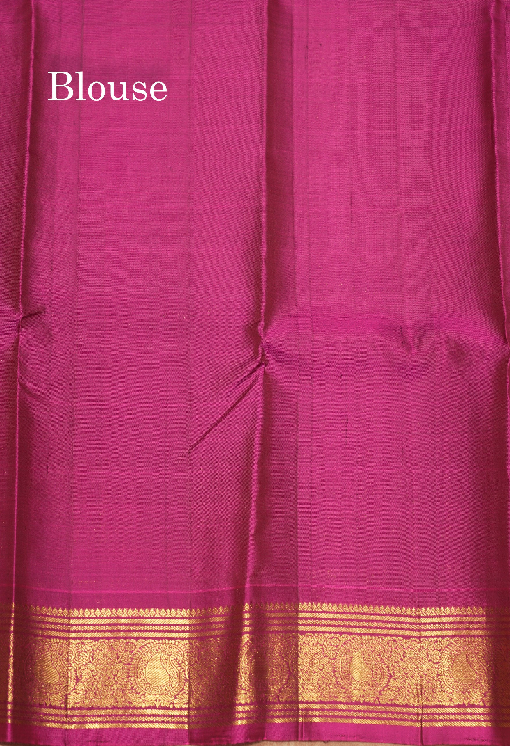 Green Colour Pure Kanjivaram Silk Saree With Contrast Magenta Pink Border
